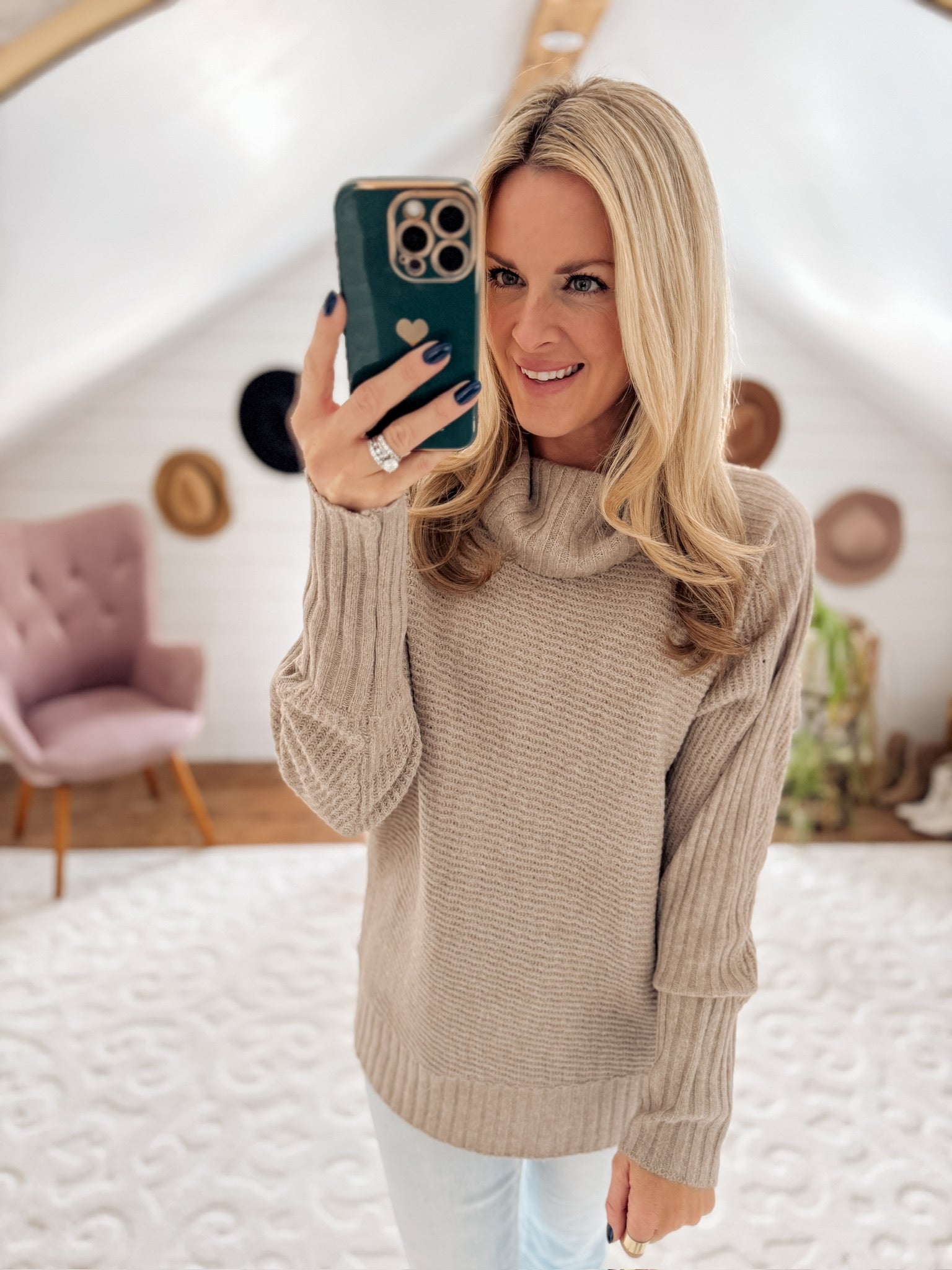 Megan Mocha Ribbed Turtle Neck Sweater IN STORE