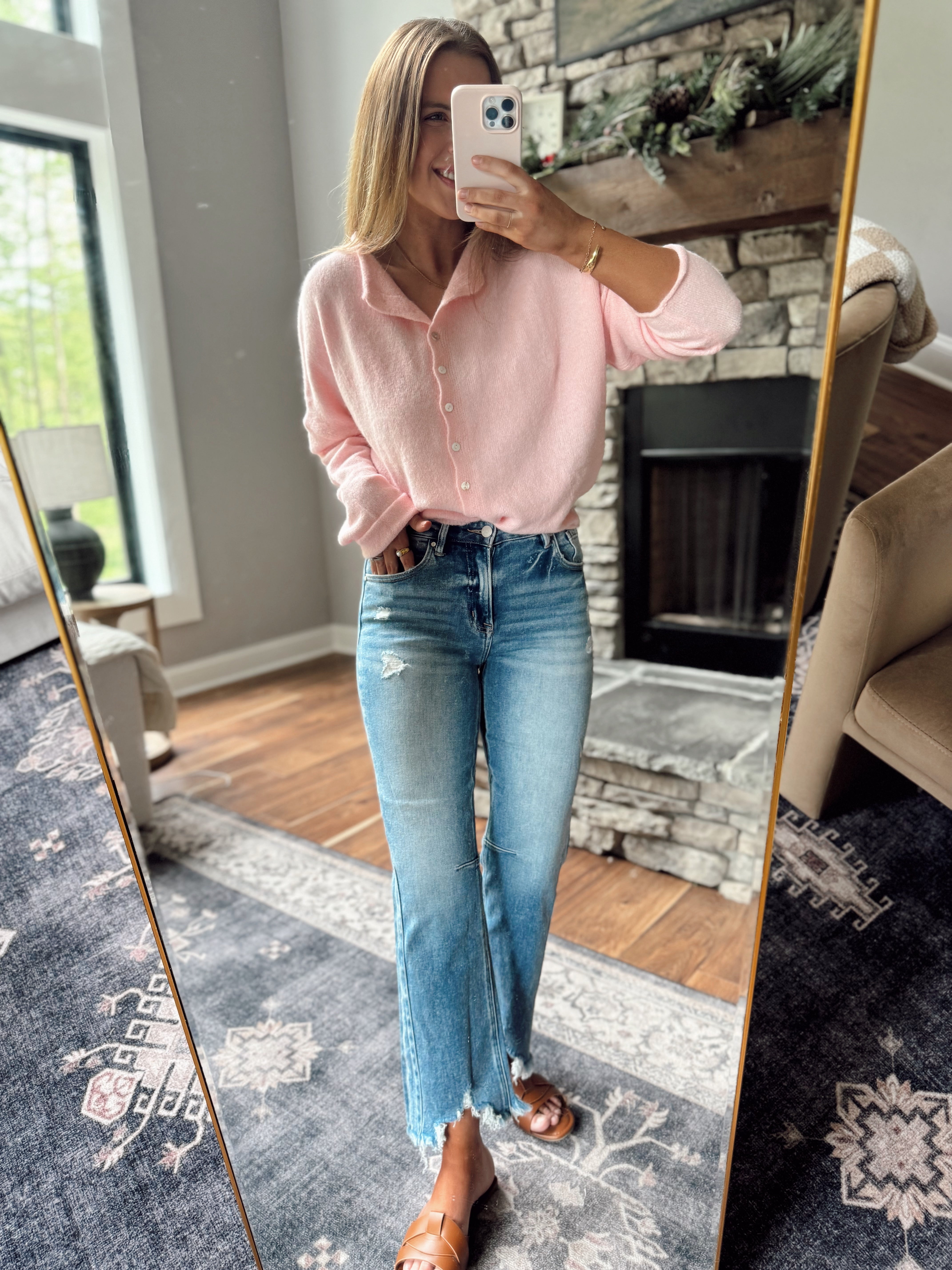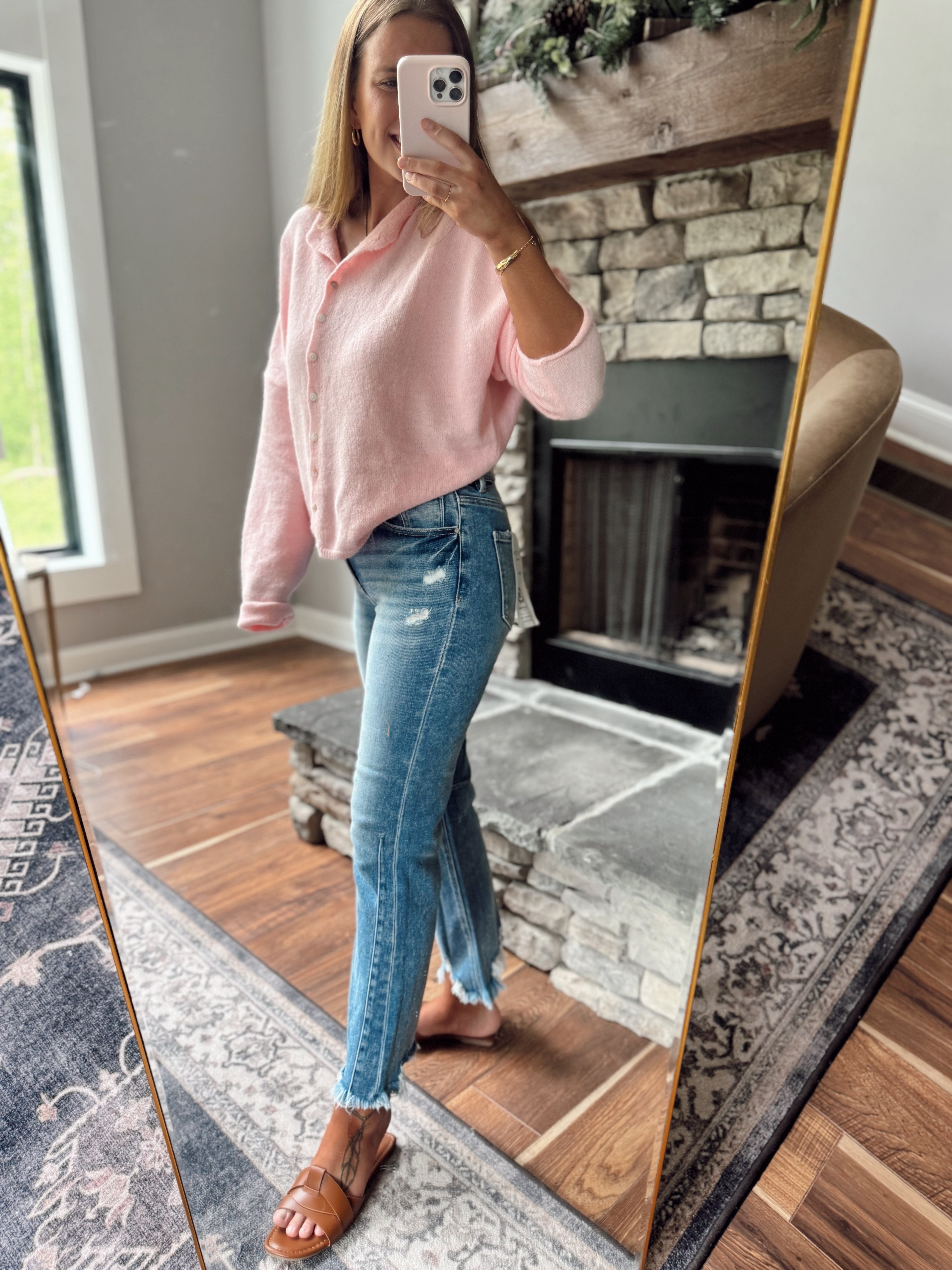 Risen Medium HR Crop Straight Distressed Hem Jeans