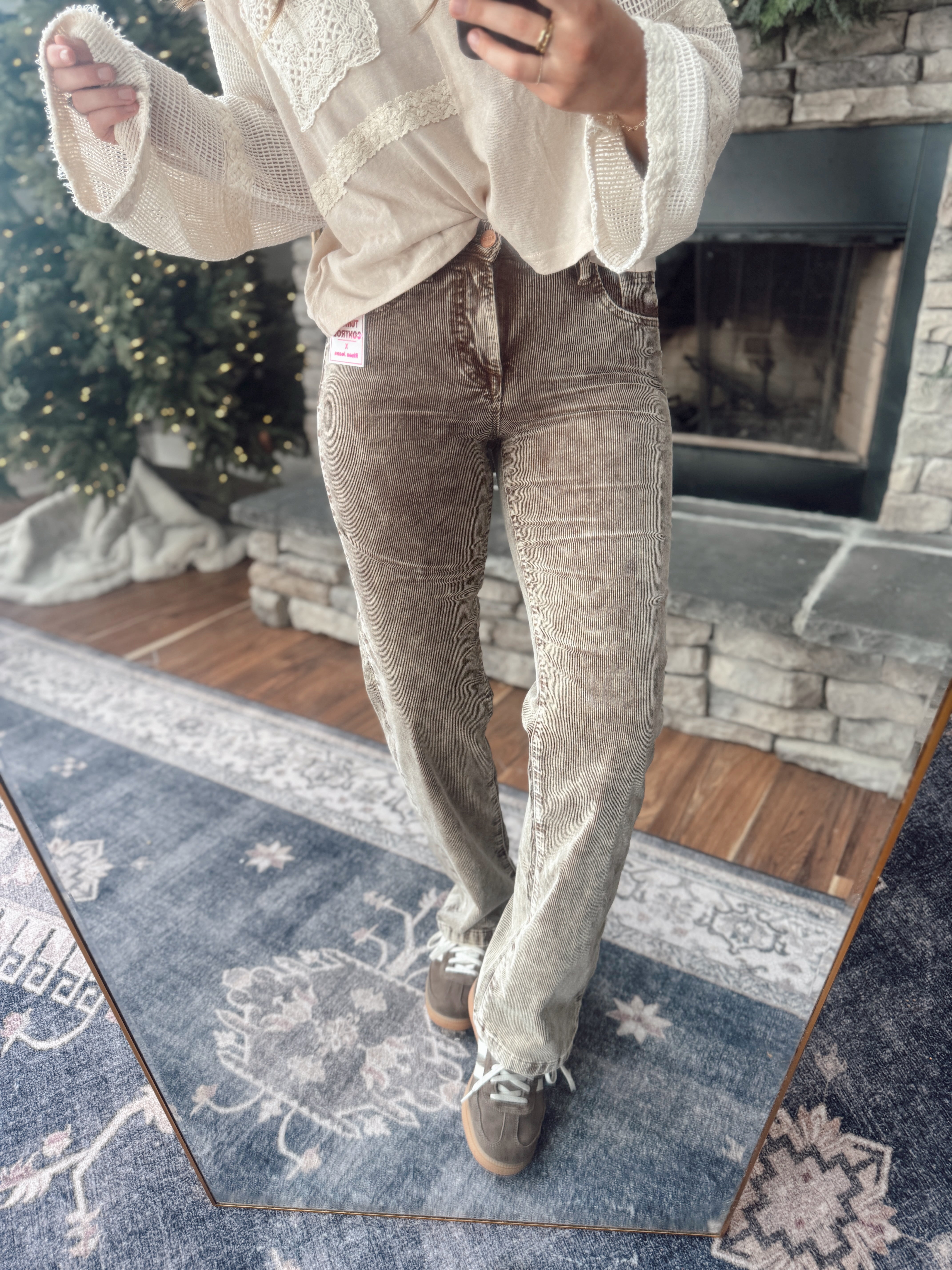 Risen Mocha TC MR Straight Leg Corduroy Pants