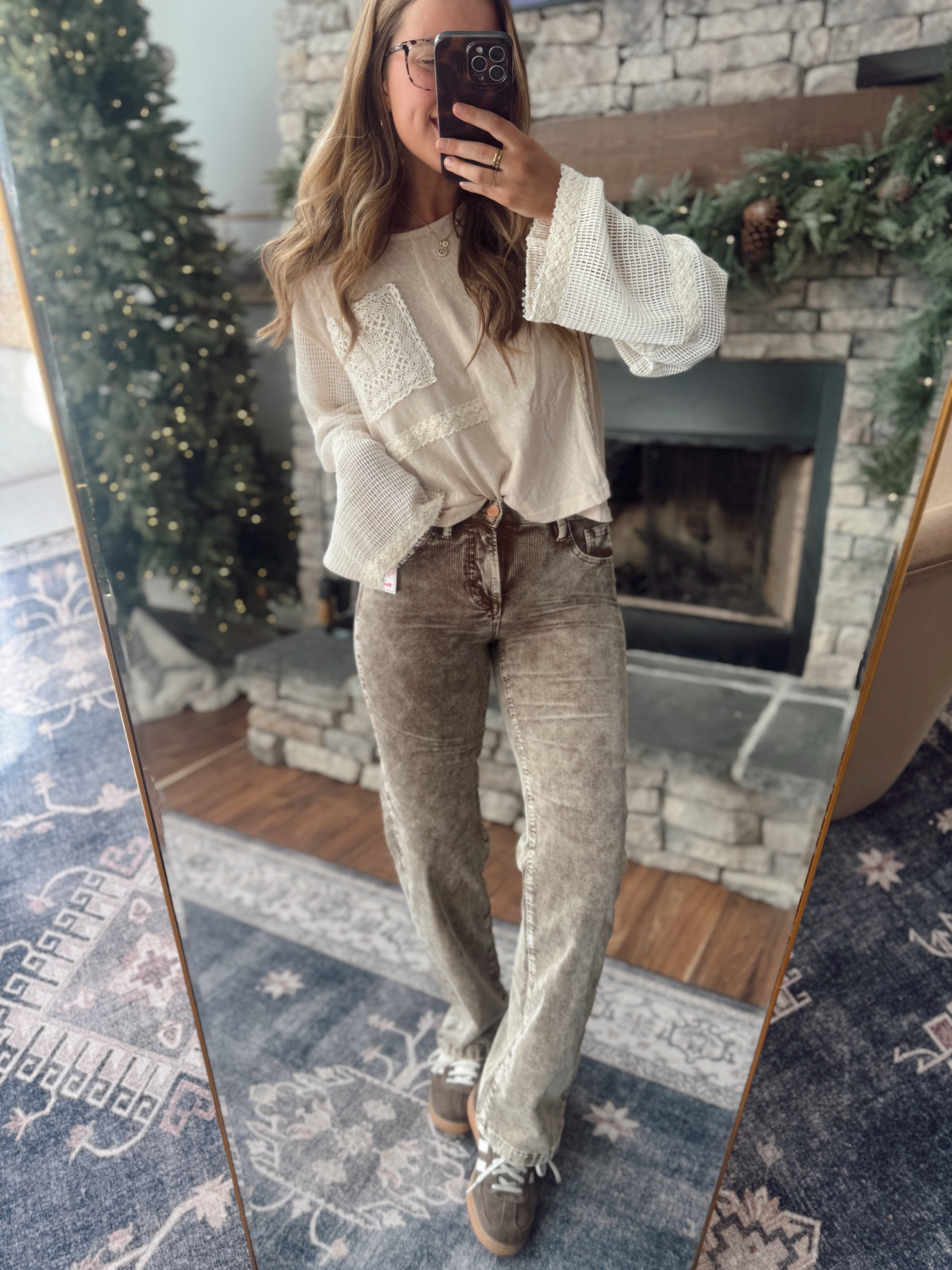 Add a touch of retro charm to your wardrobe with the Tummy Control Mid Rise Straight Leg RISEN Corduroy Pants from Be Bliss Boutique. Crafted with a soft, washed corduroy texture and a flattering mid-rise fit, these pants are designed to sculpt, smooth, and support your shape.