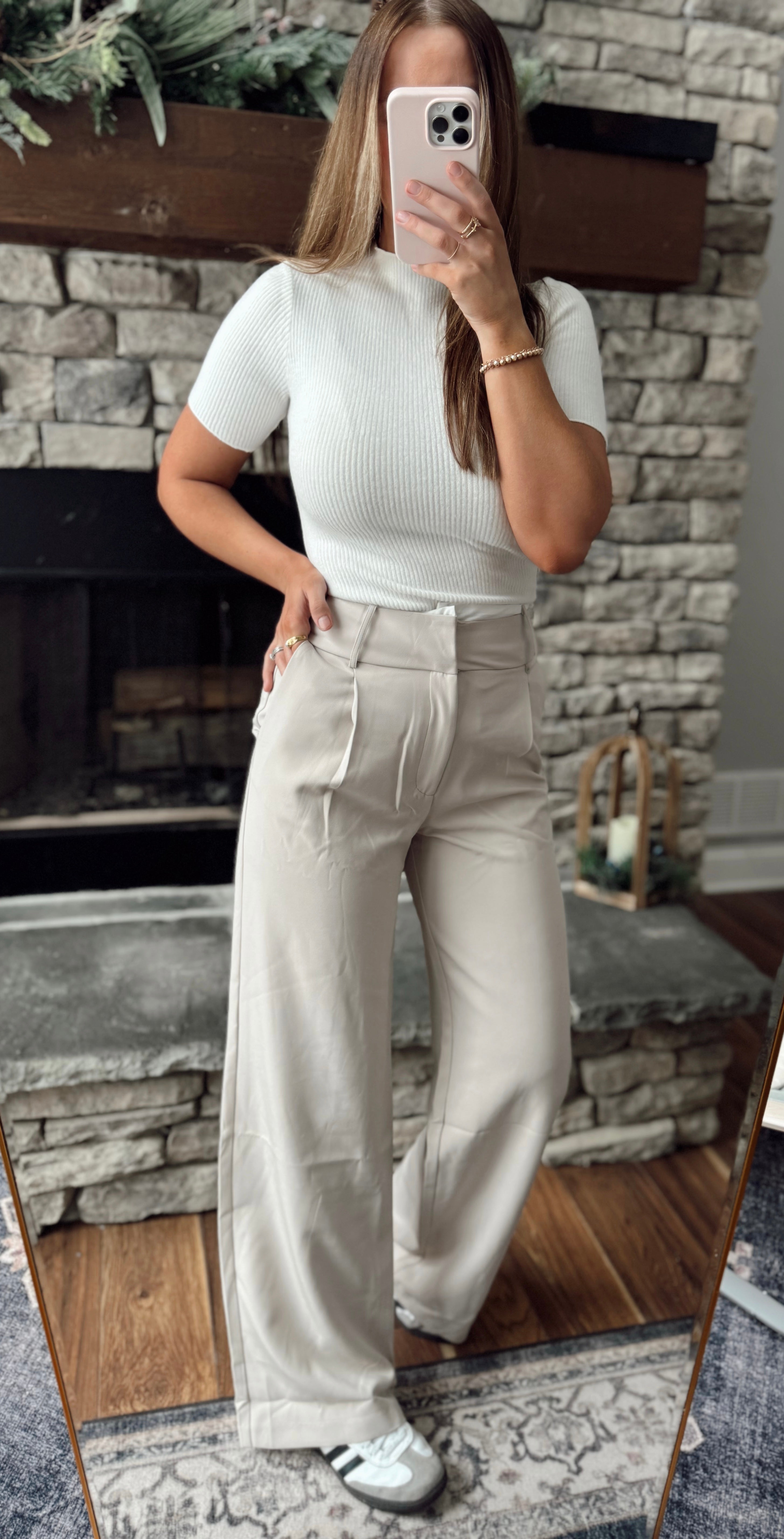 The perfect trouser pant. The color is awesome and the fit is perfect + the length! I would size up if in between as there isn’t a ton of stretch in the waist. I think as a 3 I would’ve been more comfortable in a medium.