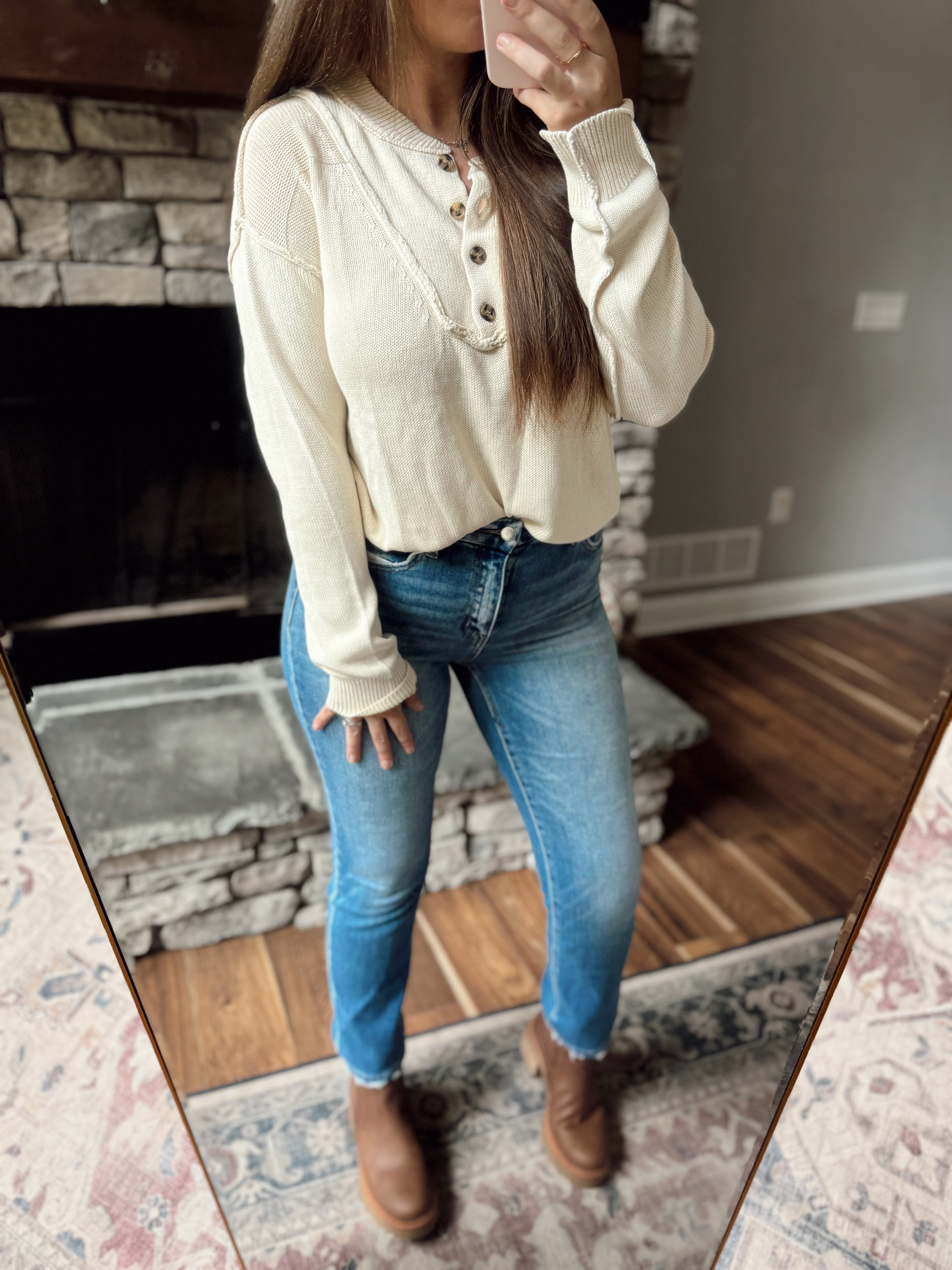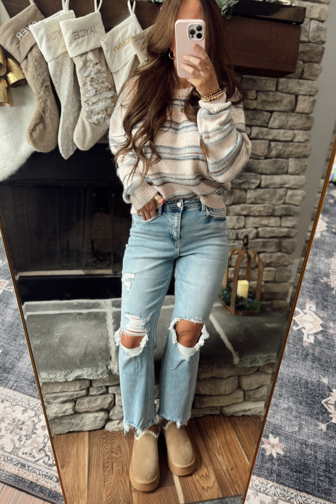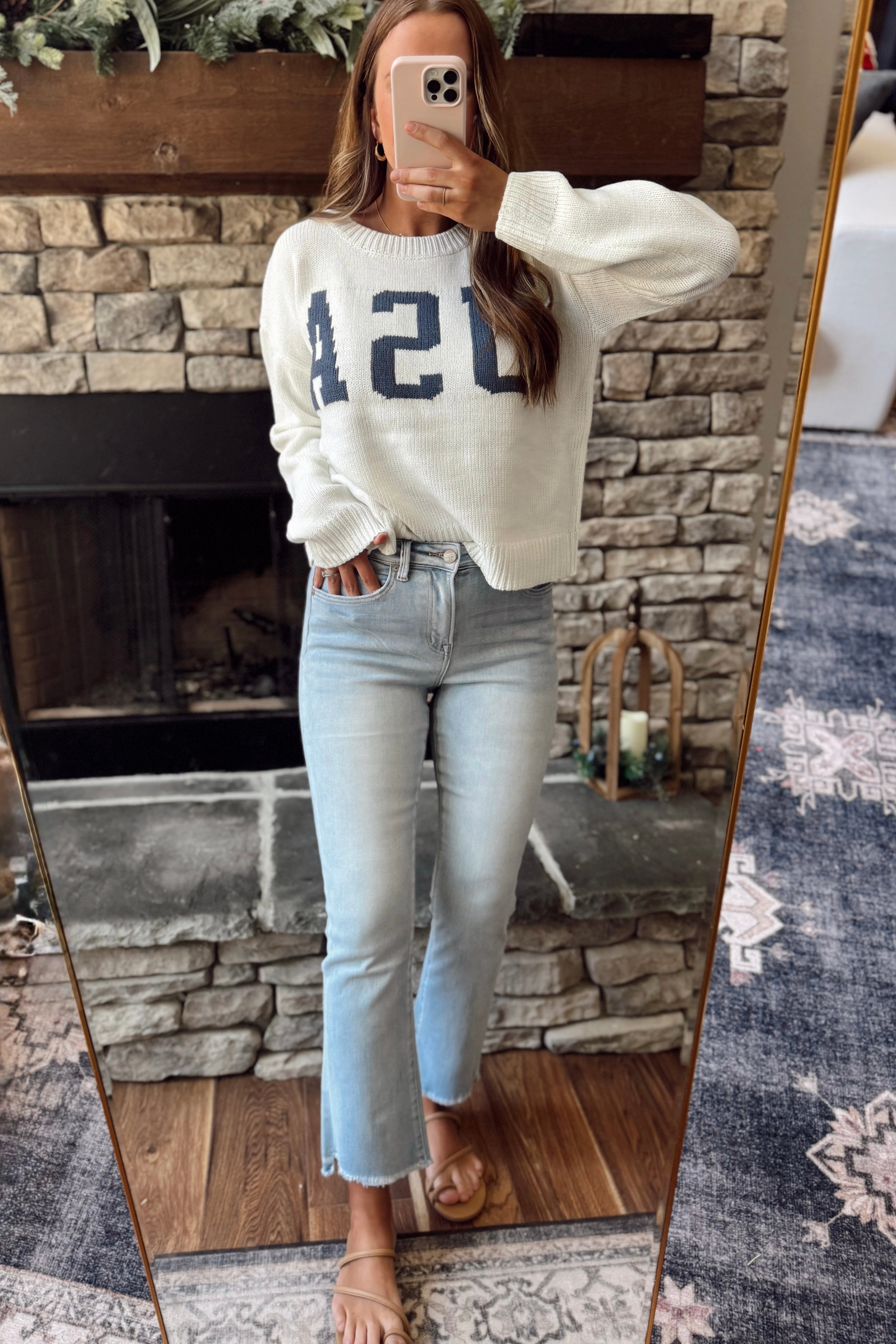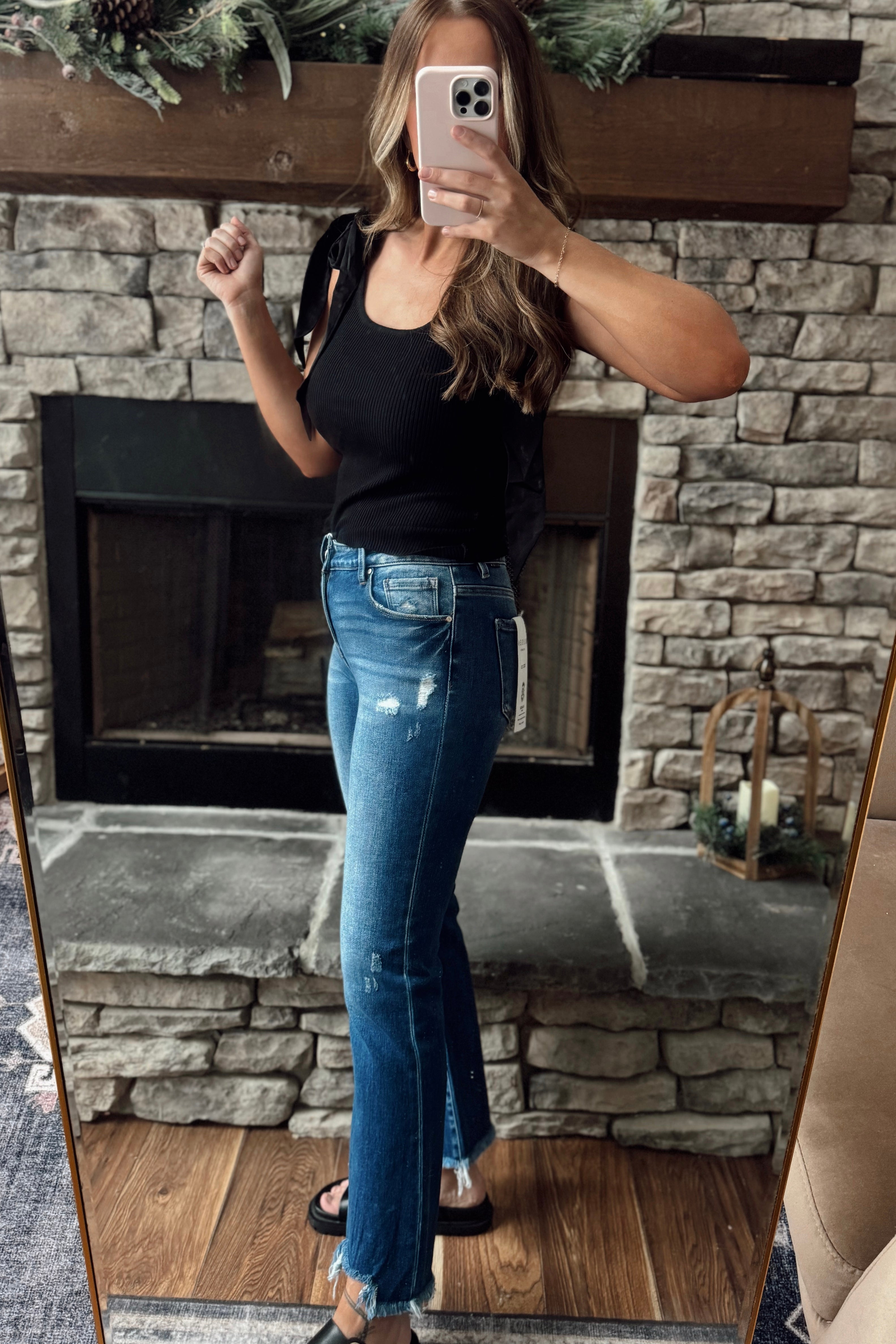Risen Medium HR Cropped Straight Frayed Hem Denim