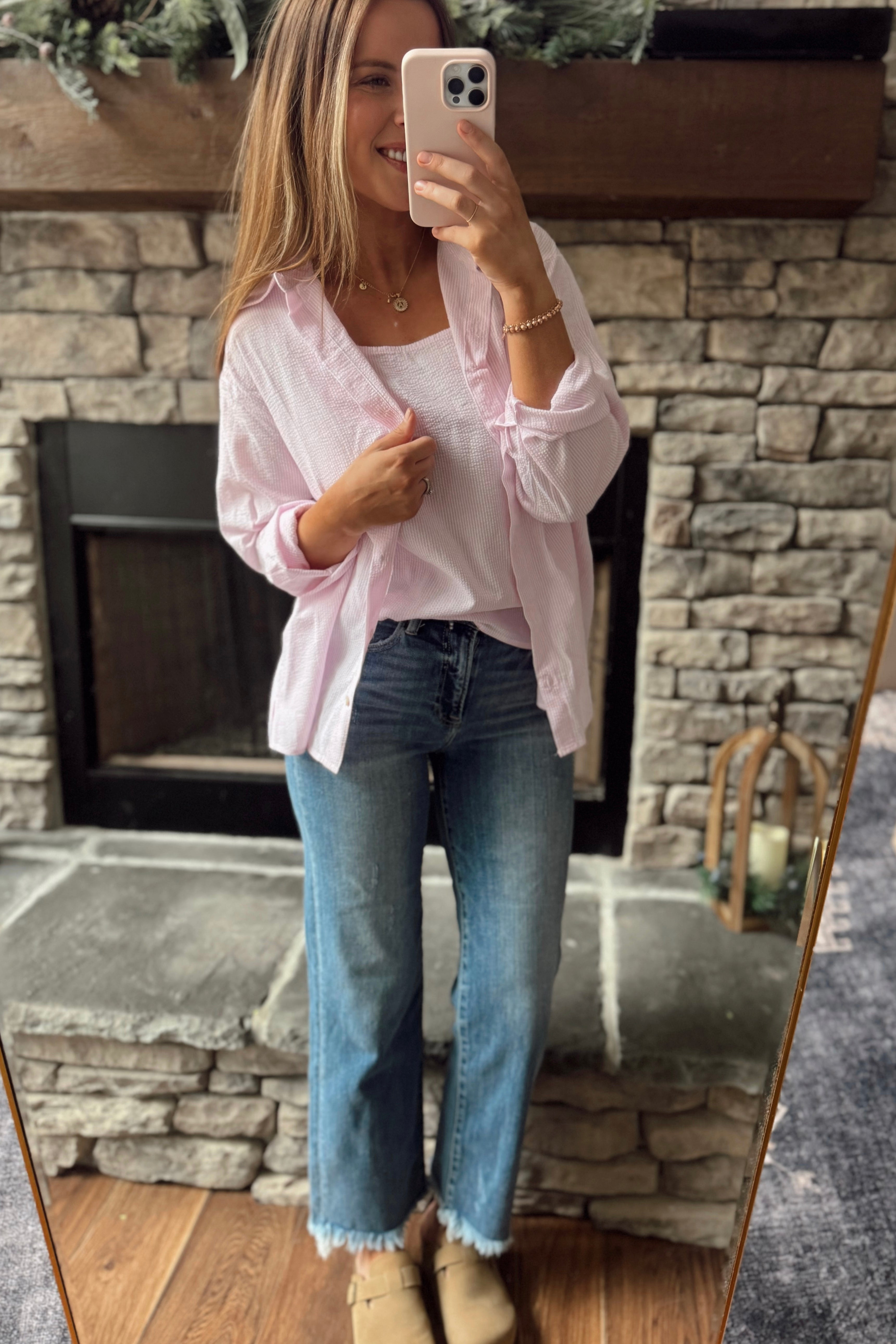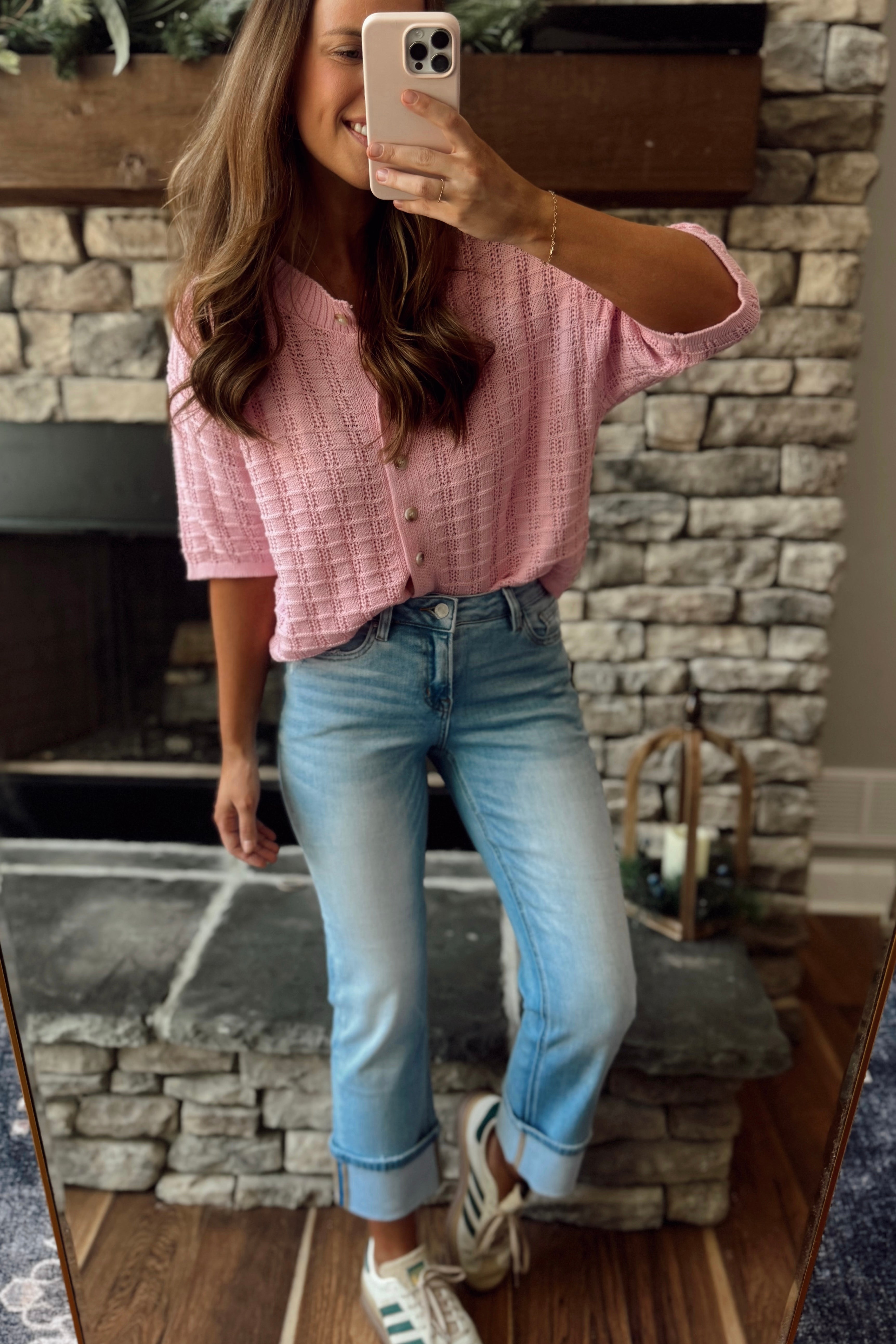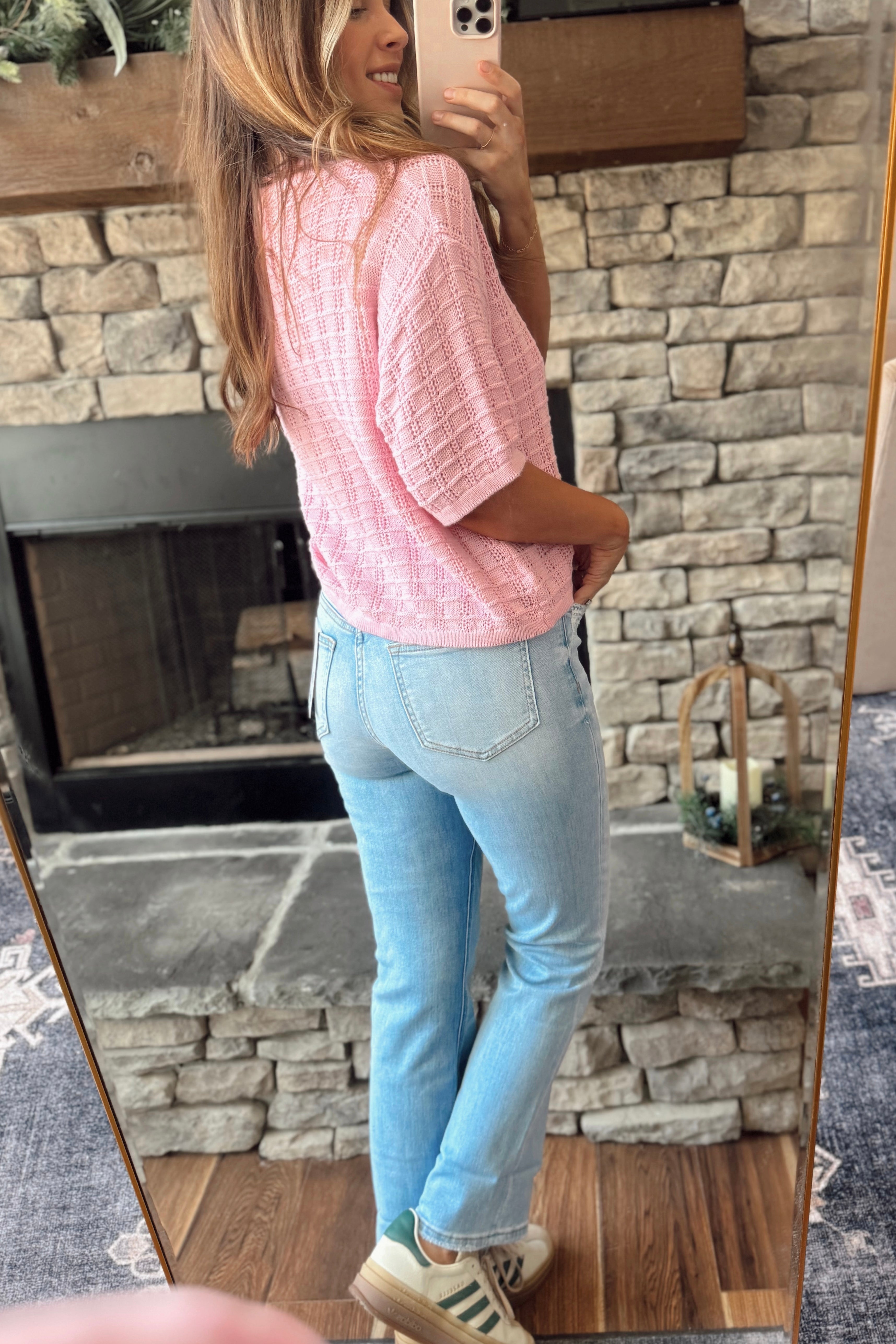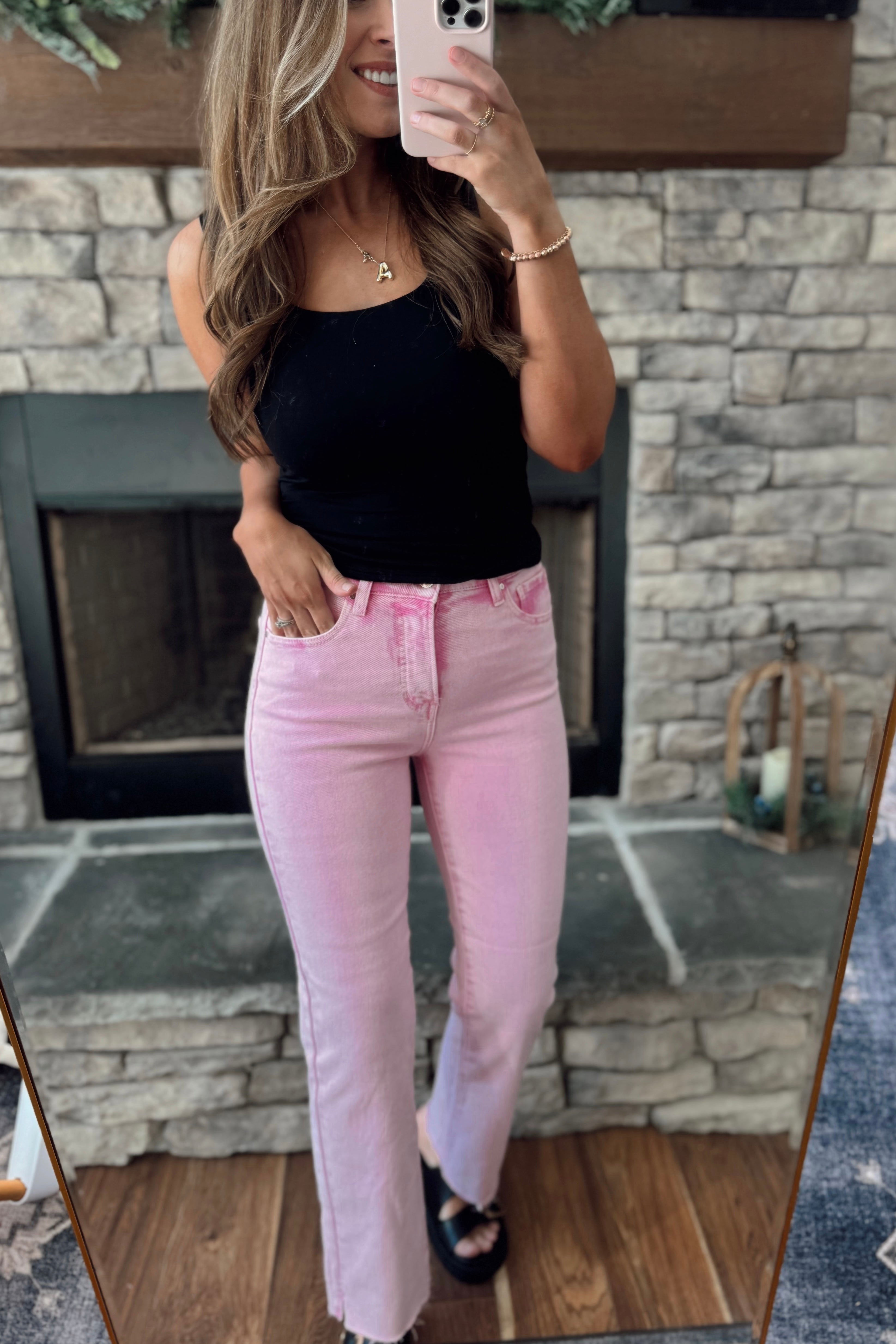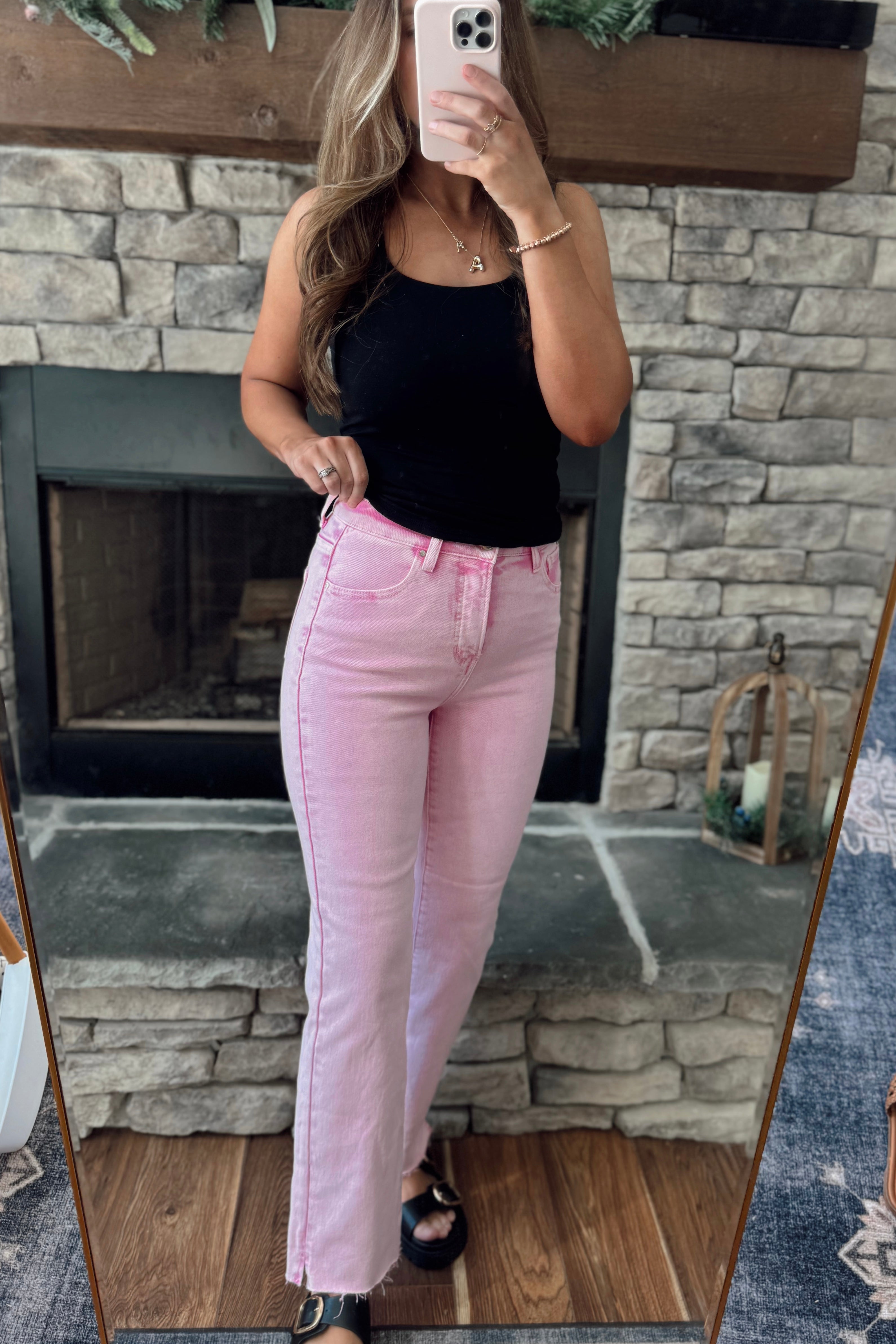 Risen Acid Pink Tummy Control Ankle Straight Raw Hem Denim