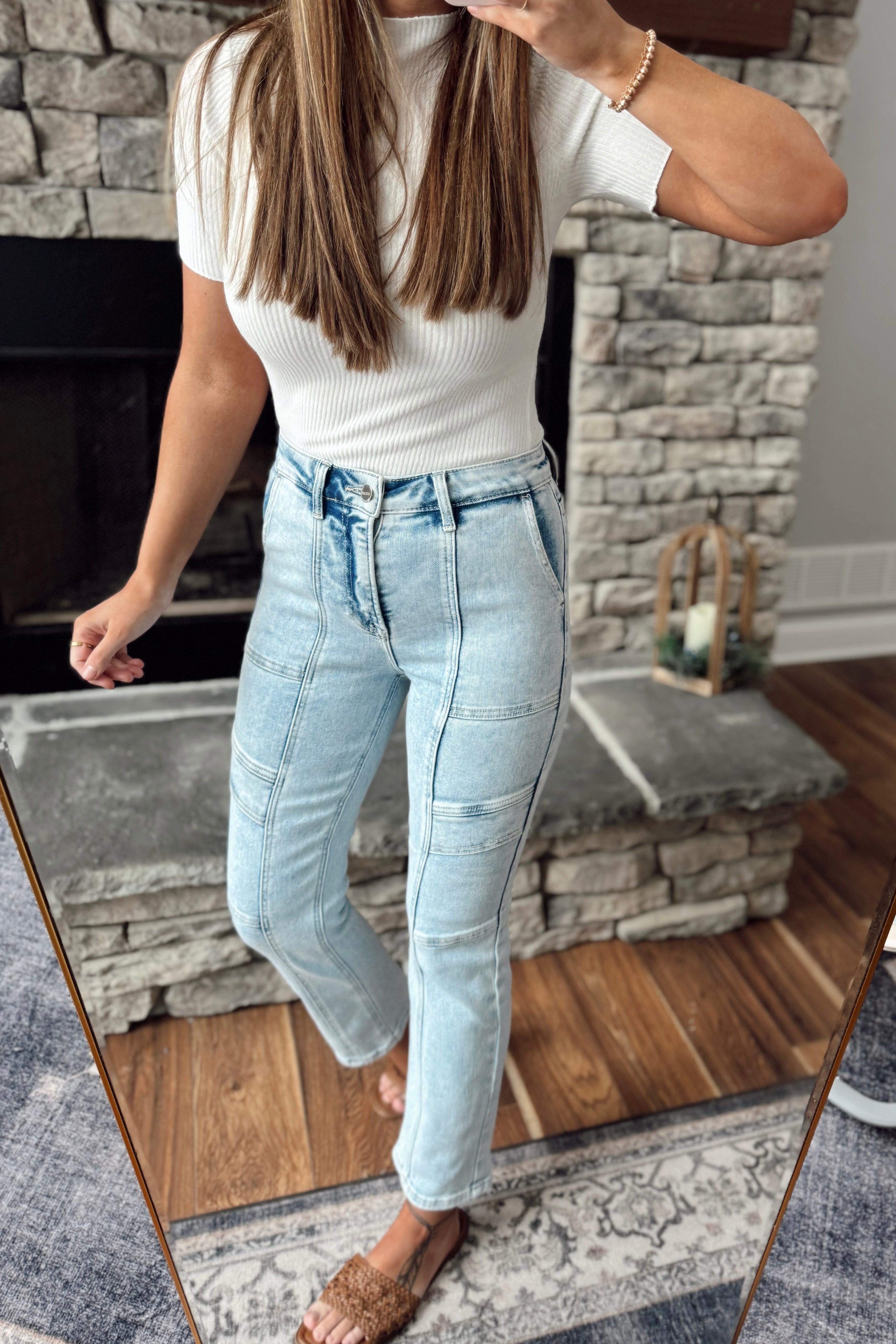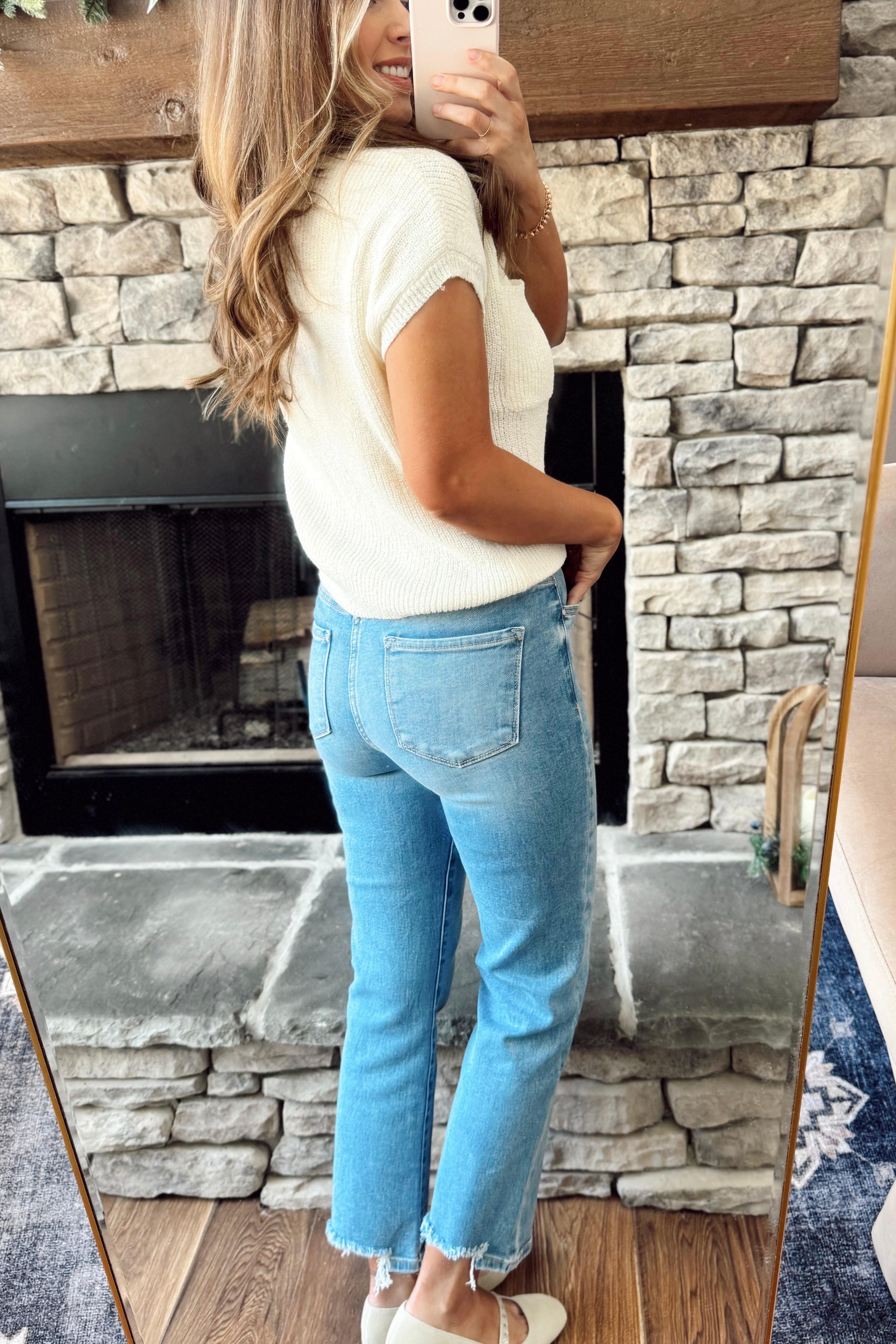 Risen Medium Tummy Control HR Cropped Straight Denim
