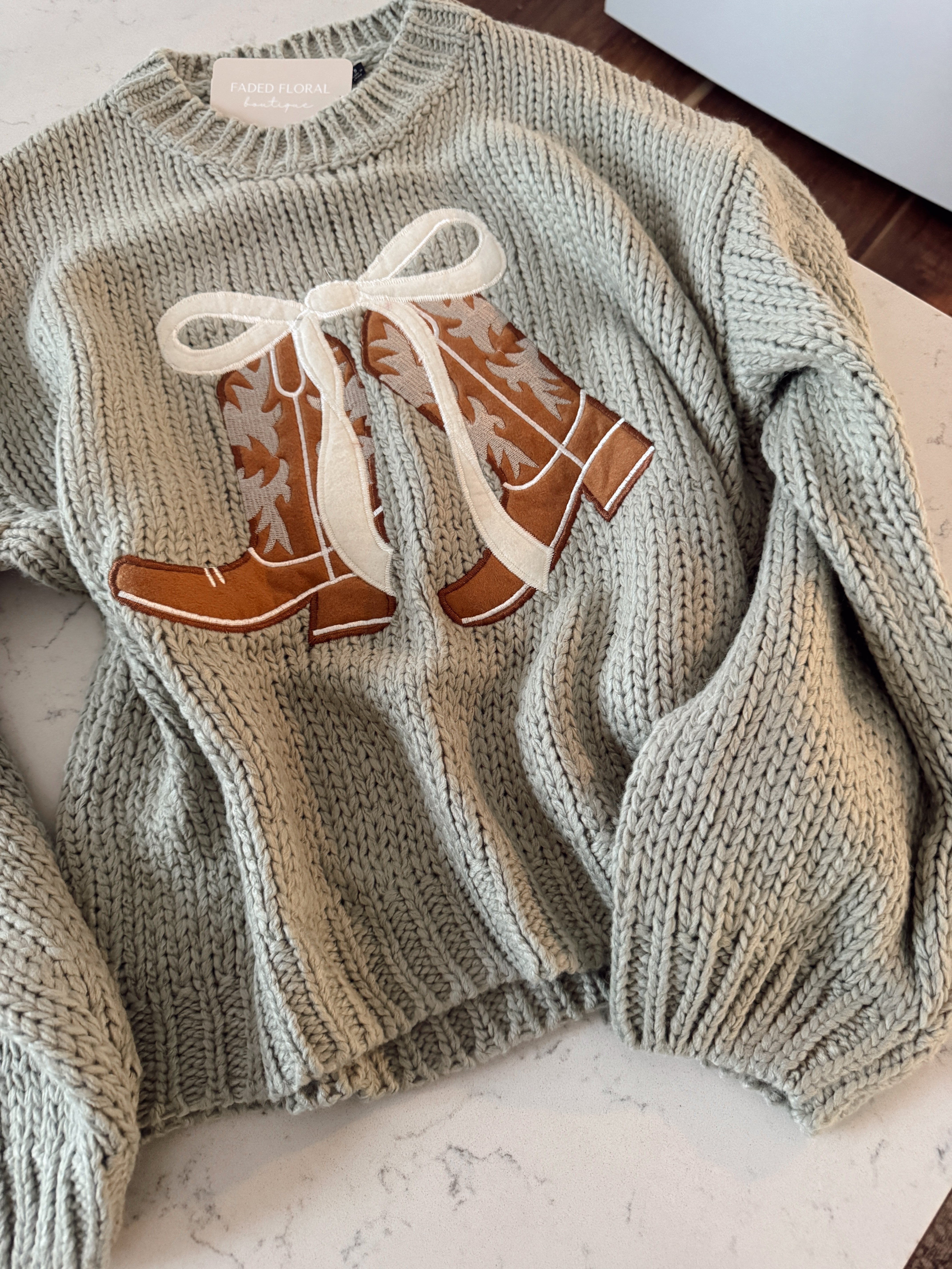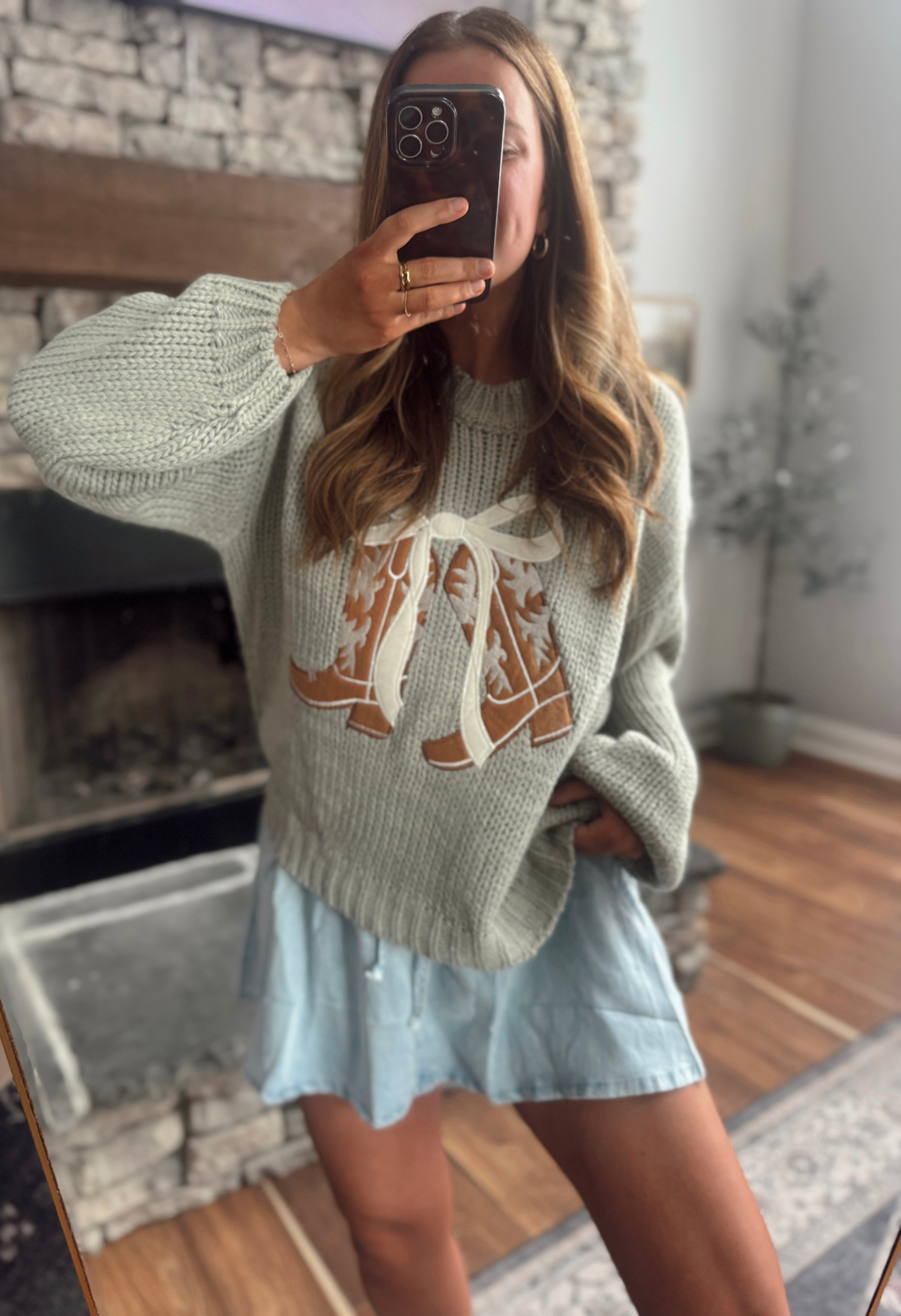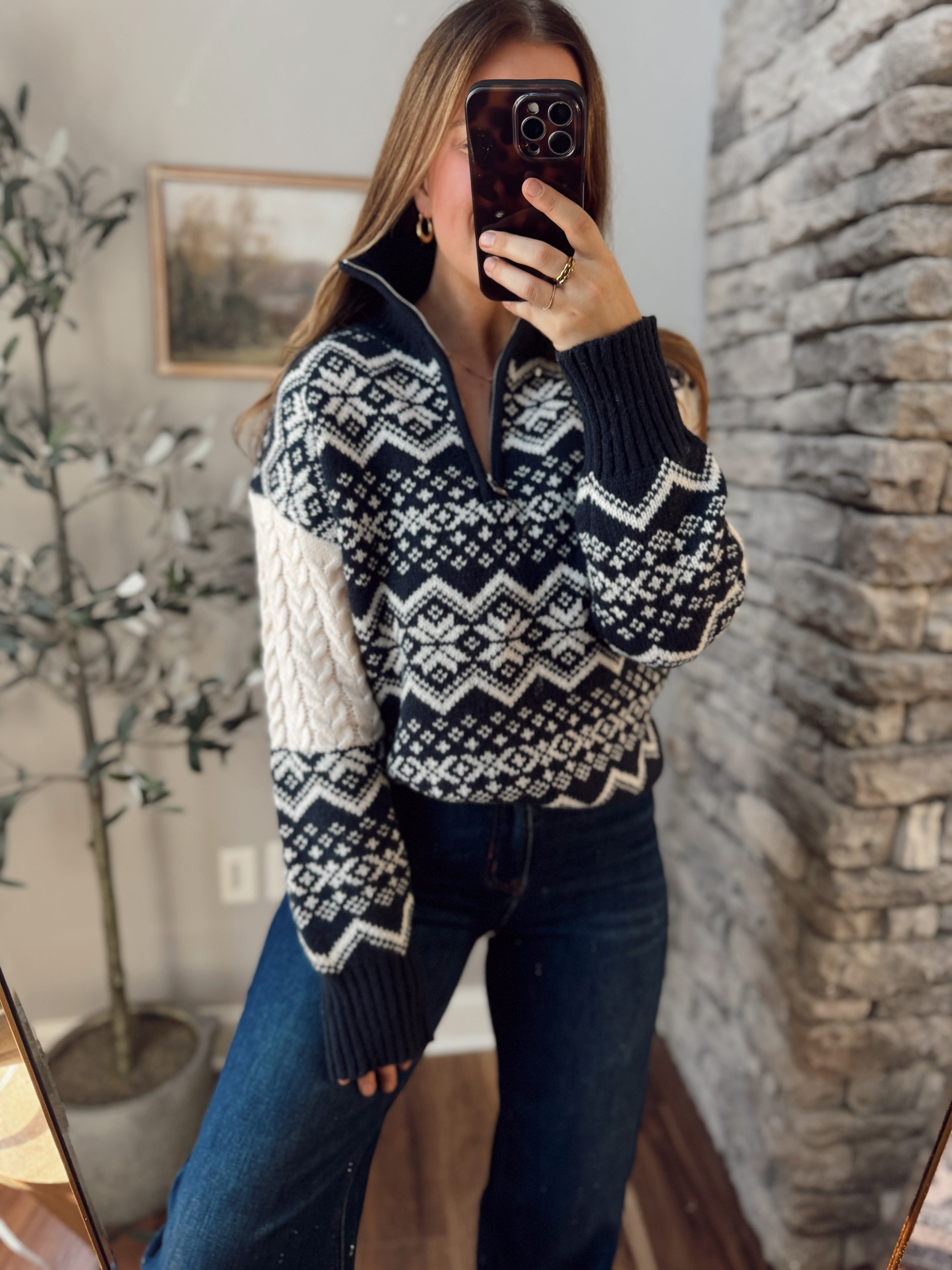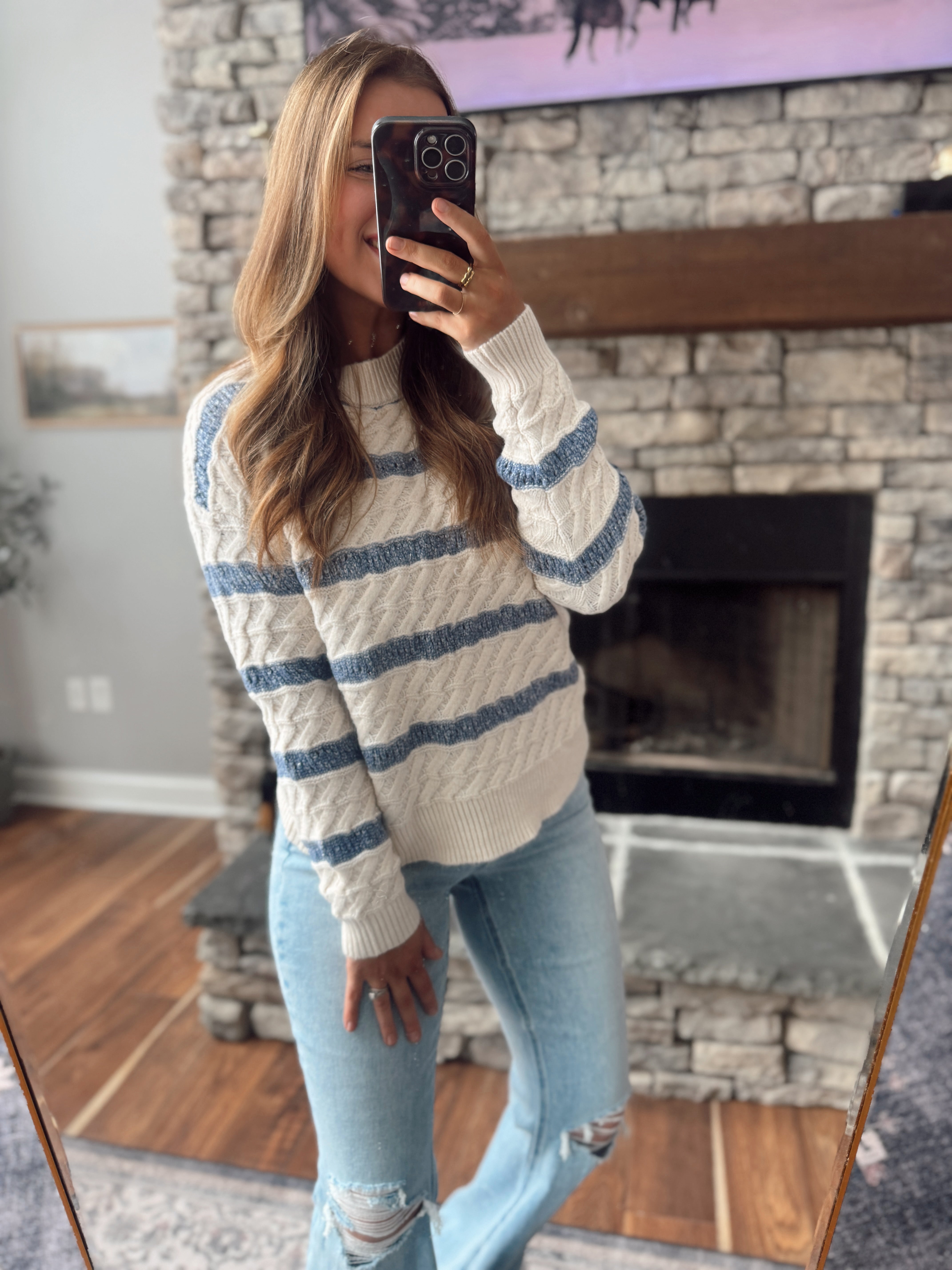 Cream Lilac Exposed Seam Flower Pattern Knit 3/4 Sleeve