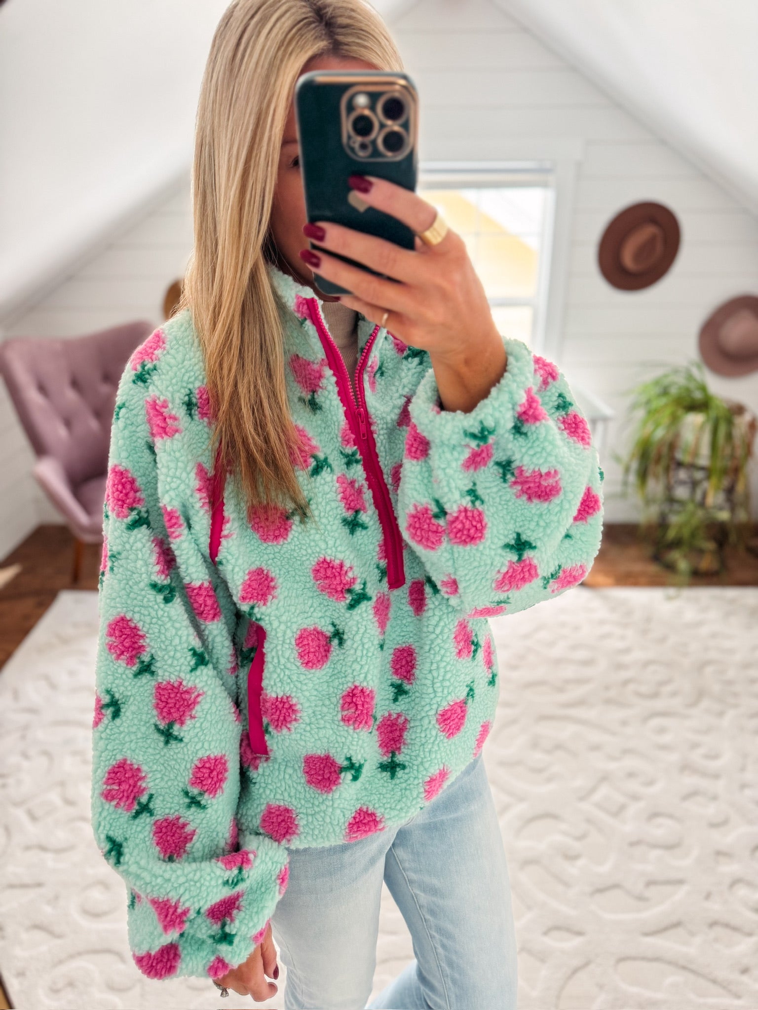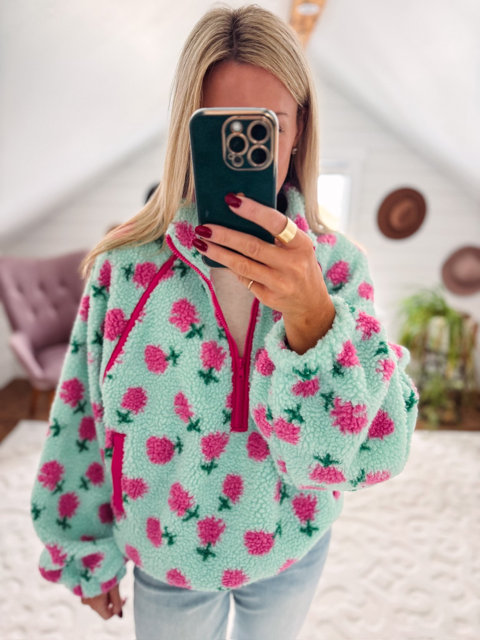 Cotton Candy Fantasy Mint Fleece Henley Zip Up IN STORE