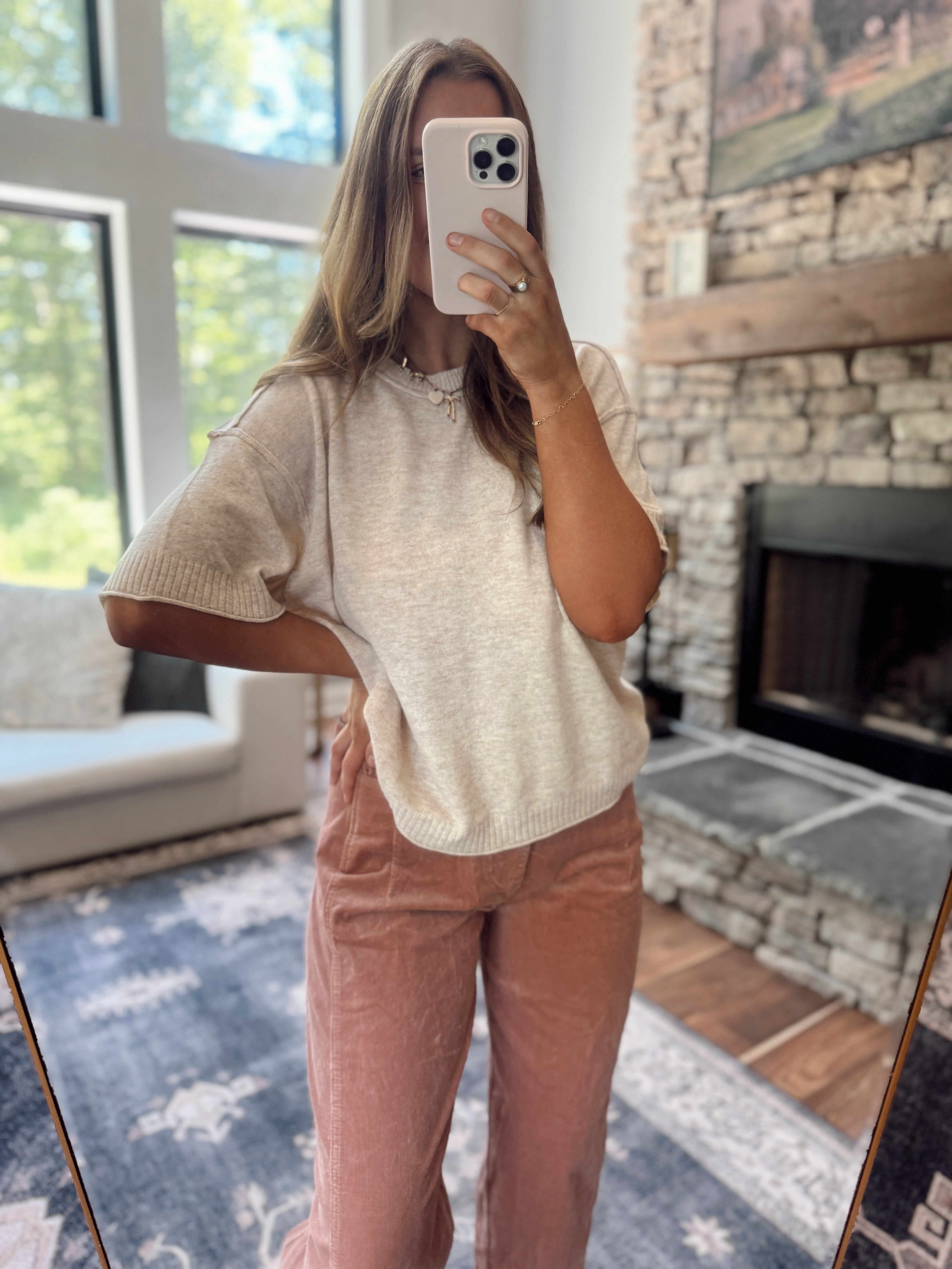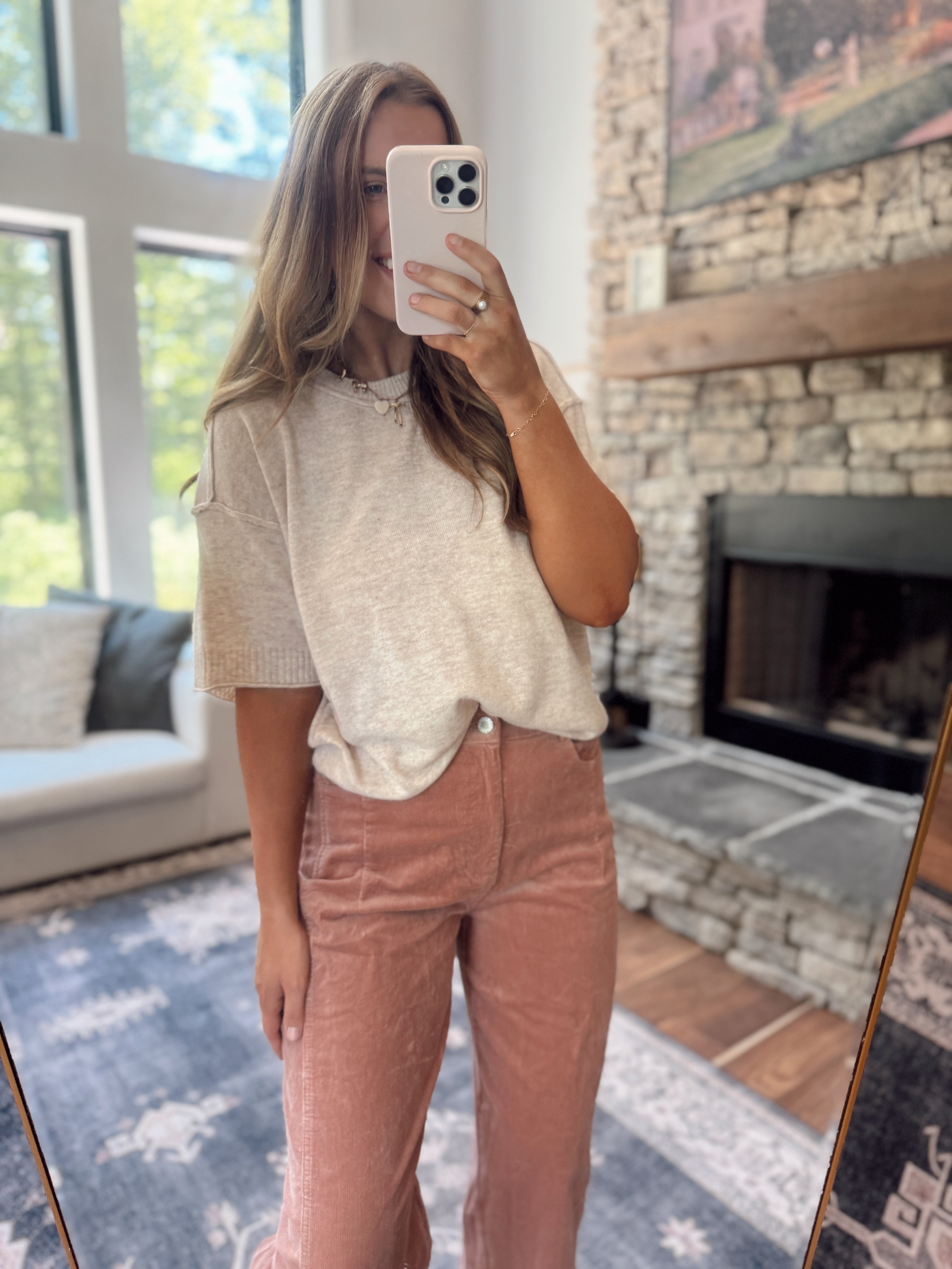 Alicia Ecru/Brick Striped Sleeveless Button Up Sweater Top