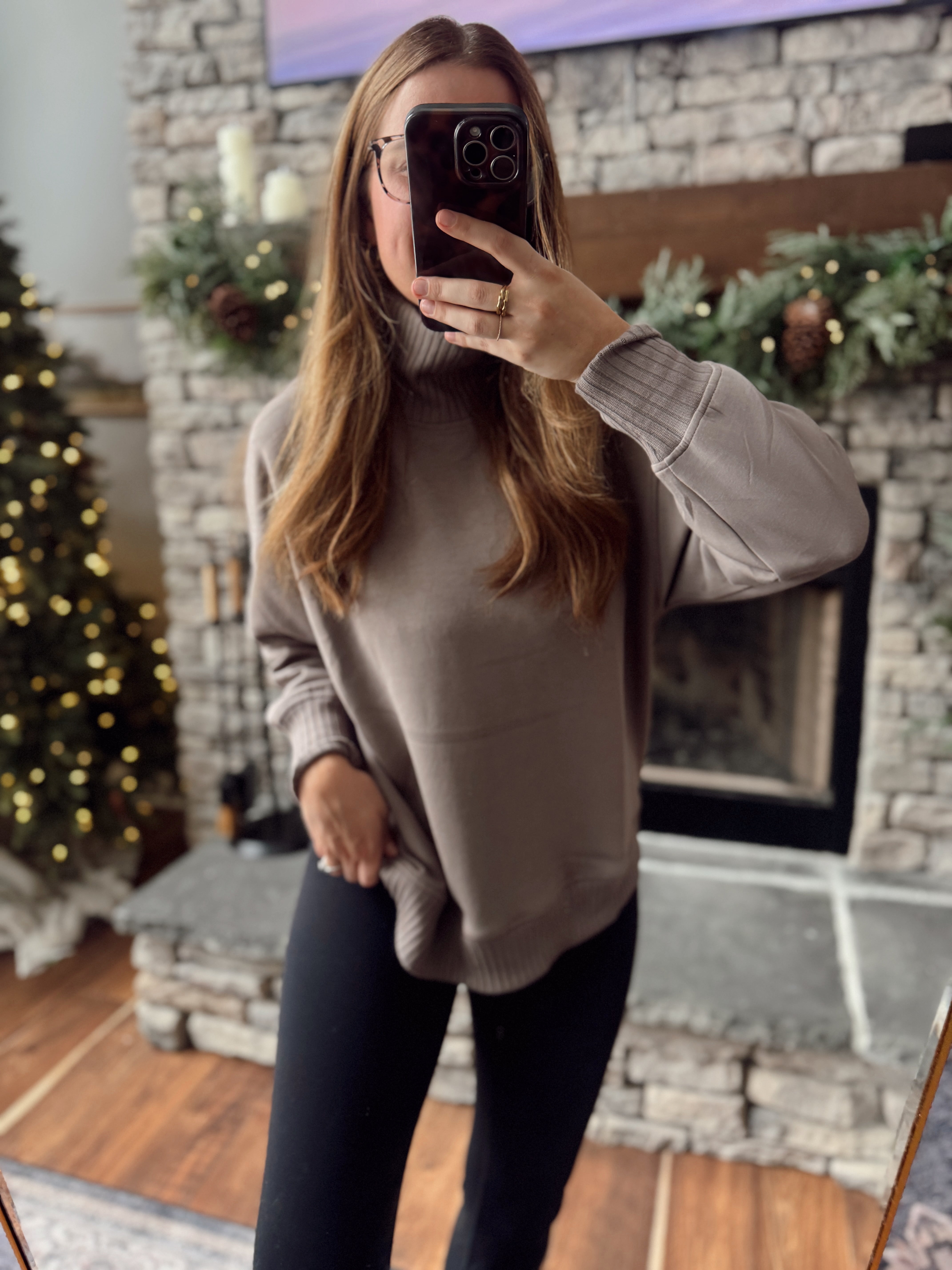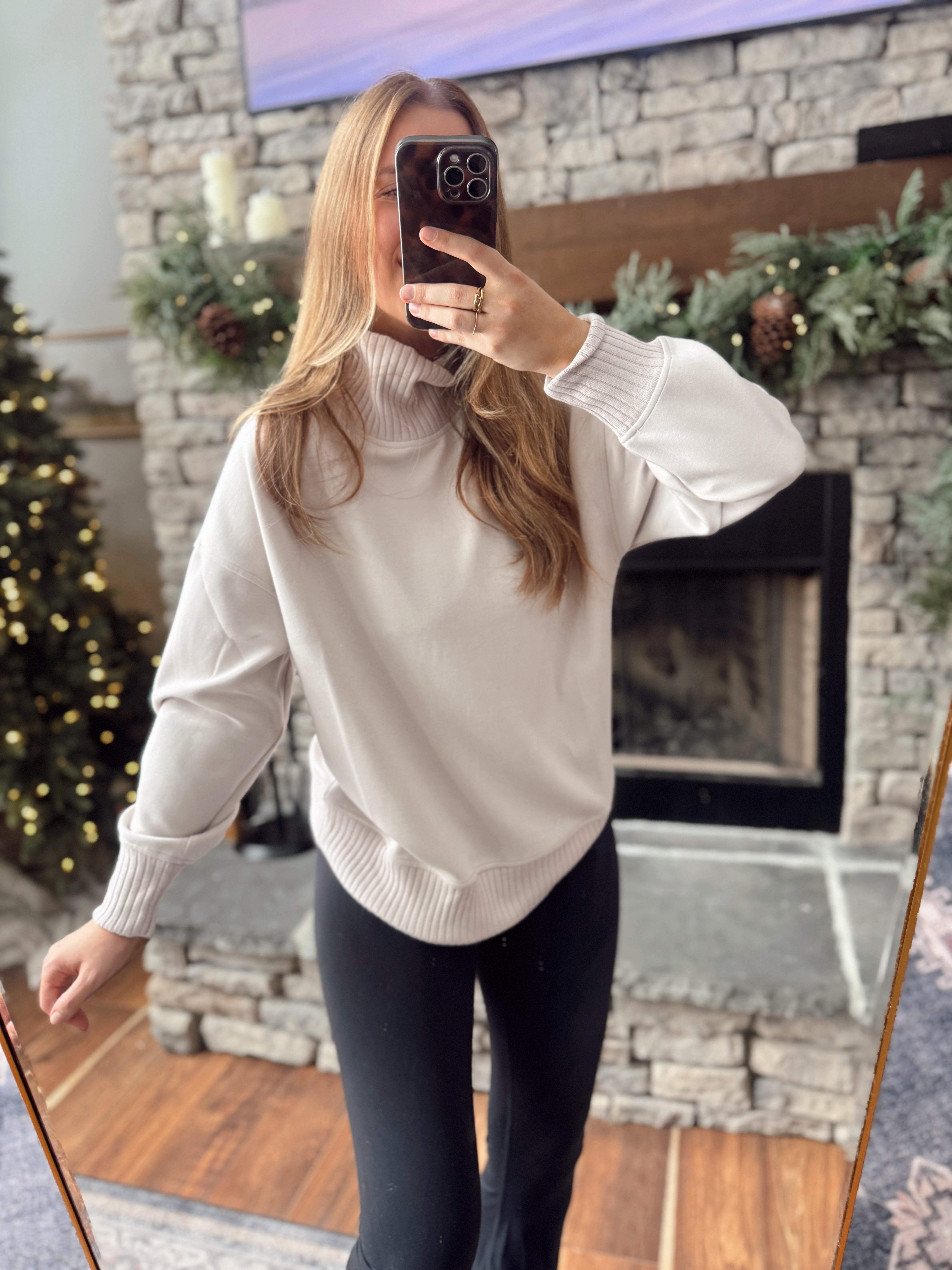 Cream Mocha Goldie Scuba Mock Neck Pullover