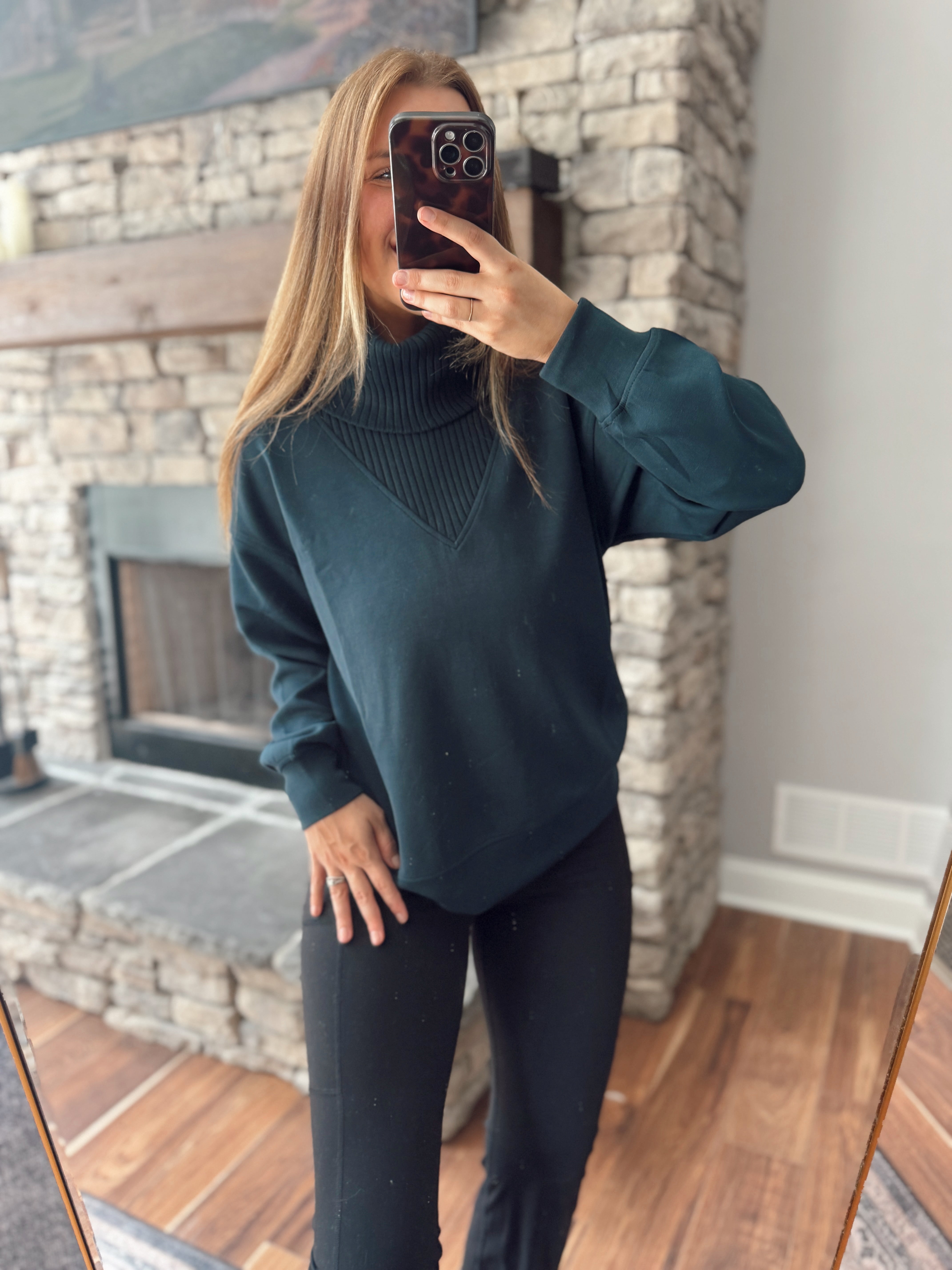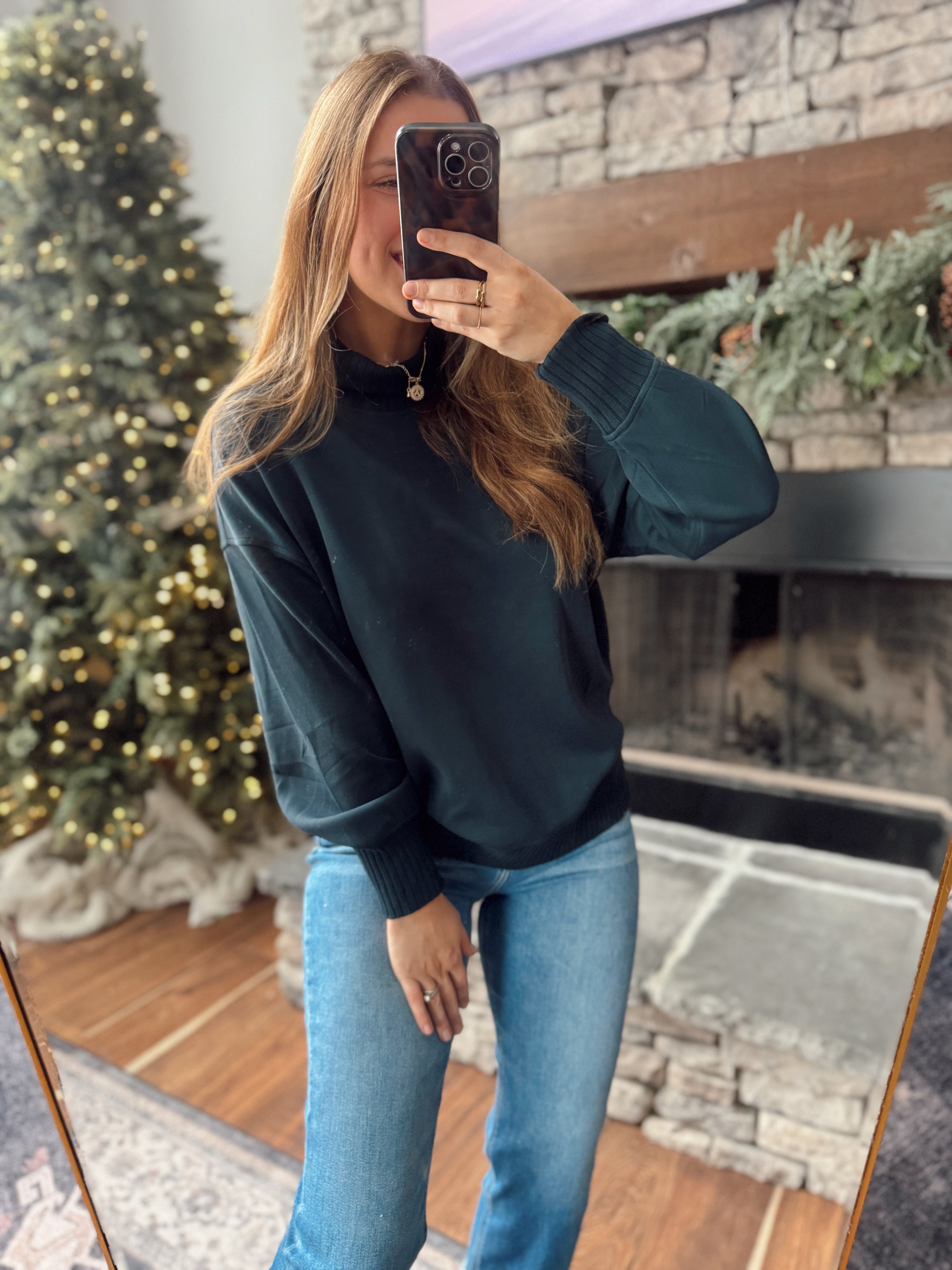 Teal Navy Goldie Scuba Mock Neck Pullover