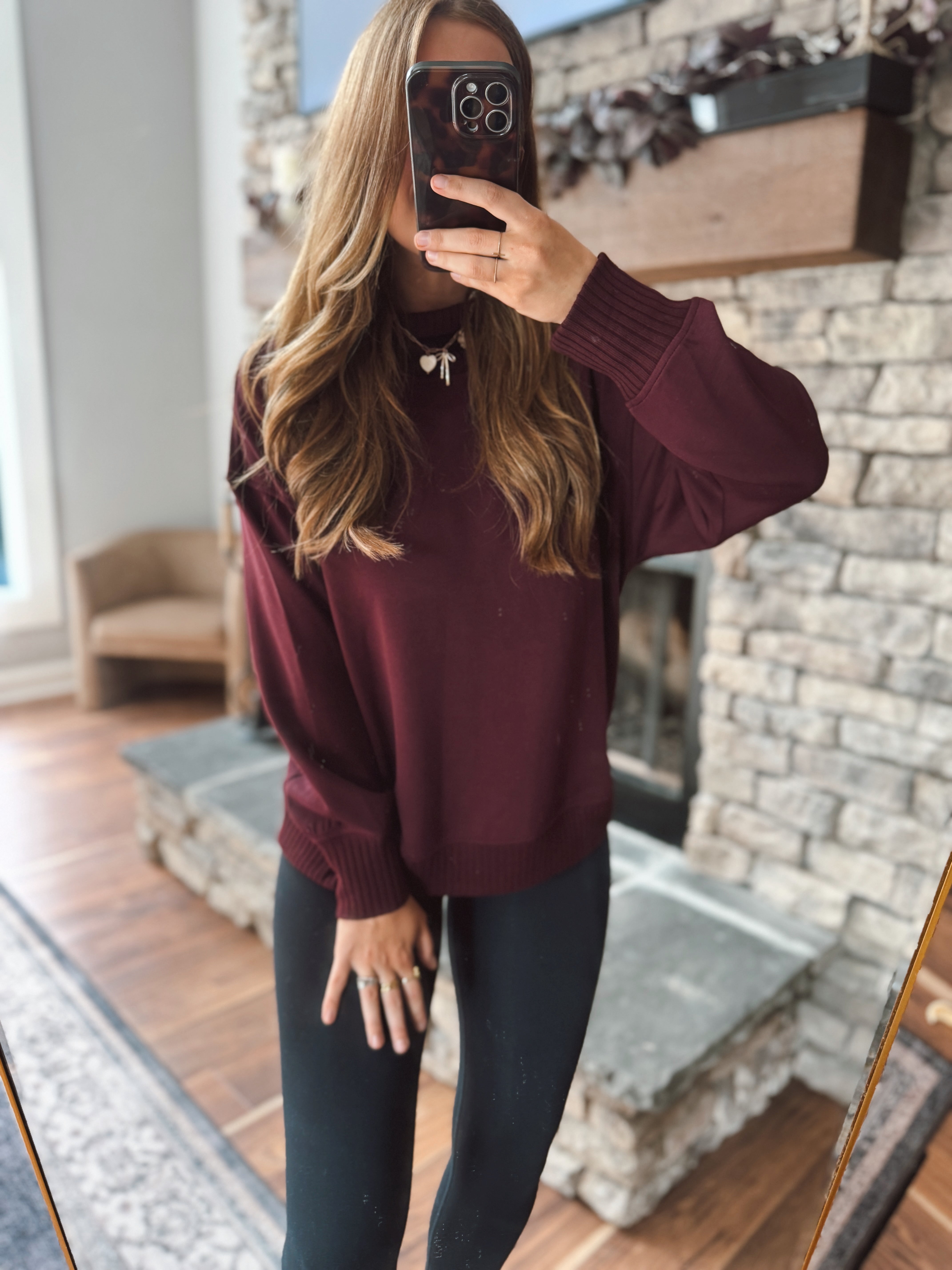 Dark Cherry Goldie Scuba Mock Neck Pullover