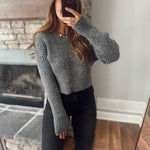 This sweater boasts a noticeable textured knit, offering a snug yet breathable fit perfect for dynamic layering. The relaxed drop sleeves enhance a laid-back look, ideal for styling over fitted tees or under sleek jackets. With its comfortable structure, it's perfect for casual outings or relaxed evenings.