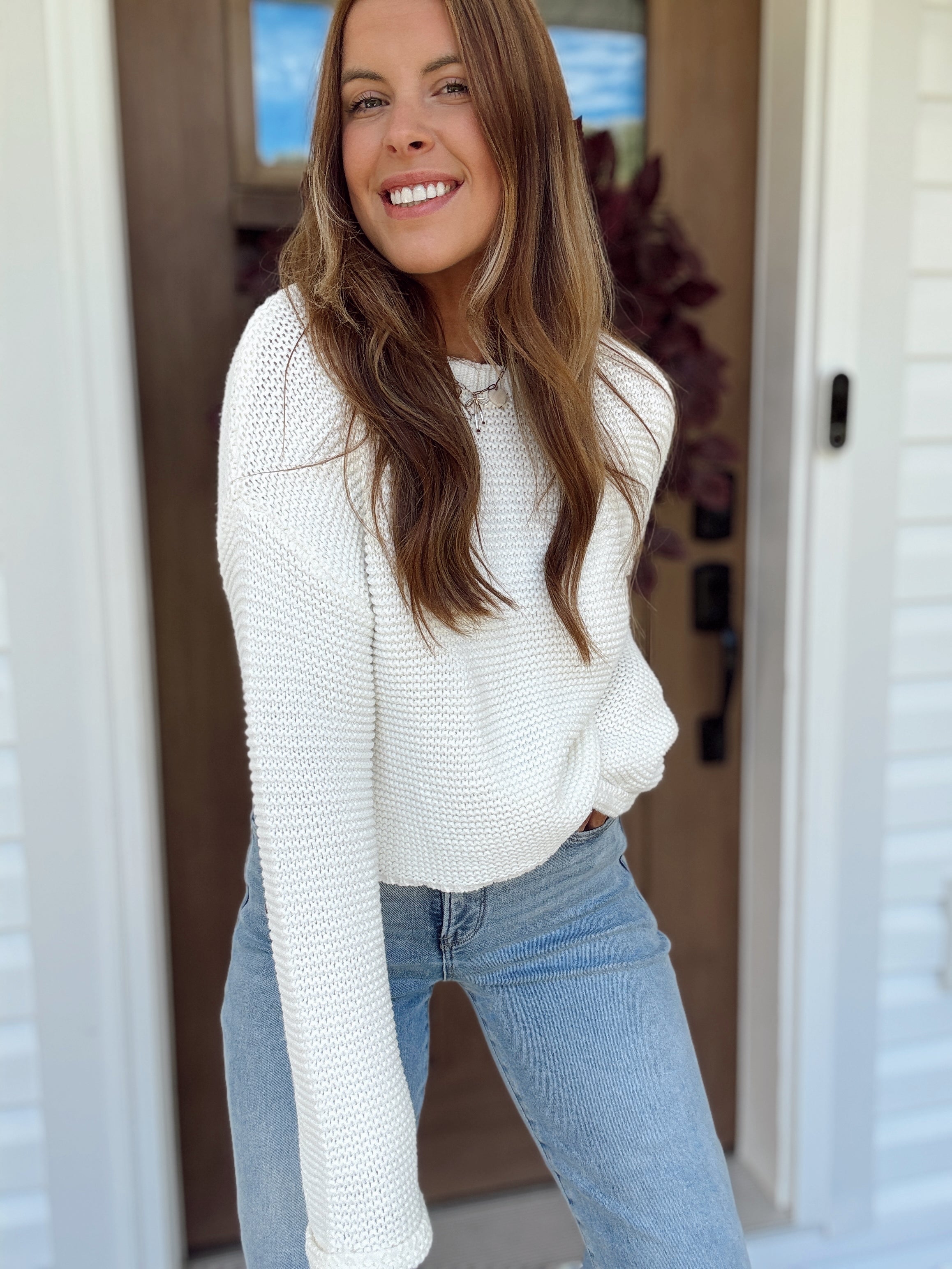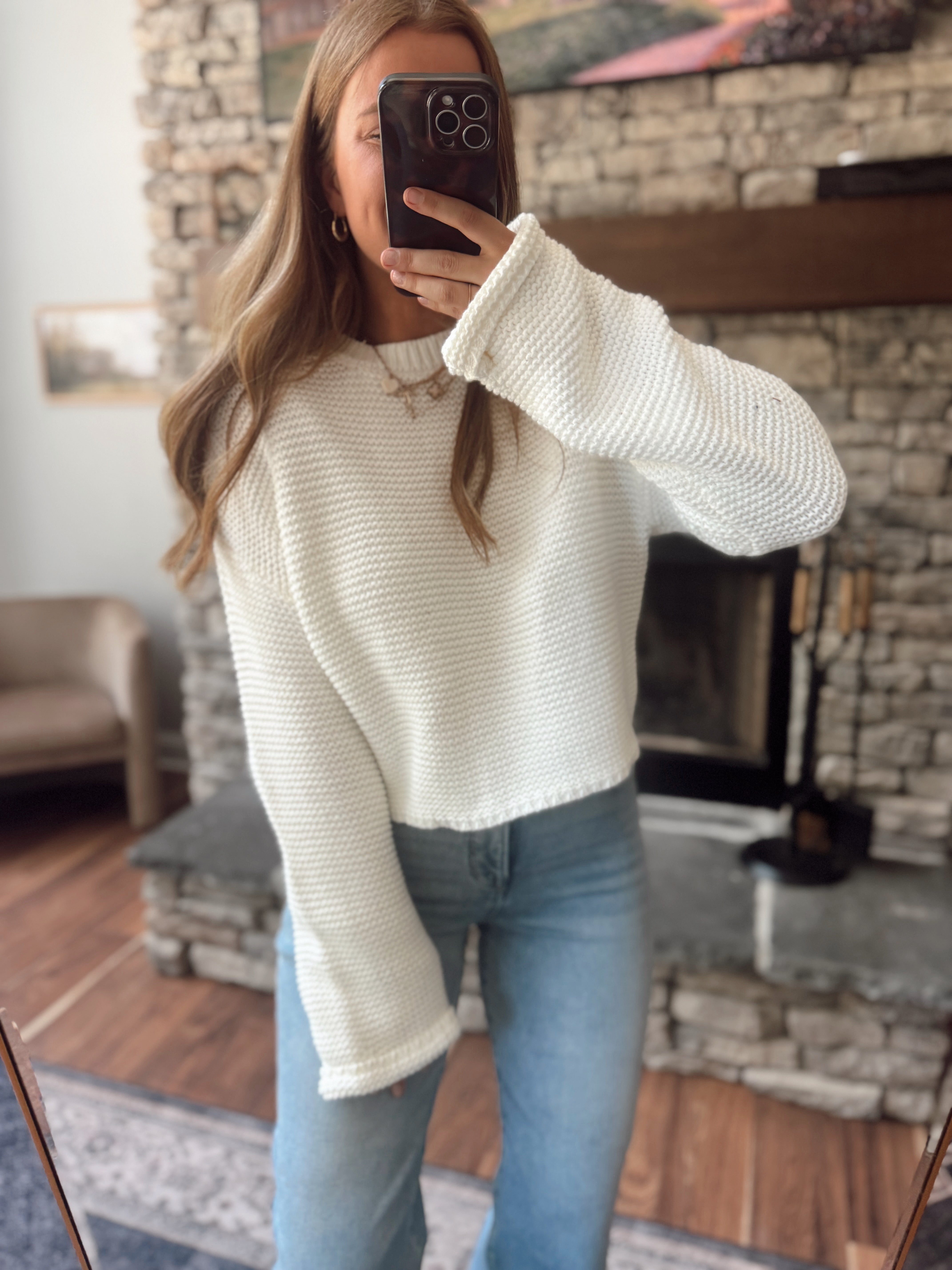 The ultimate everyday knit you’ll want on repeat. This relaxed-fit sweater is designed with a soft, chunky knit texture, wide sleeves, and a slightly cropped length that pairs perfectly with high-waisted denim or skirts. Effortless and versatile, it comes in multiple colors to suit your mood and season.
