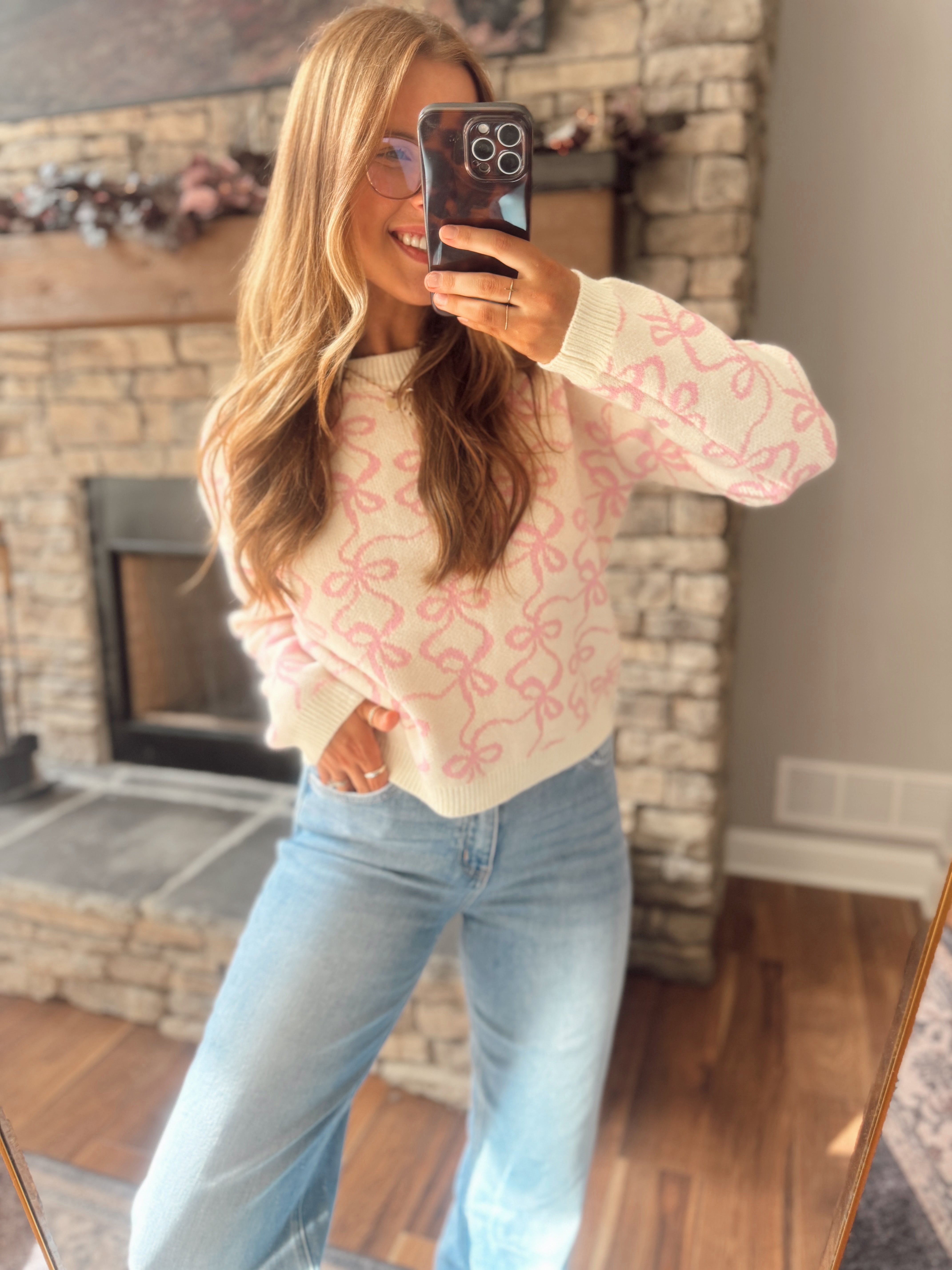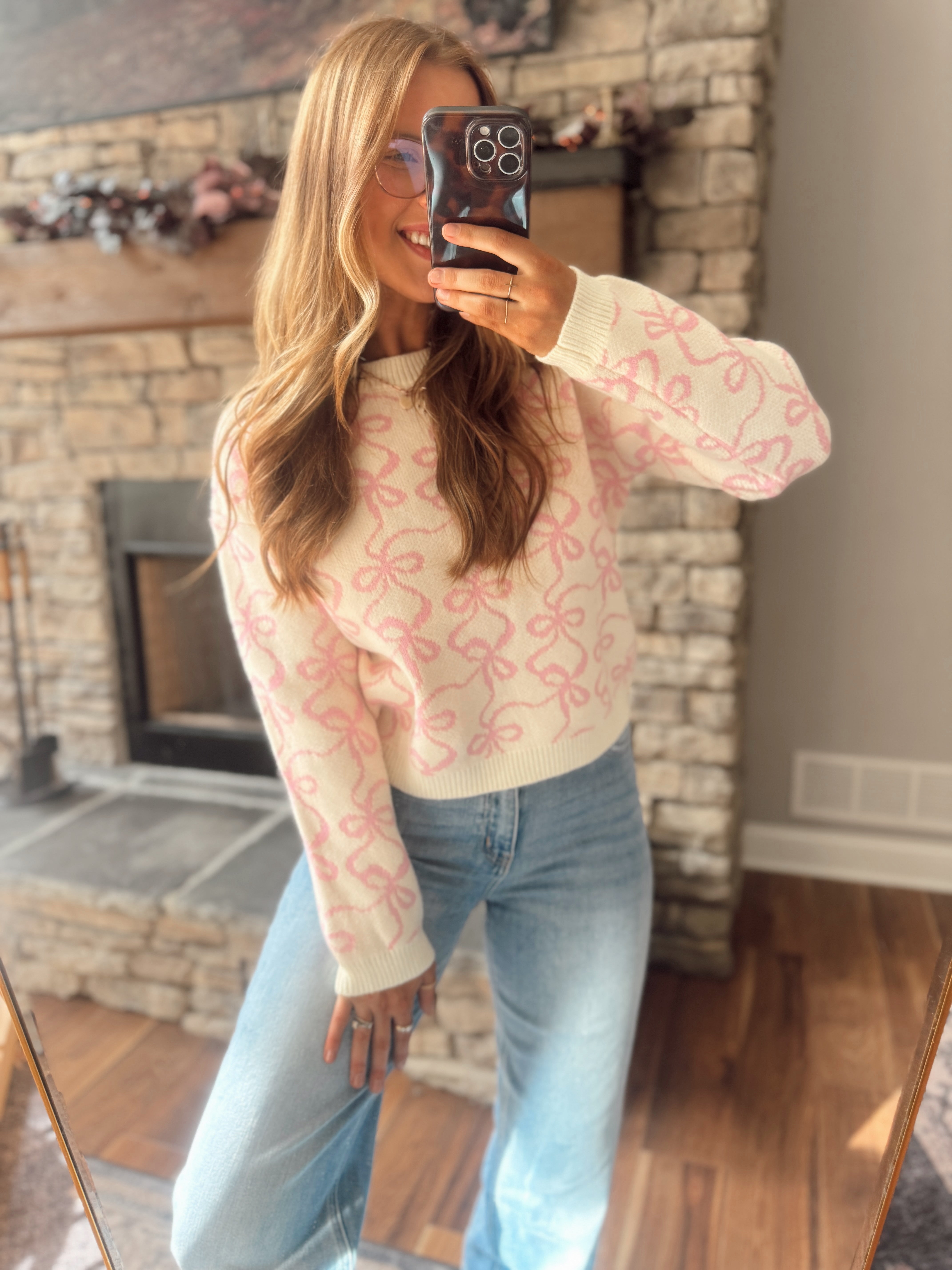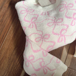 The soft, dreamy fabric feels like a warm hug while the playful bow pattern adds just the right touch of sweetness. Pair it with your favorite denim for an effortless everyday look, or layer it over a skirt to dress it up.