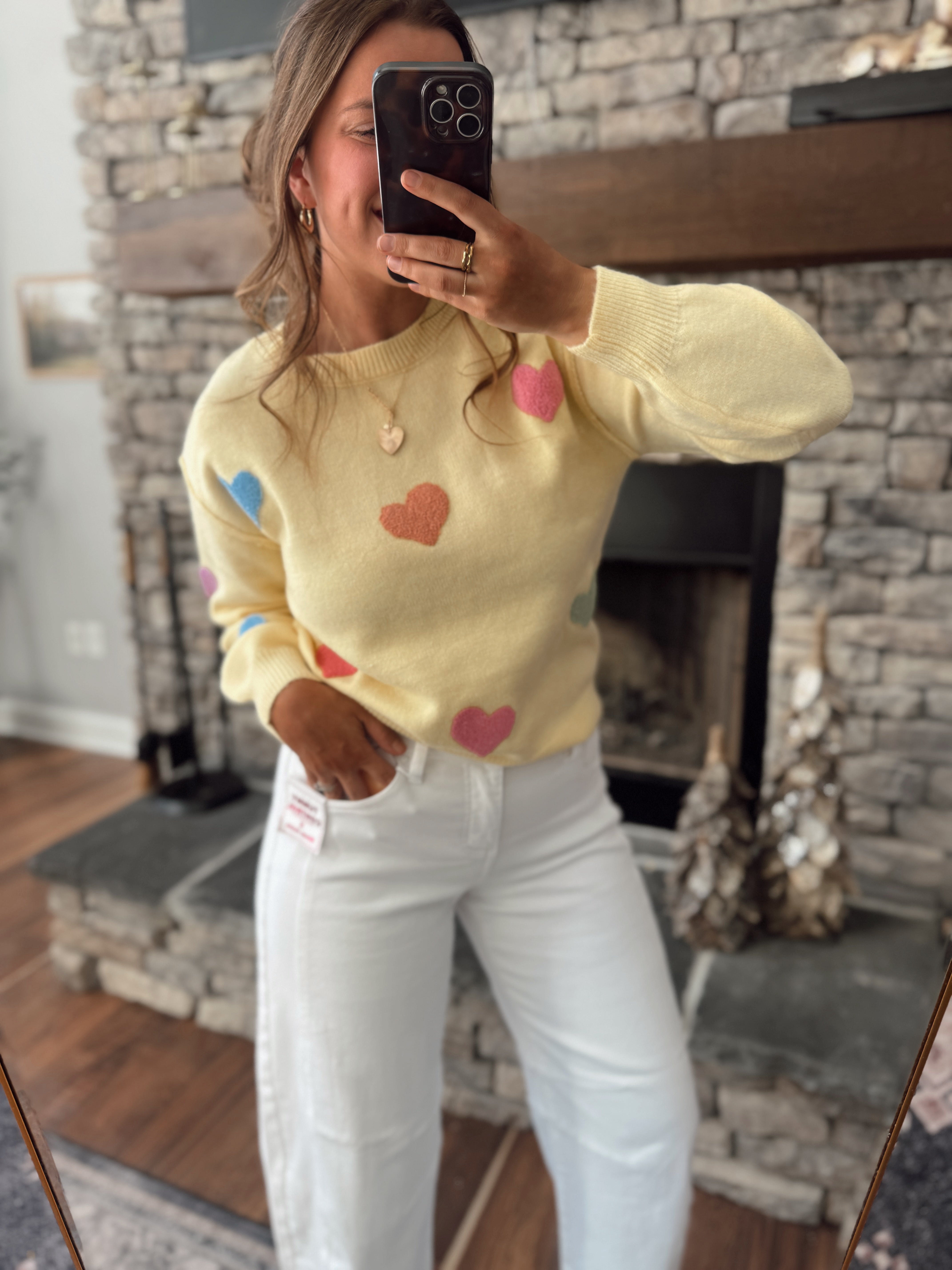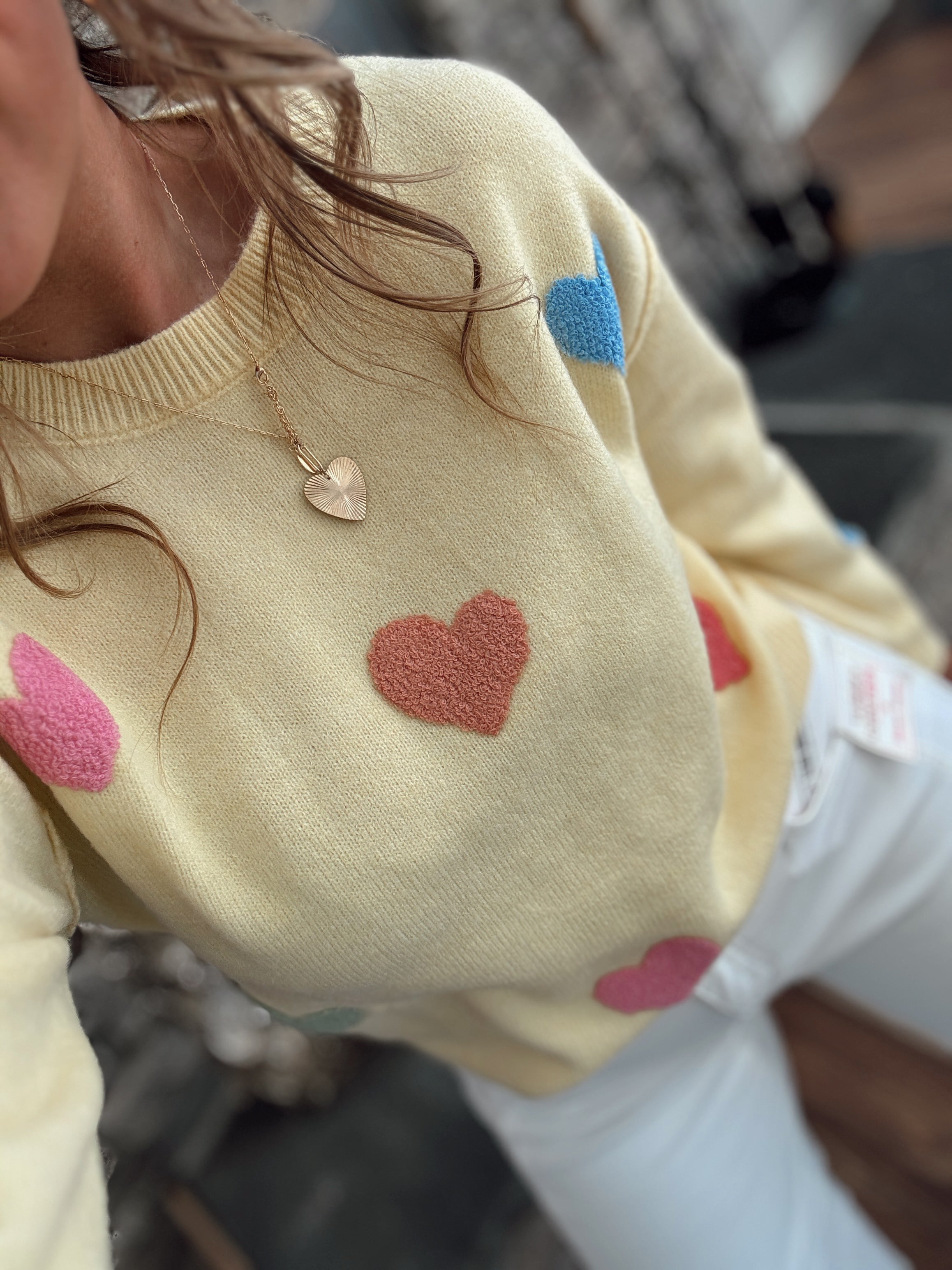 Cream Sugar Heart Sweater