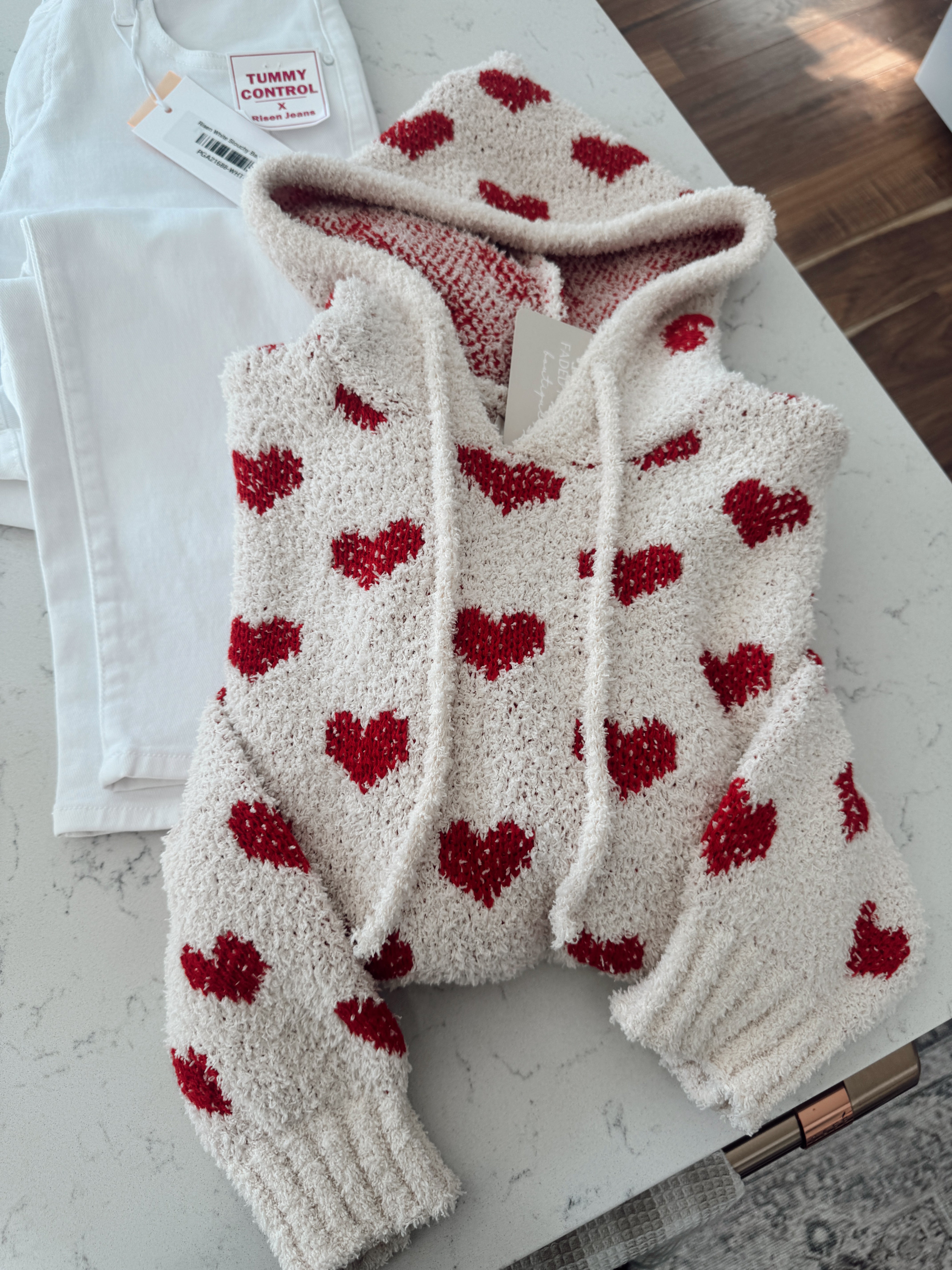 Cream Heart To Heart Hooded Sweater