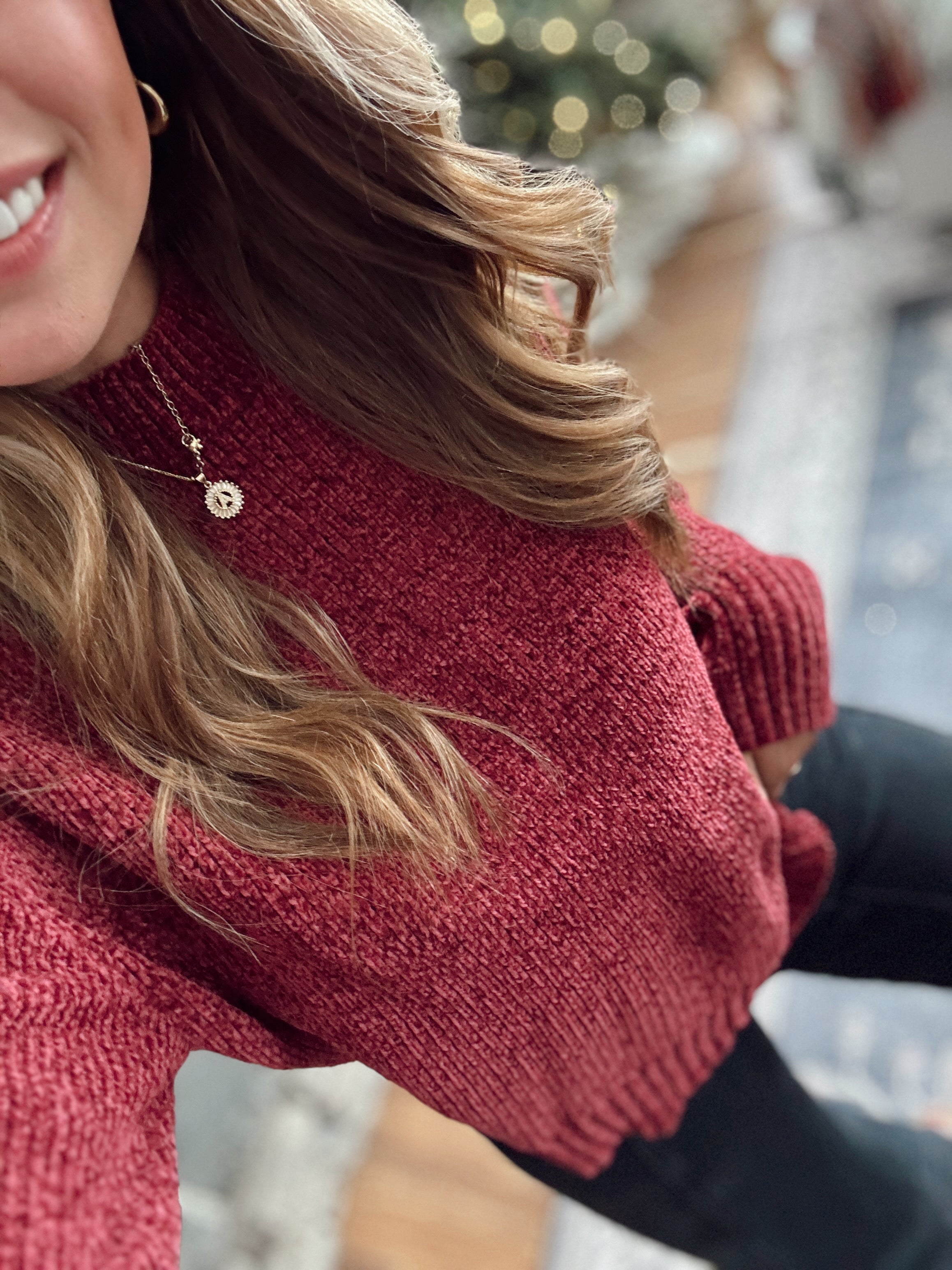 Warm Me Up Burgundy Soft Knit Mock Neck Sweater