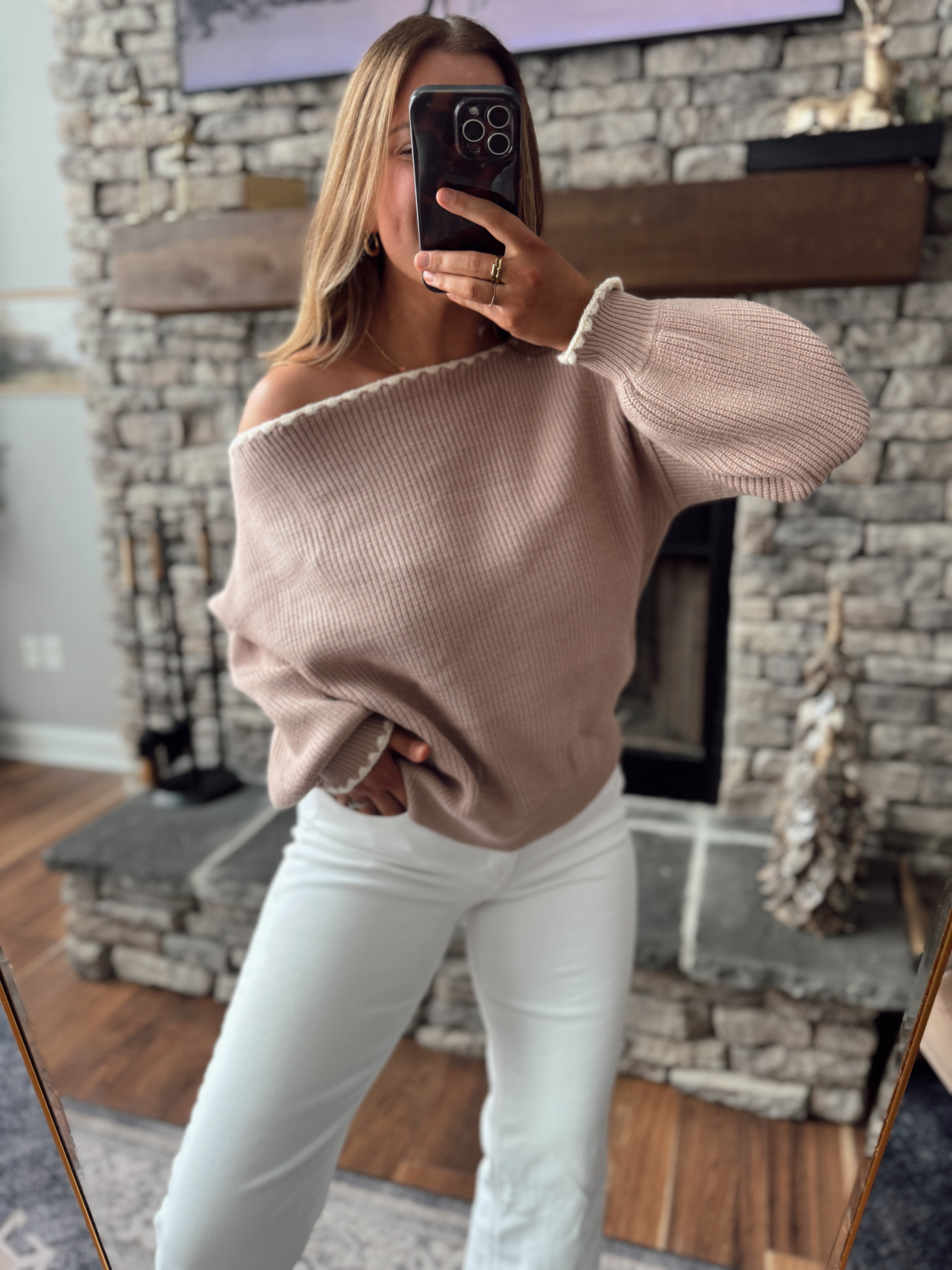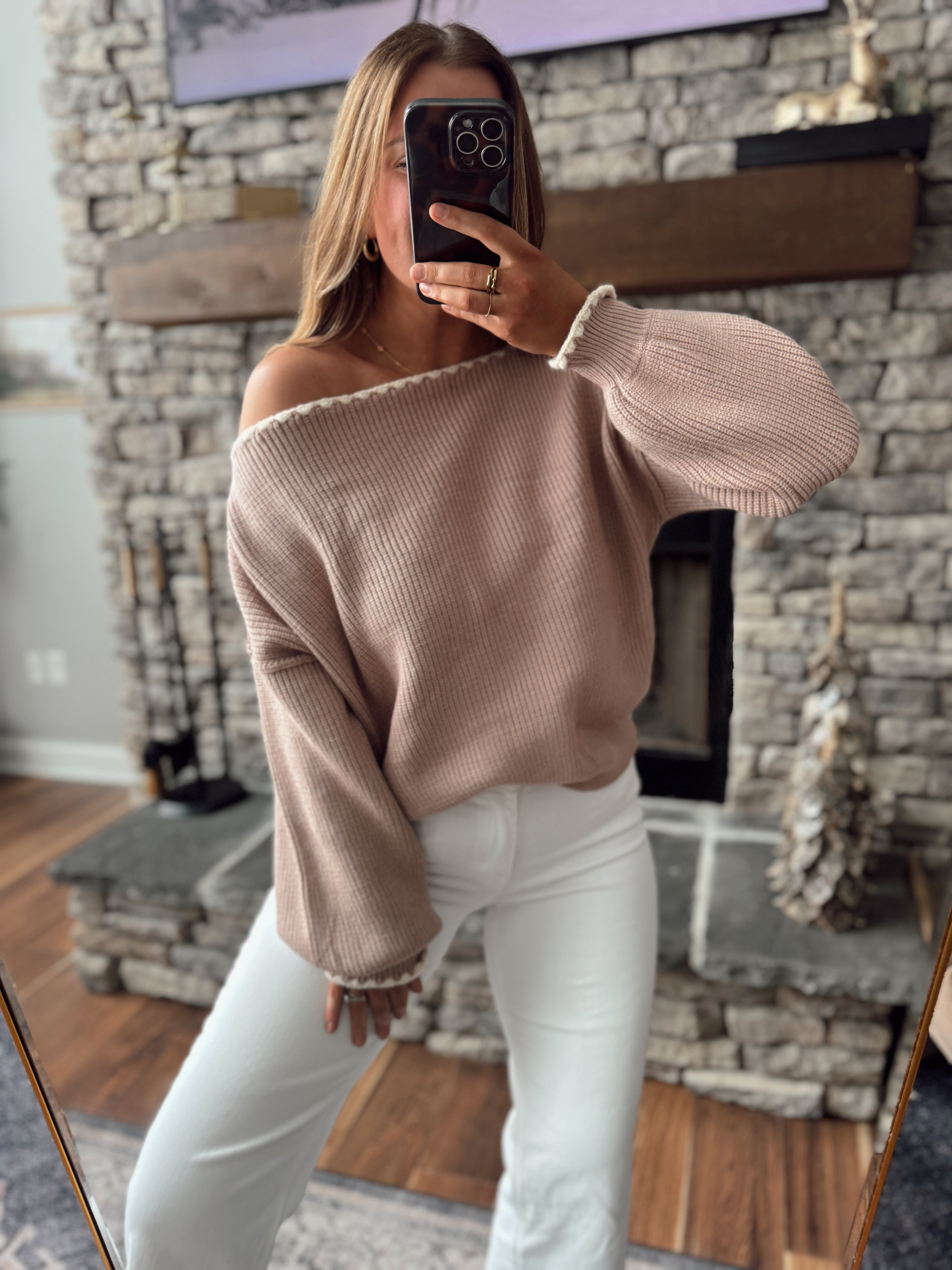 Ash Taupe Boat Neck Detail Sweater
