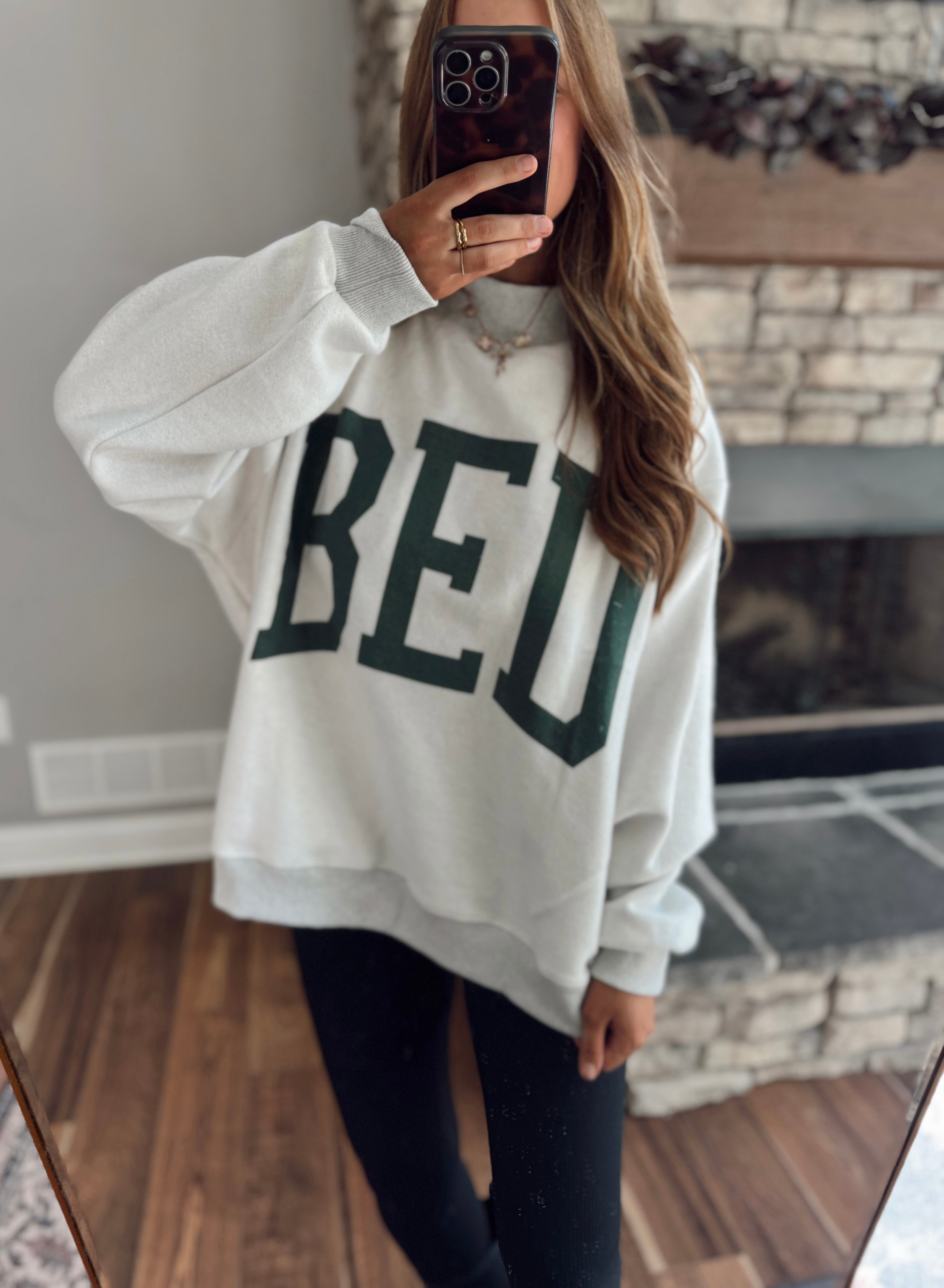 Because who doesn't love both. This cozy crewneck pairs soft fleece comfort with a timeless collegiate look—perfect for the gym, coffee runs, bed, and everything in between.