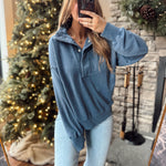 Your new go-to cozy essential from Rae Mode! This oversized pullover features a soft washed fabric, corduroy collar, and snap-button neckline for that effortless, cool-girl vibe. The relaxed, slouchy fit makes it easy to throw on with jeans, leggings, or even biker shorts — comfy, casual, and perfectly lived-in.