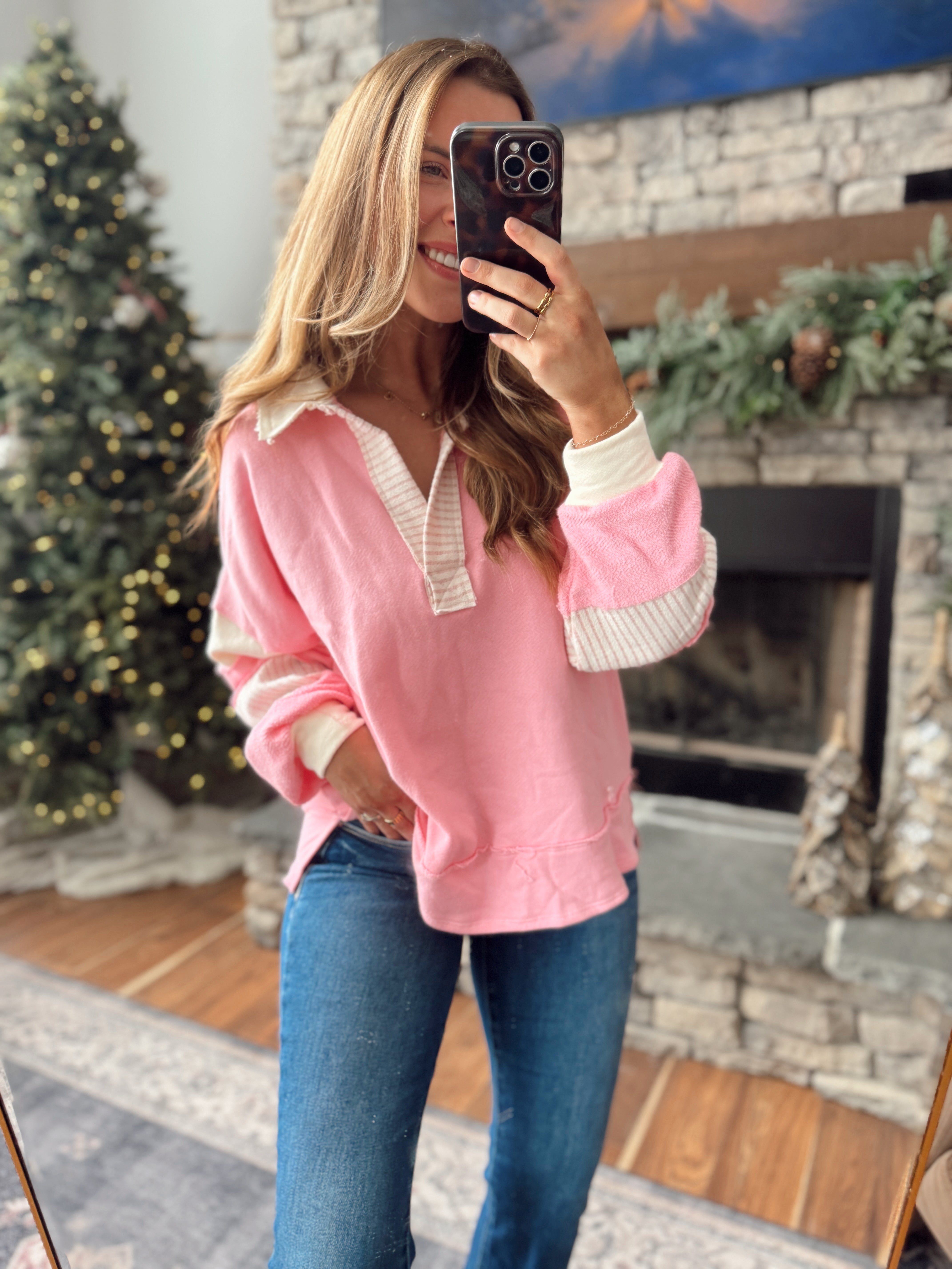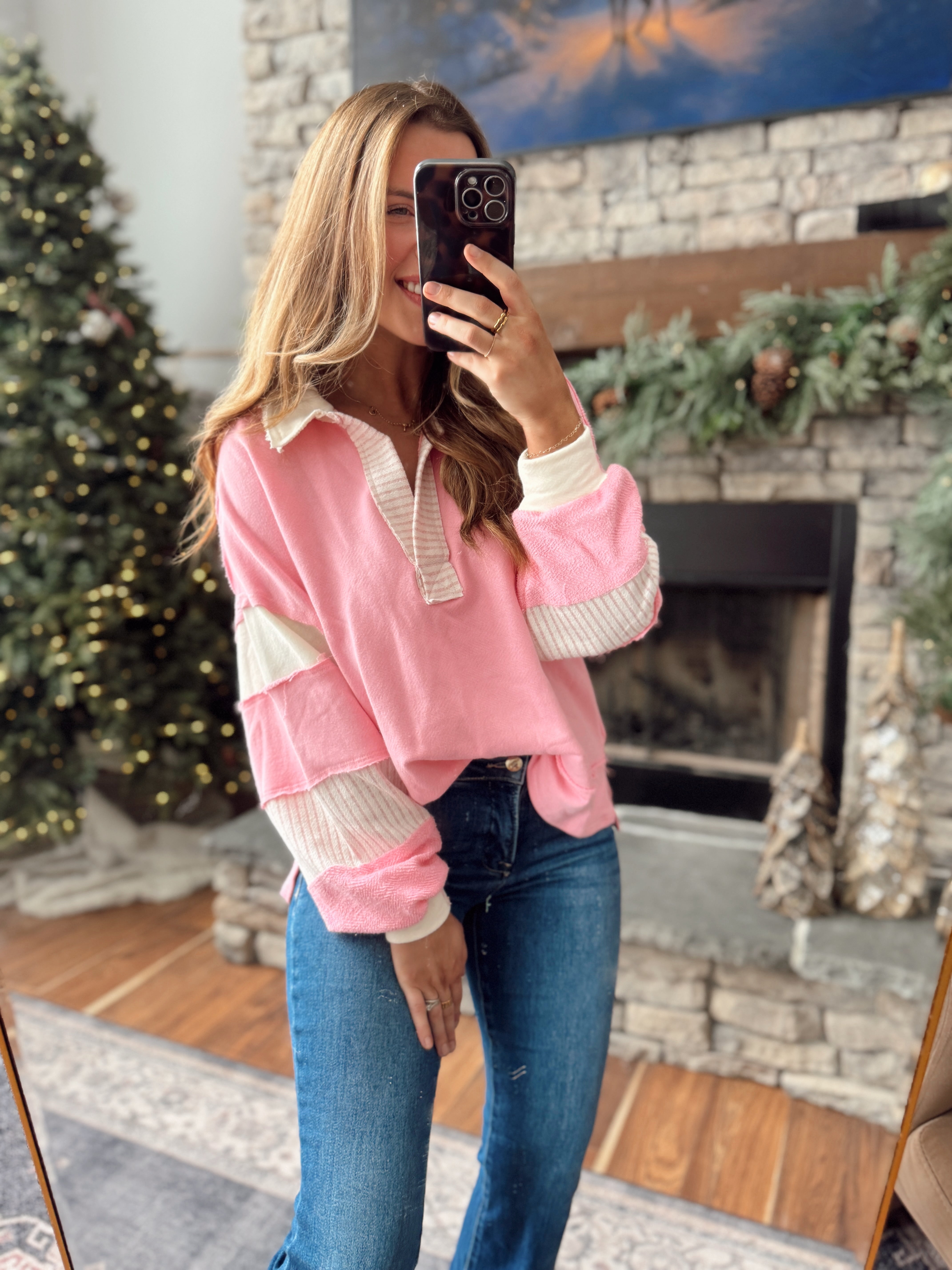 Slow Motion Pink/ Cream Colorblock Pullover