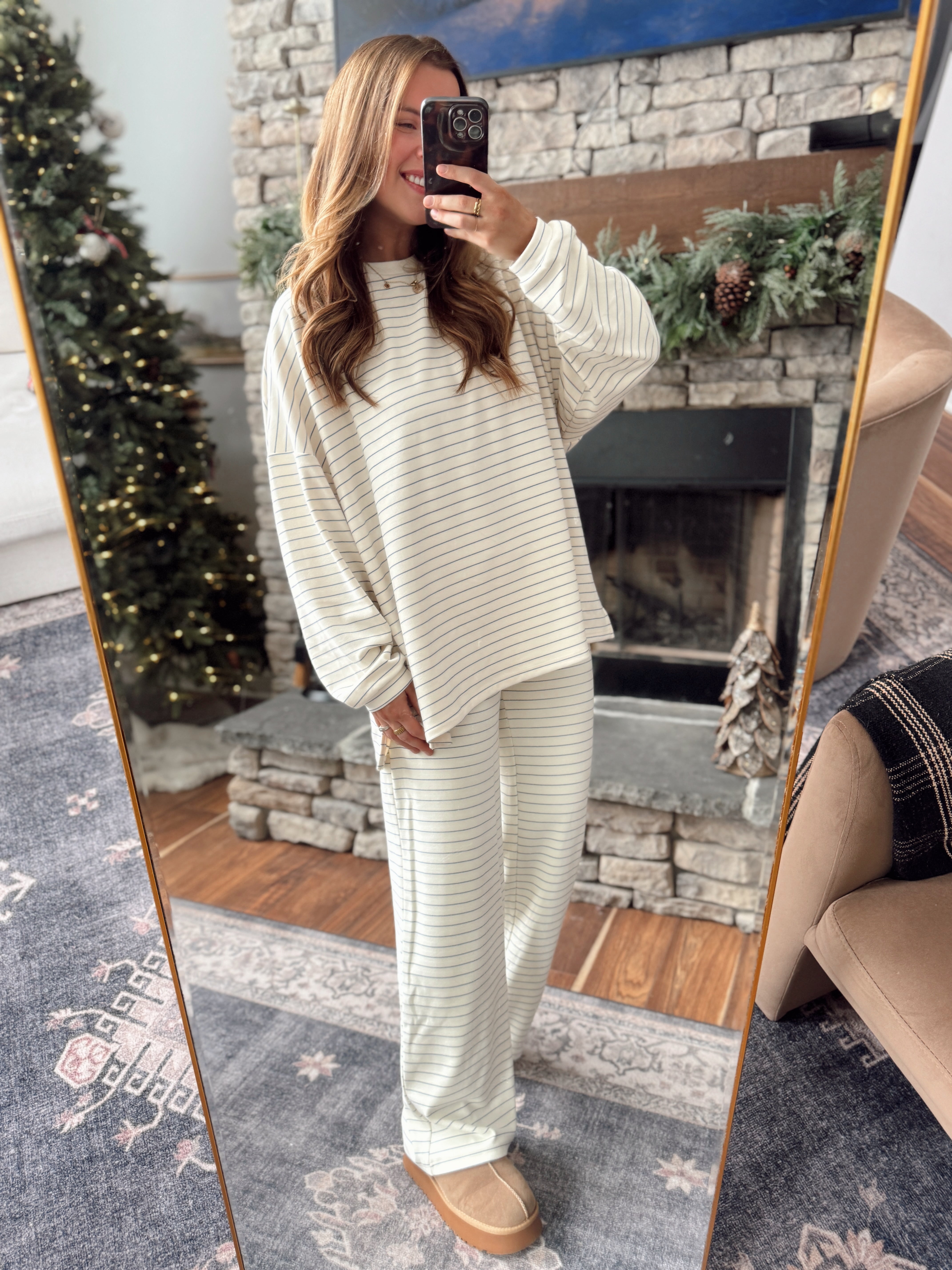 SO soft and cozy! This relaxed striped top is made for lounging or casual days out. Oversized fit for that effortless, comfy vibe — pair it with the matching pants or your favorite leggings.