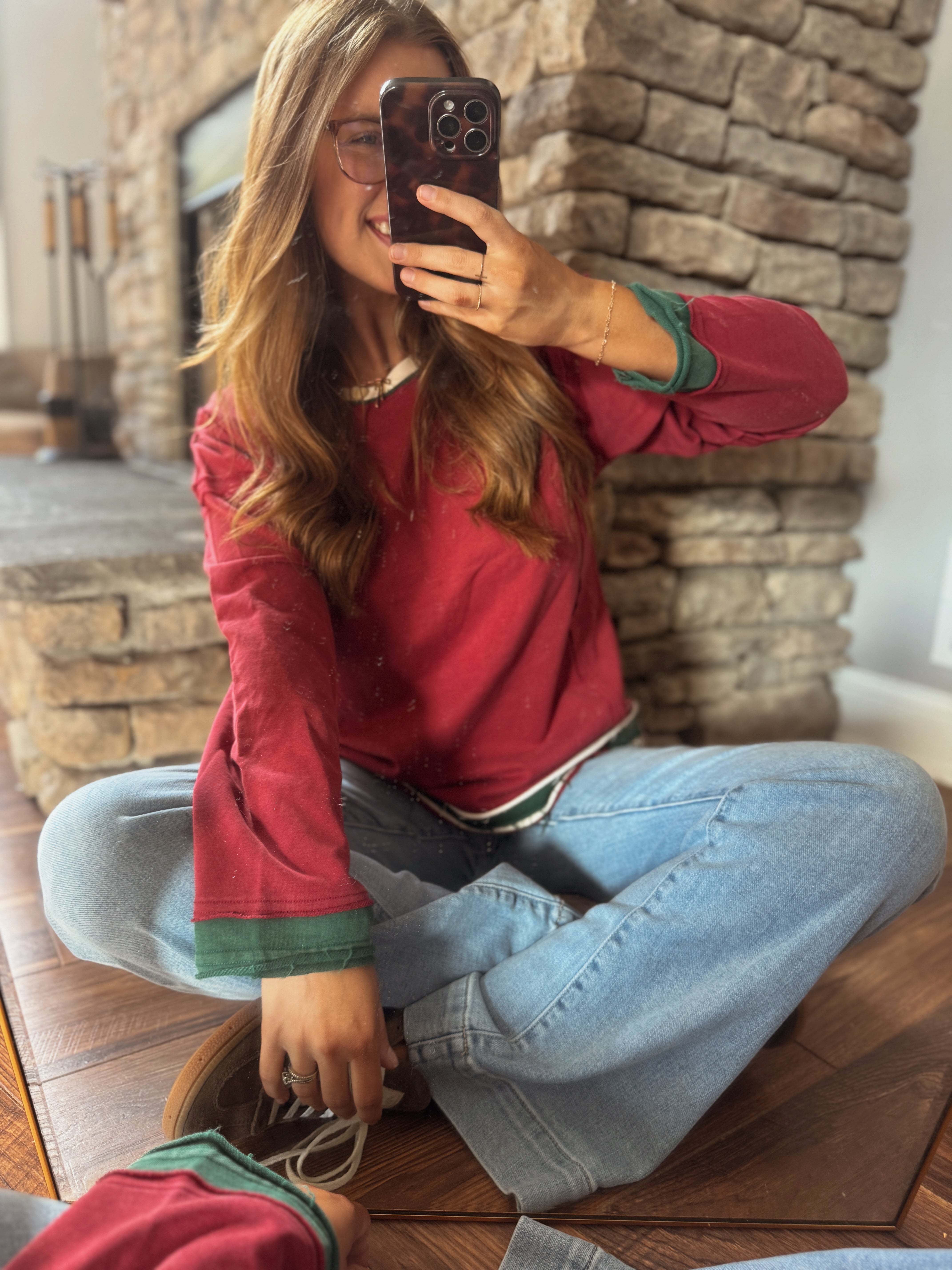 Dark Cherry Naomi Soft Ribbed Sweatshirt