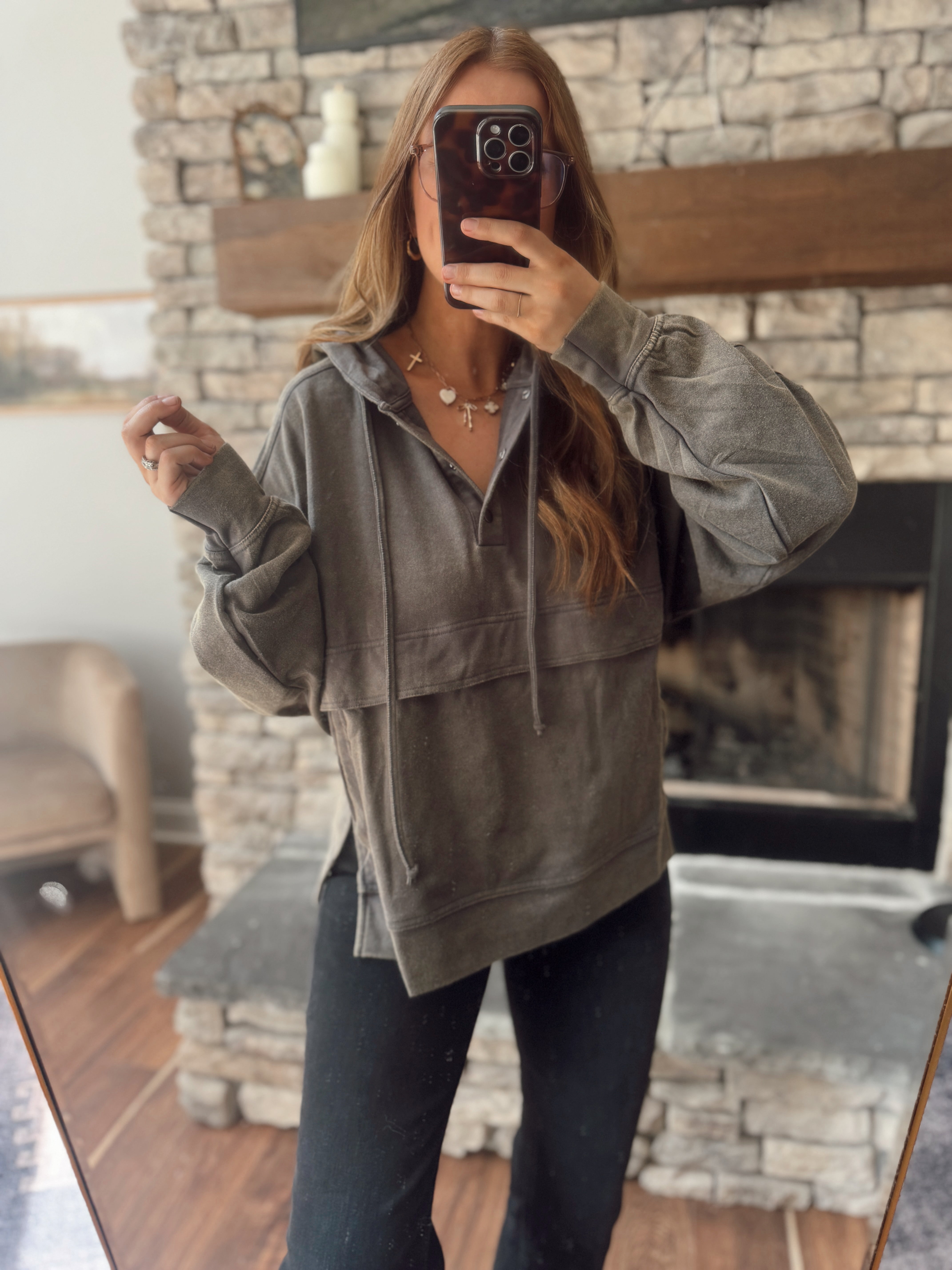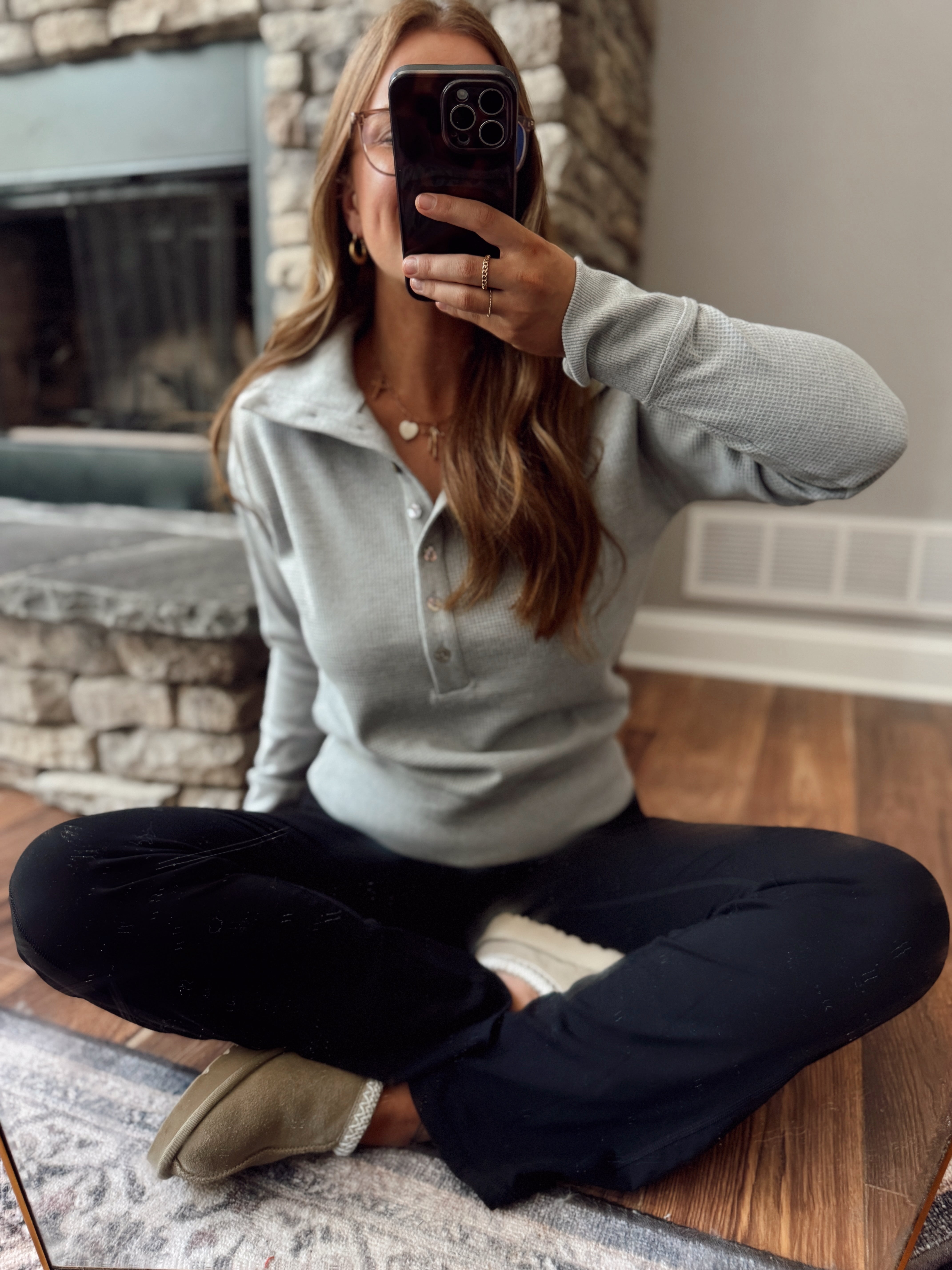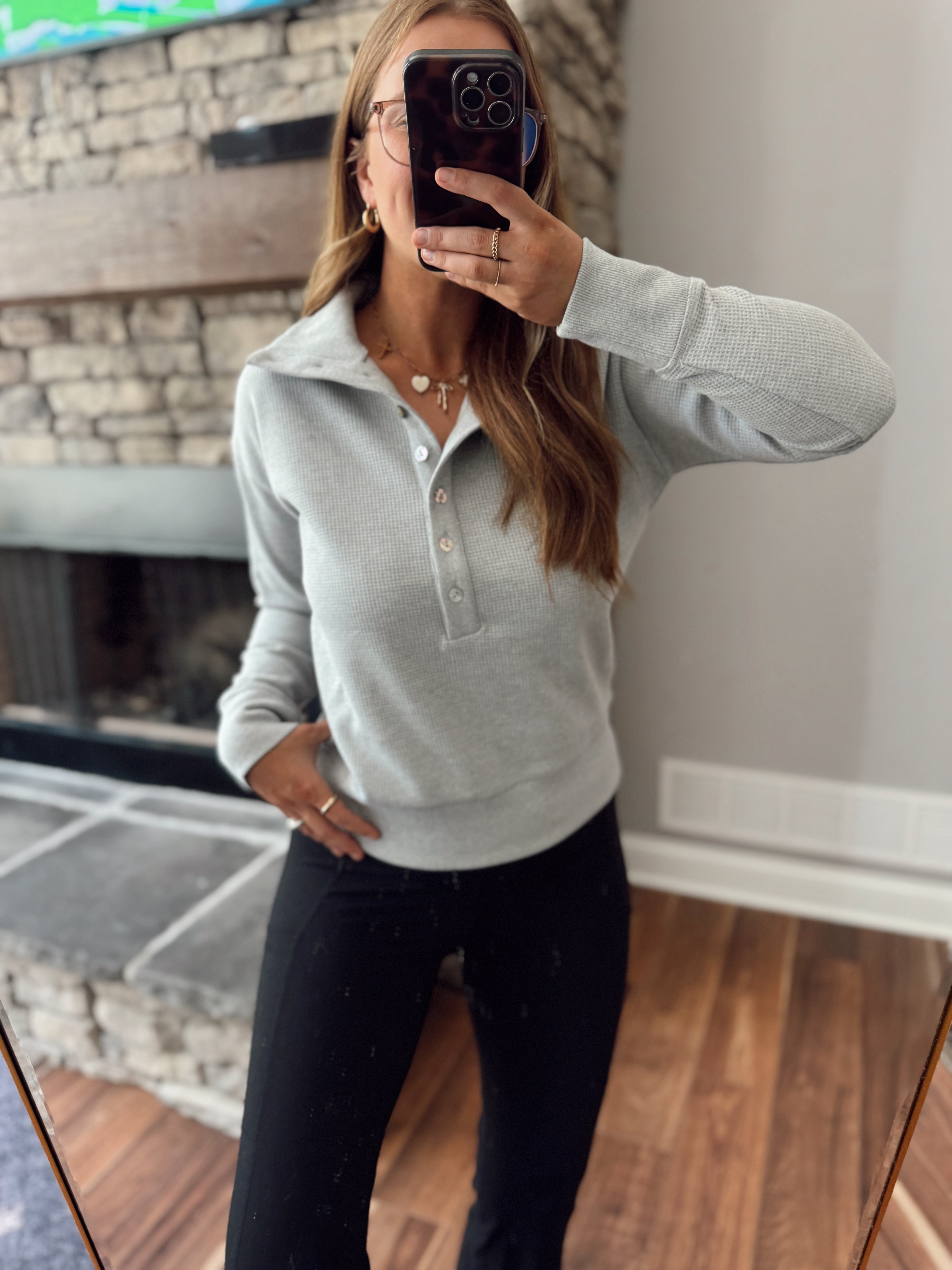 Heather Gray Anslie Waffle Knit Half Button Pullover