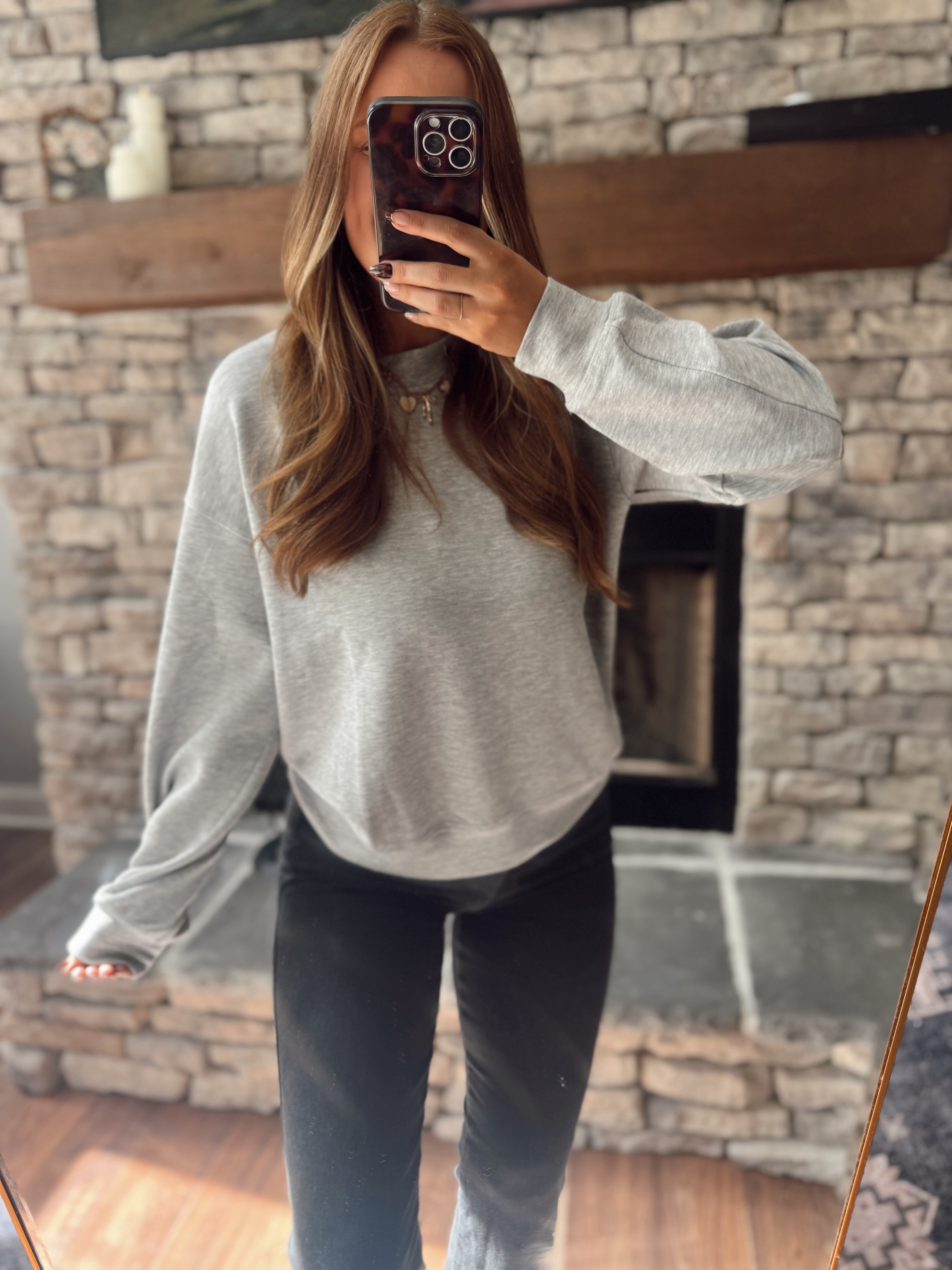 In My Athletic Era LT. Heather Grey Mock Neck Crew