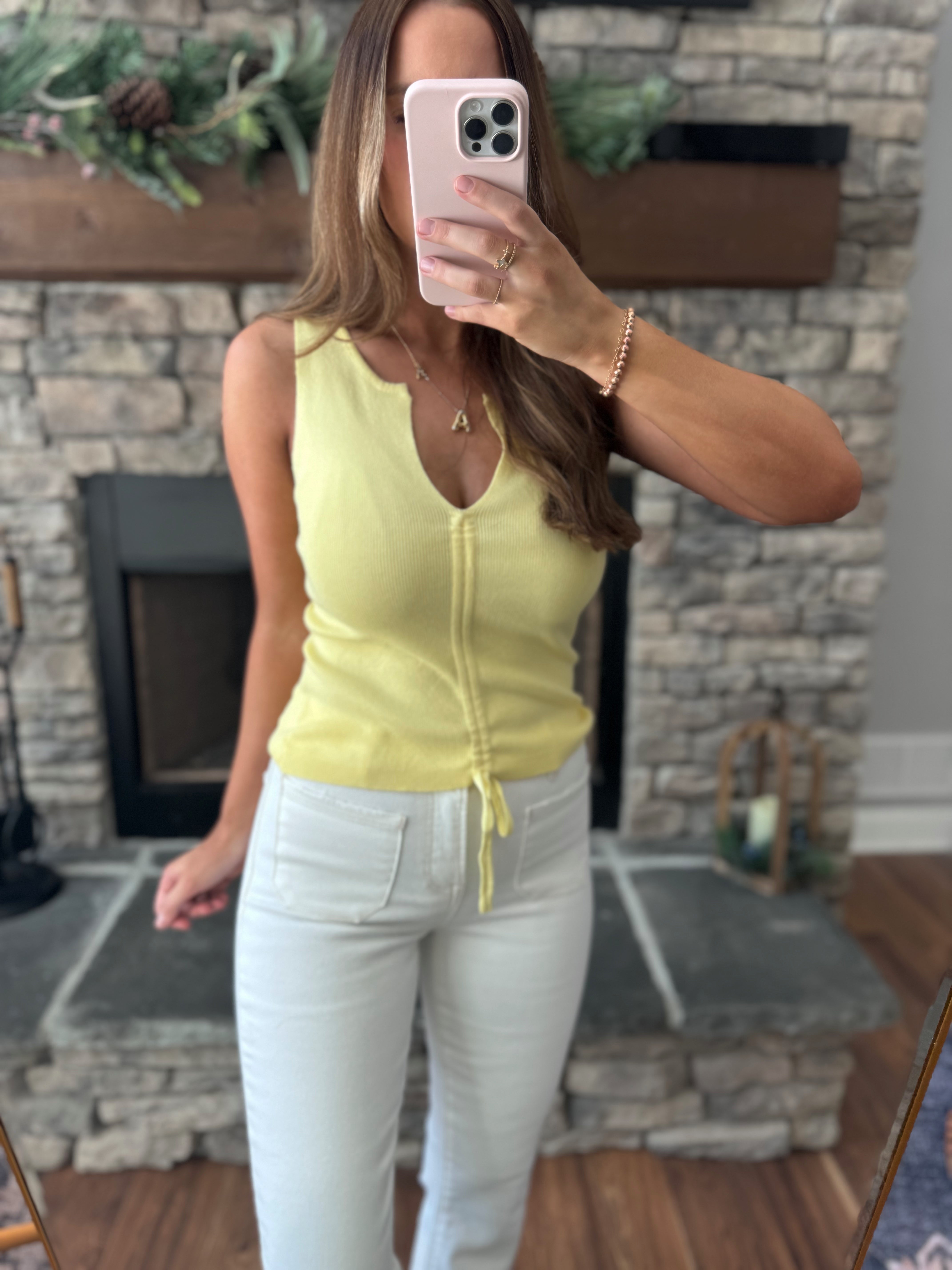 Andie Lemon Ruched Drawstring V-Neck Tank