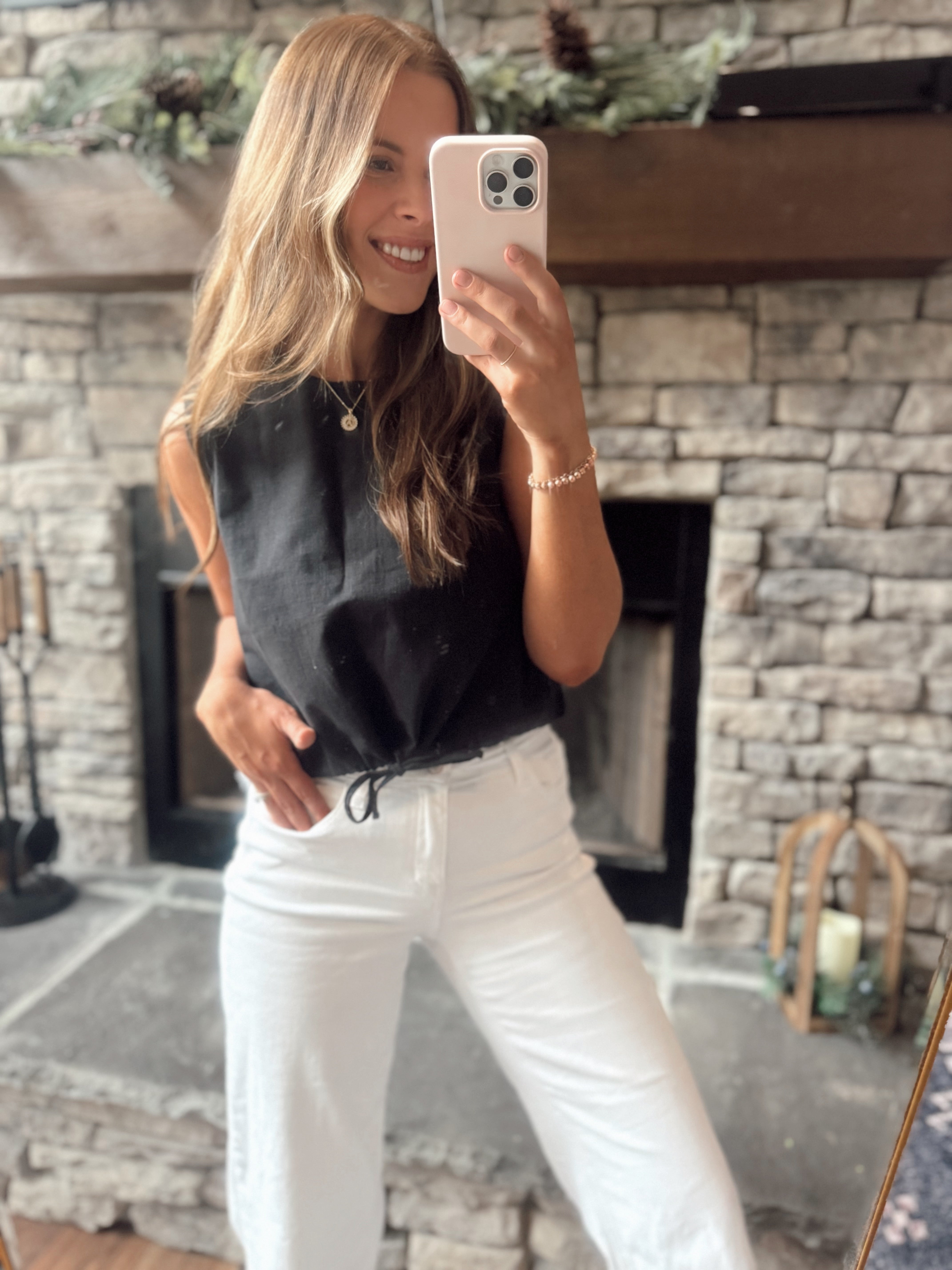 Anika Black Linen Bubble Hem Tank Top