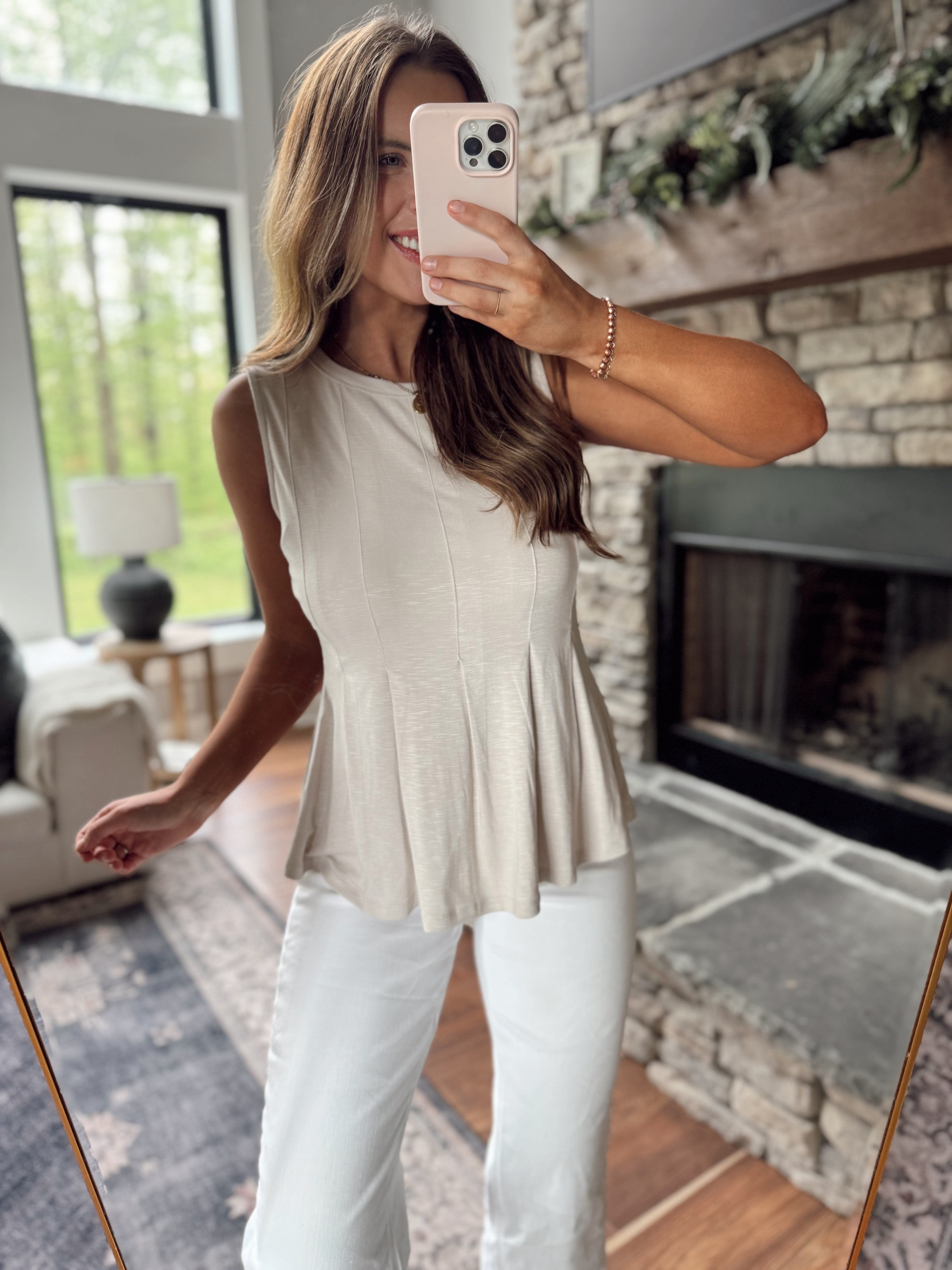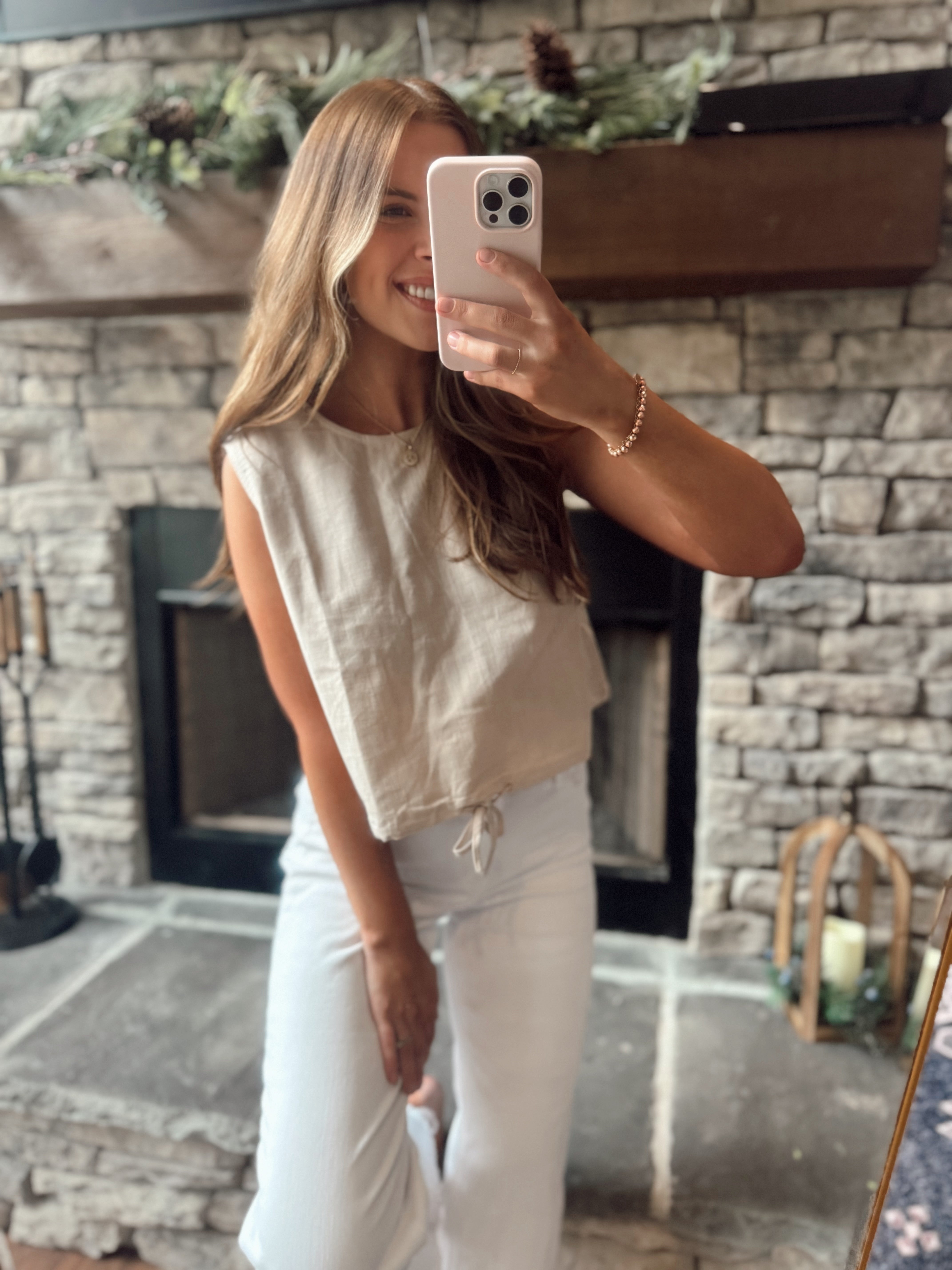 Anika Taupe Linen Bubble Hem Tank Top