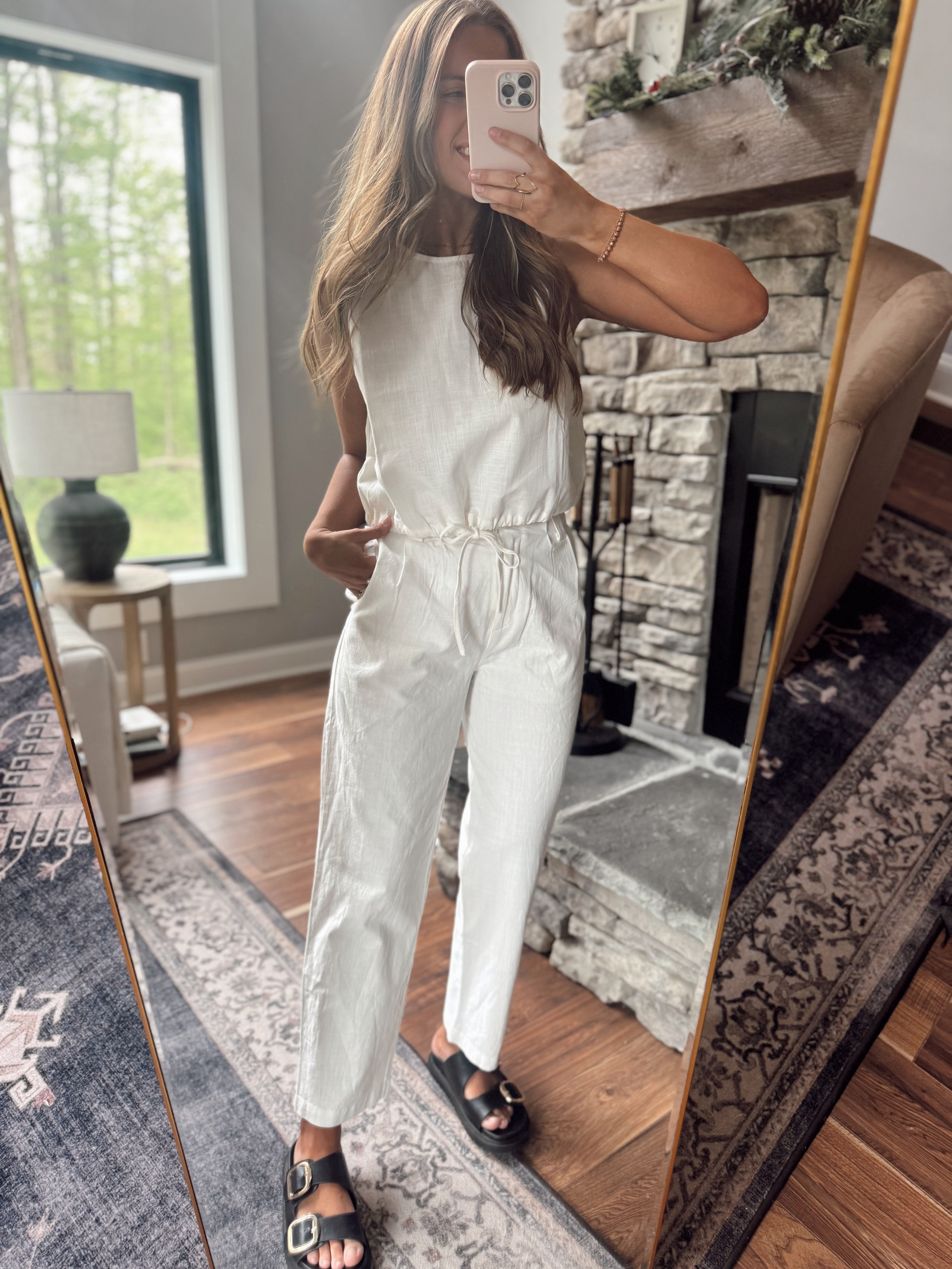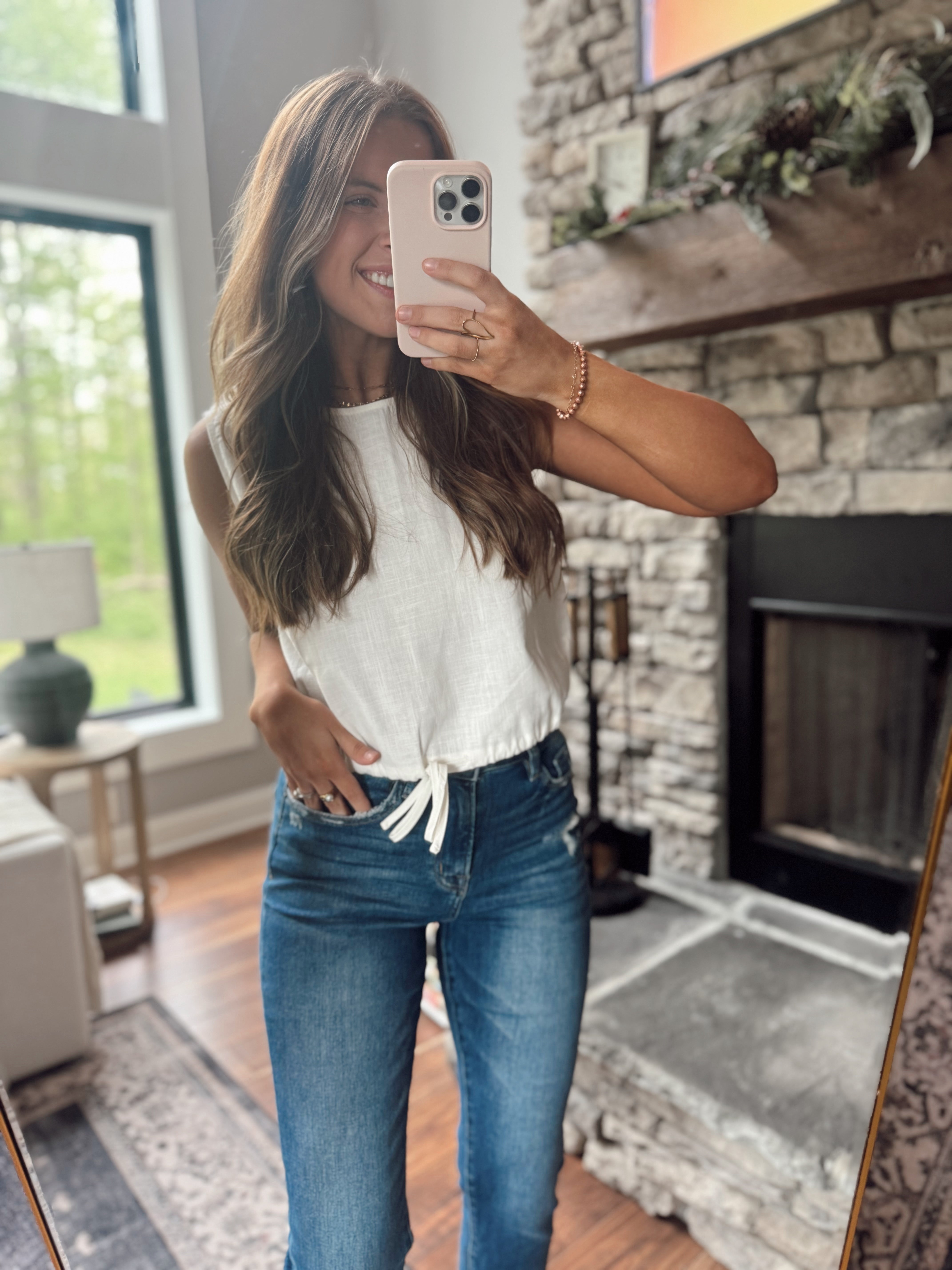 Anika Off White Linen Bubble Hem Tank Top