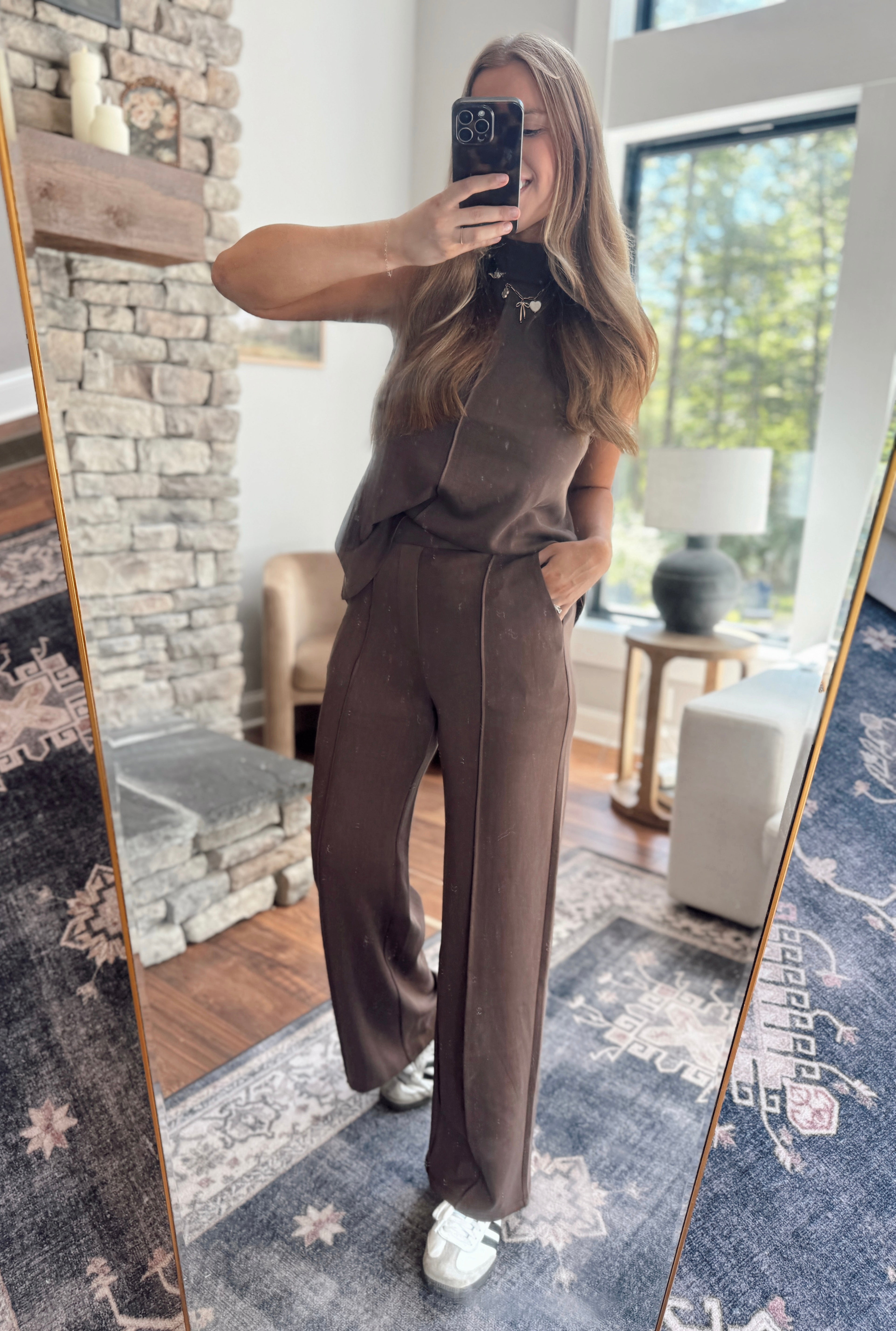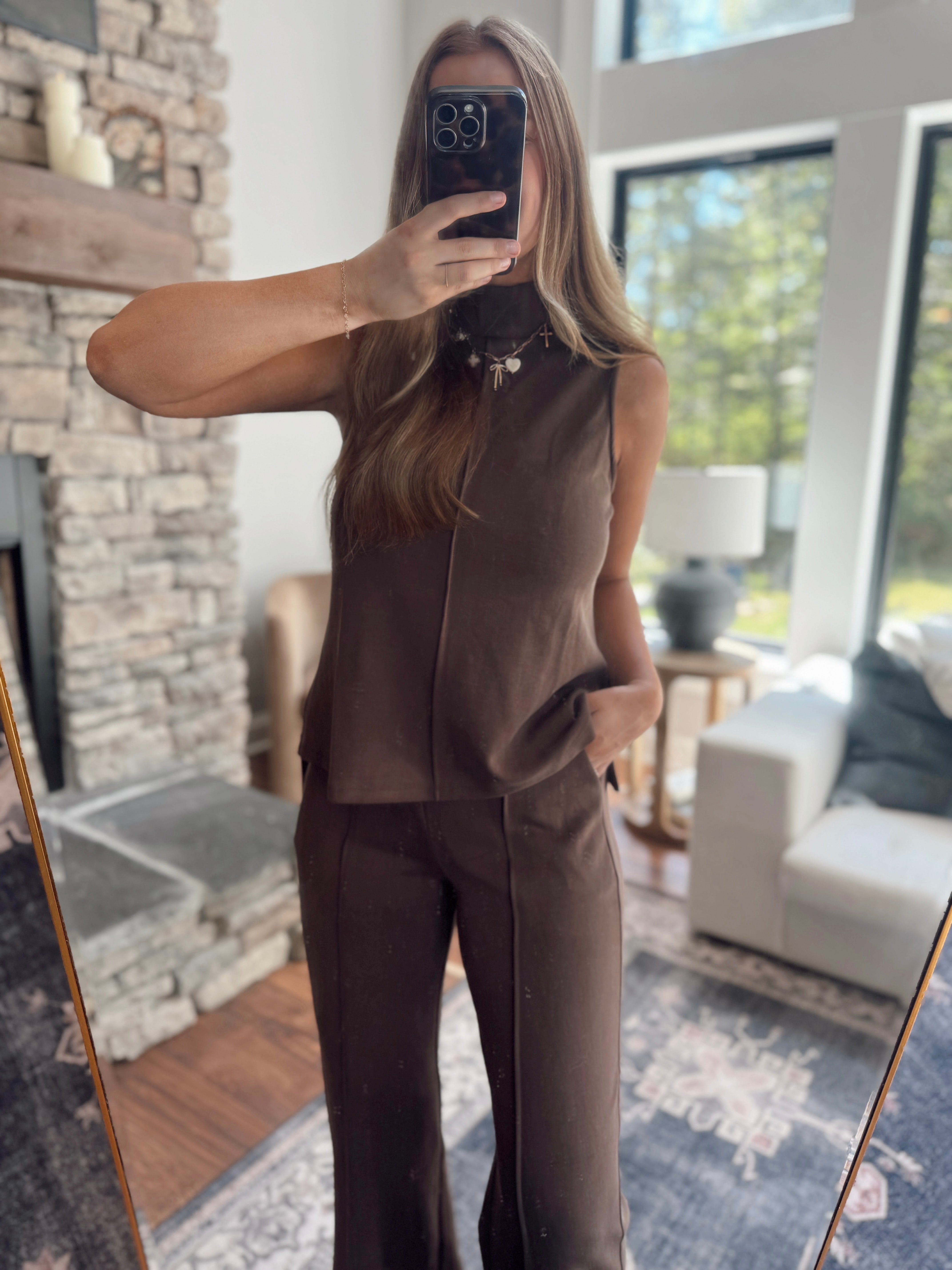 Dark Roast Dahlia Scuba Pintuck A Line Tank