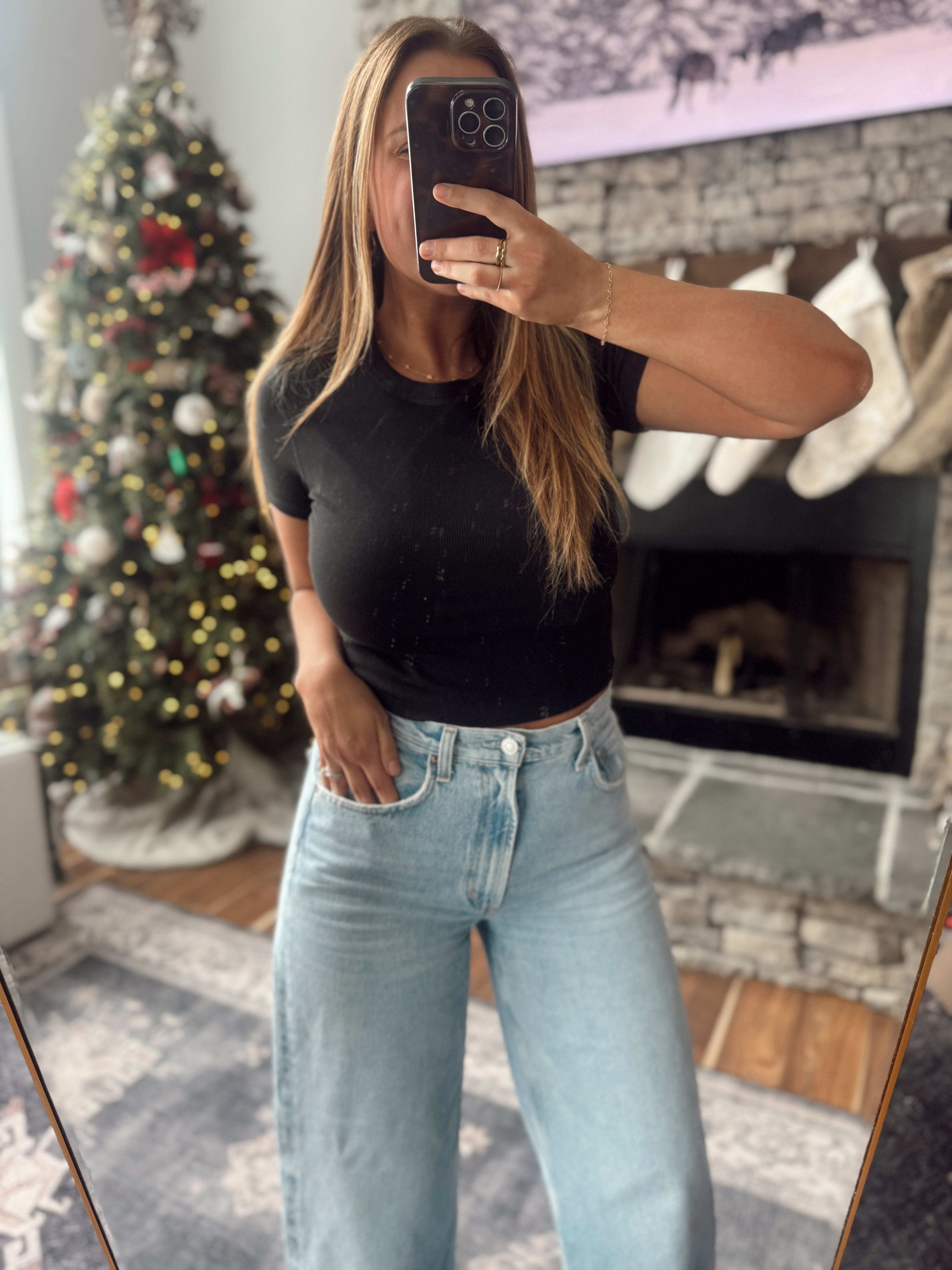 Black Ribbed Relaxed Crop Tee
