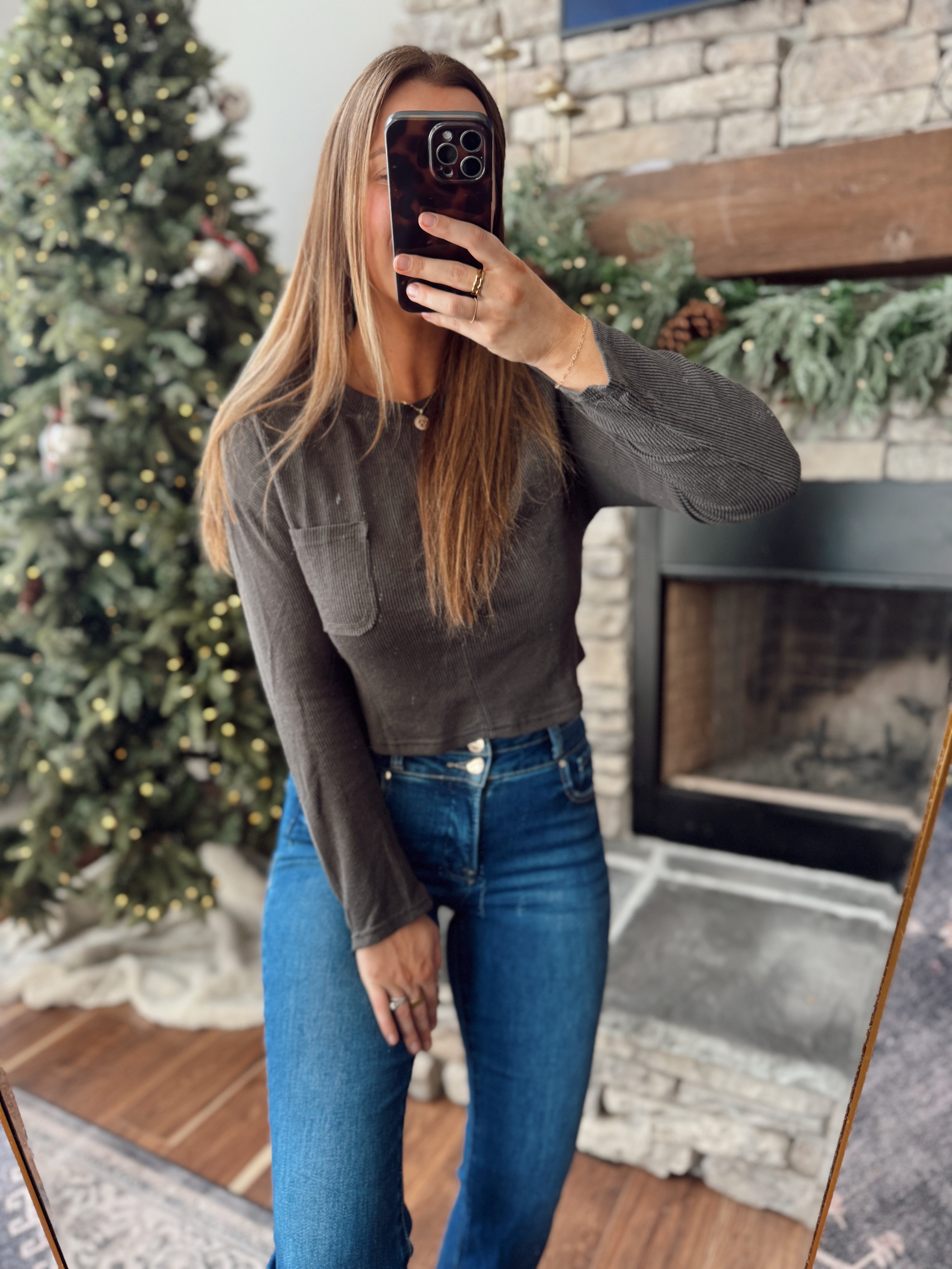Charcoal Cropped Rib Long Sleeve
