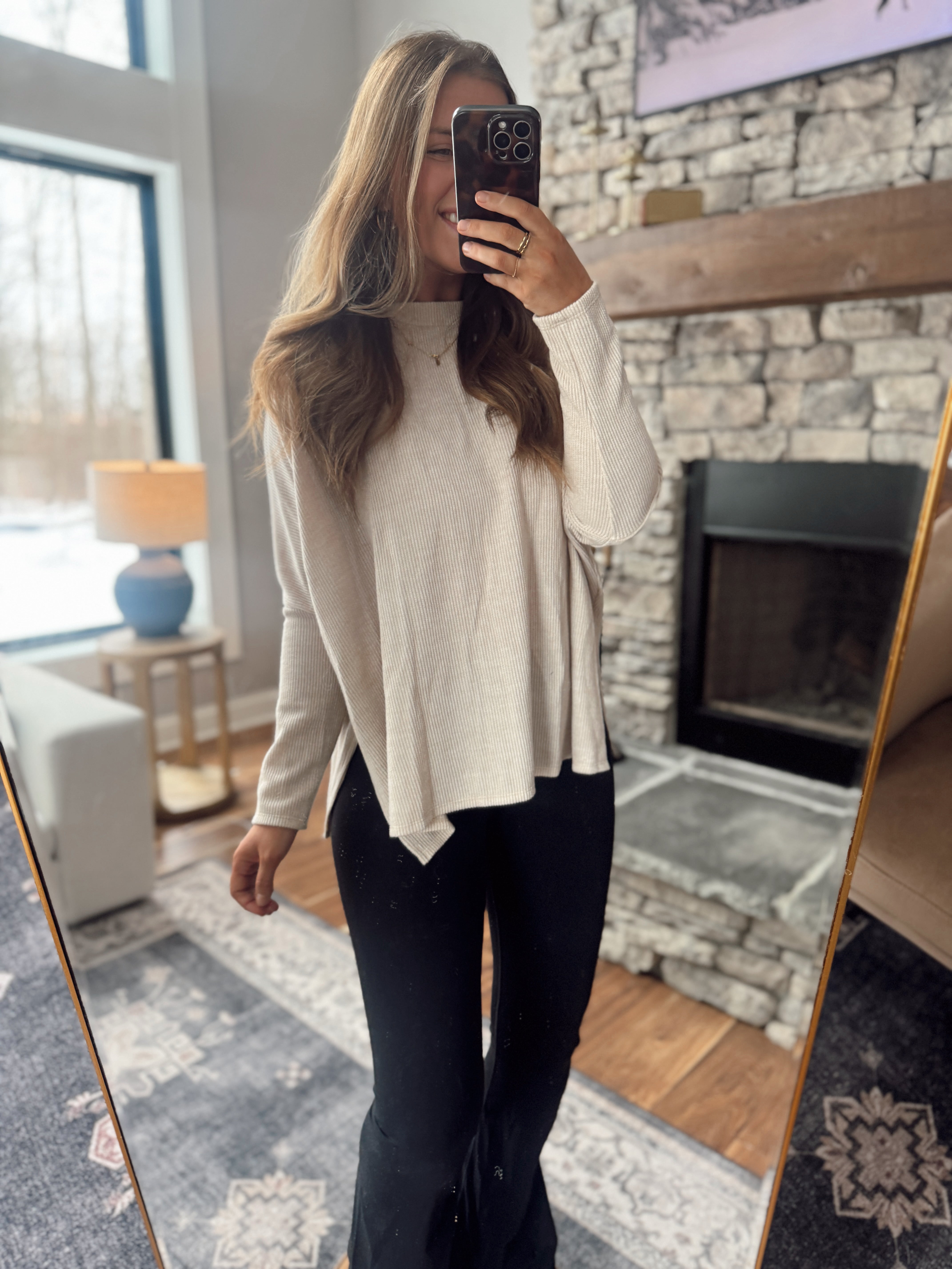 Taupe Summitt Ribbed Dolman Top