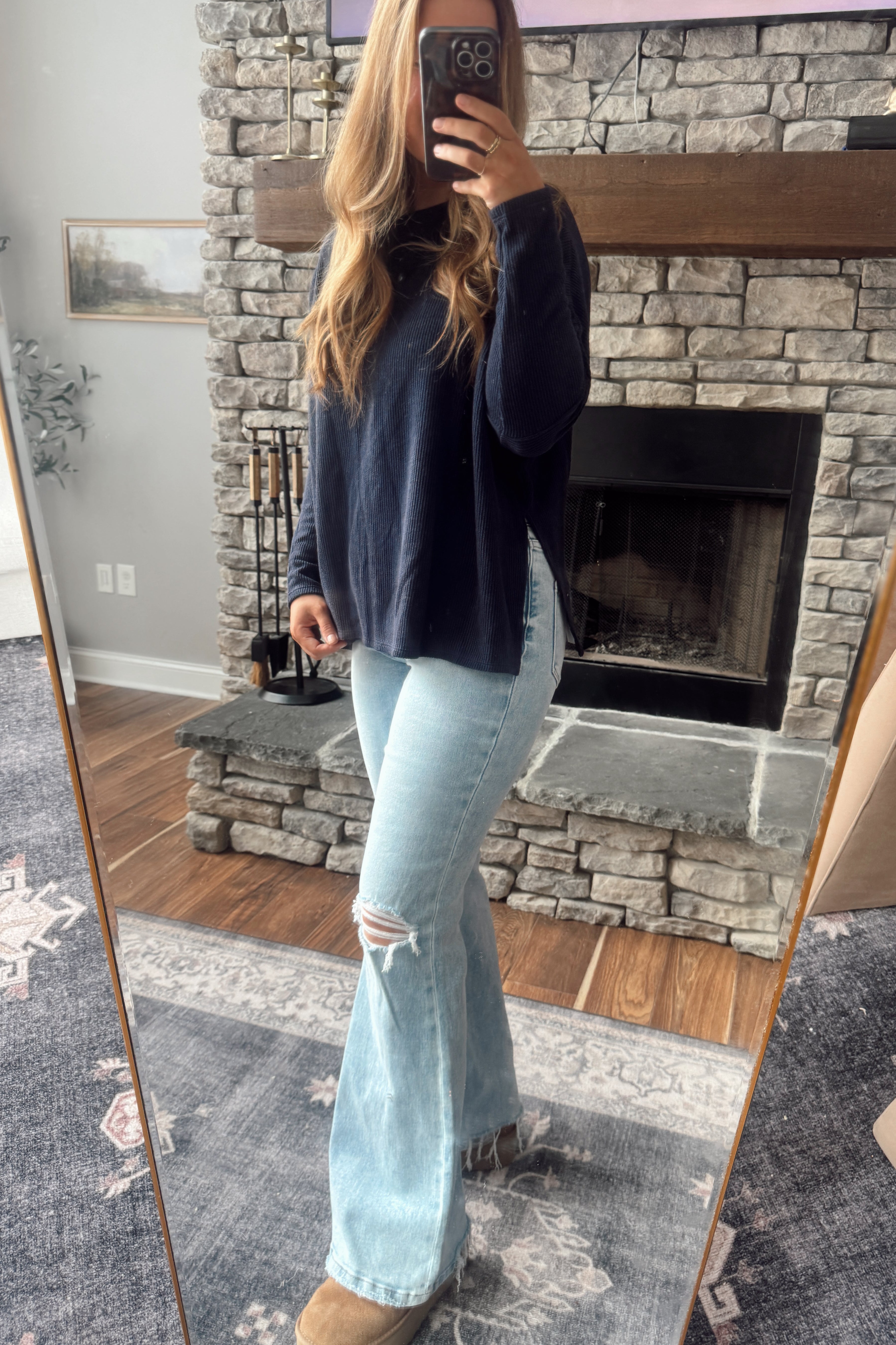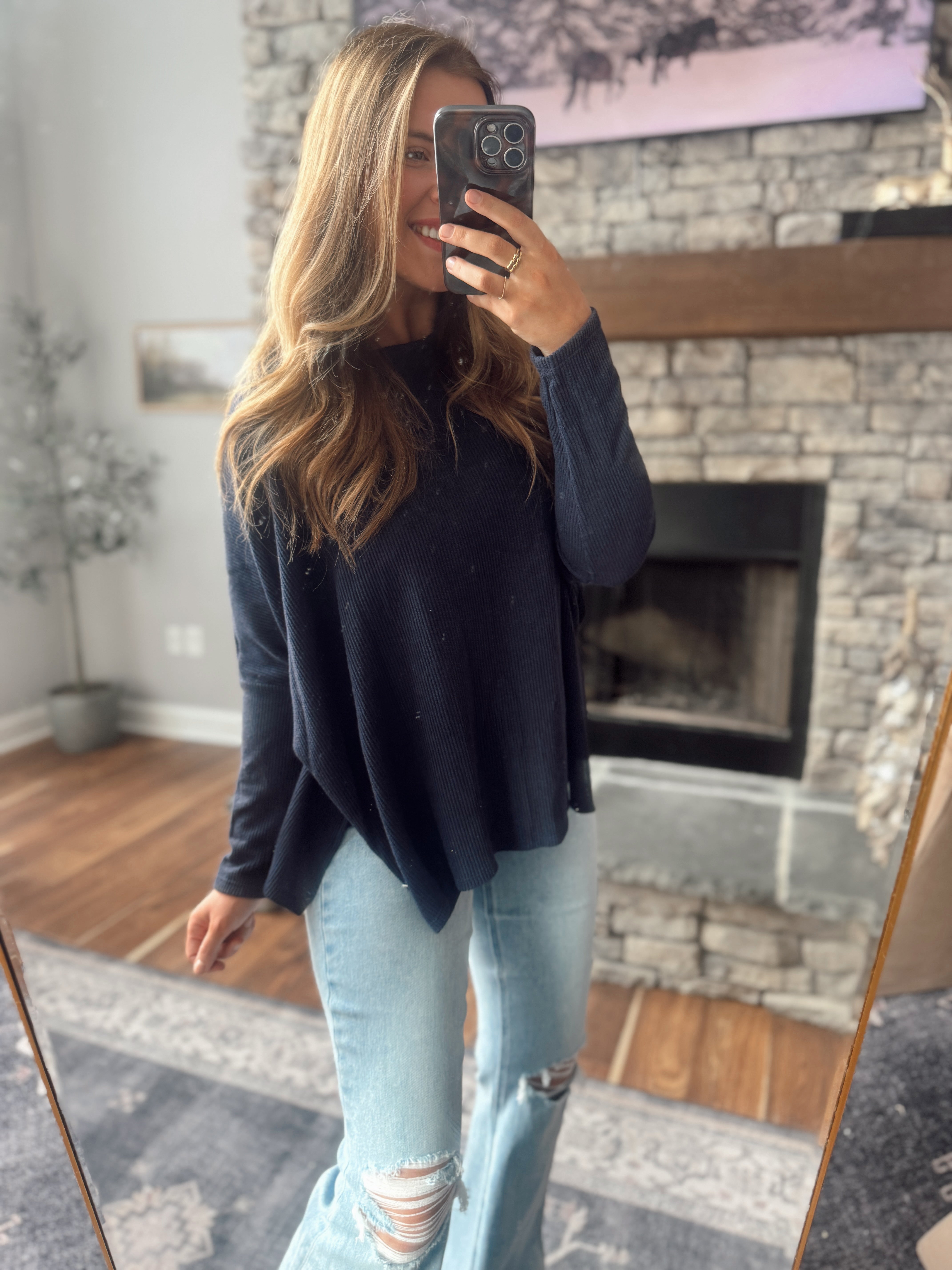 Navy Summitt Ribbed Dolman Top