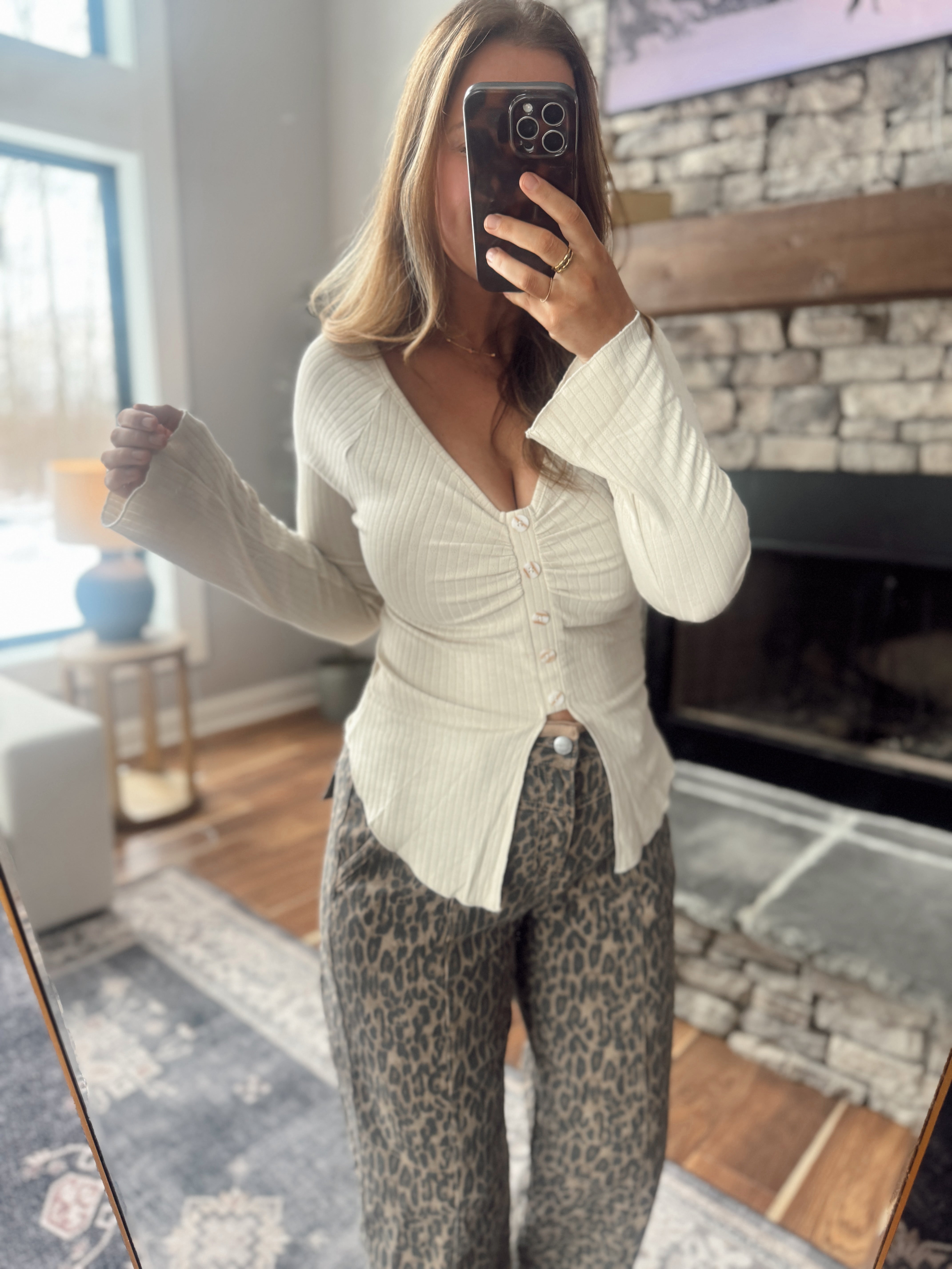 Coconut Milk Pointelle Button Long Sleeve