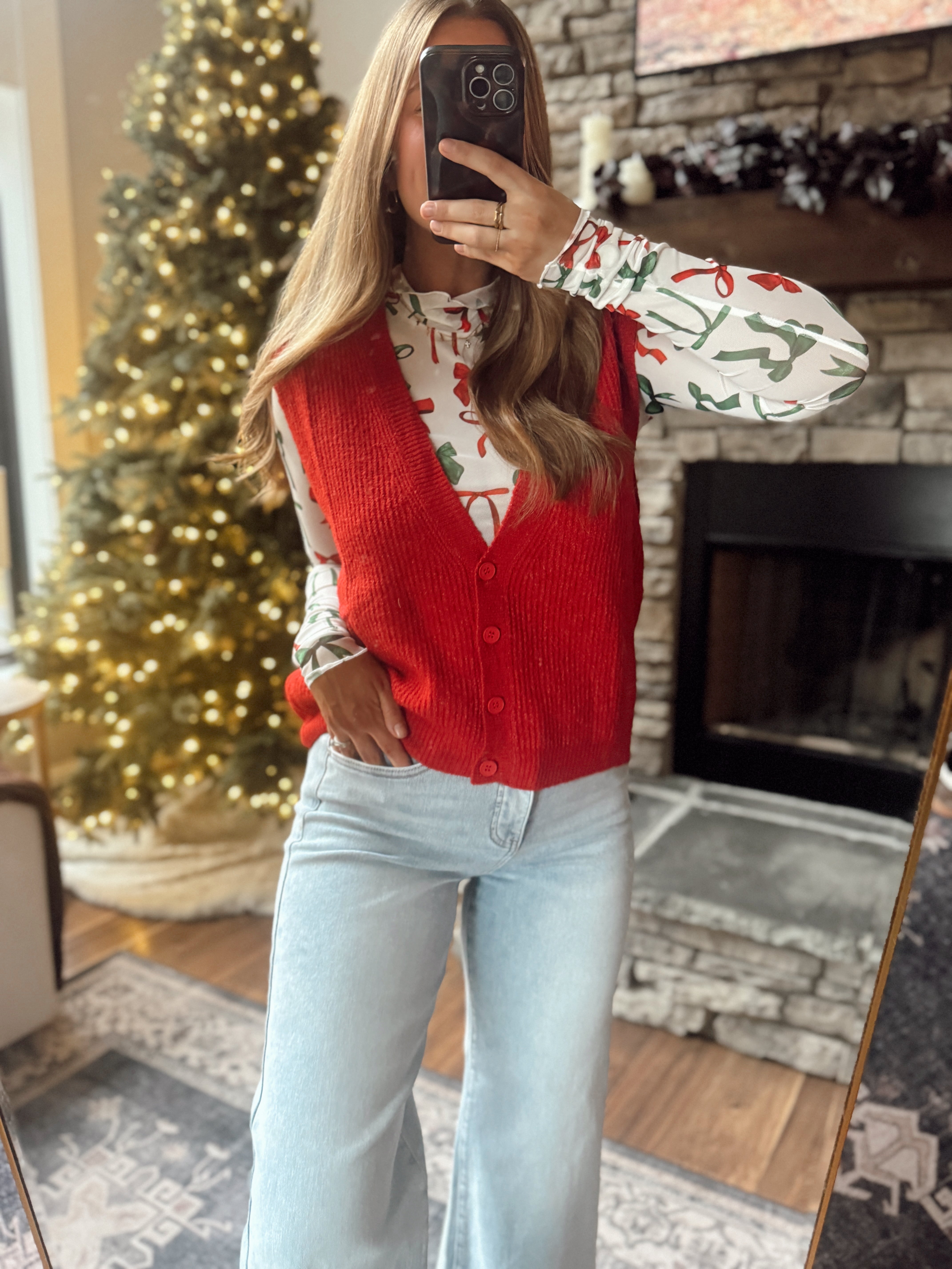 Christmas Midnight Bow Keigan Mesh Top