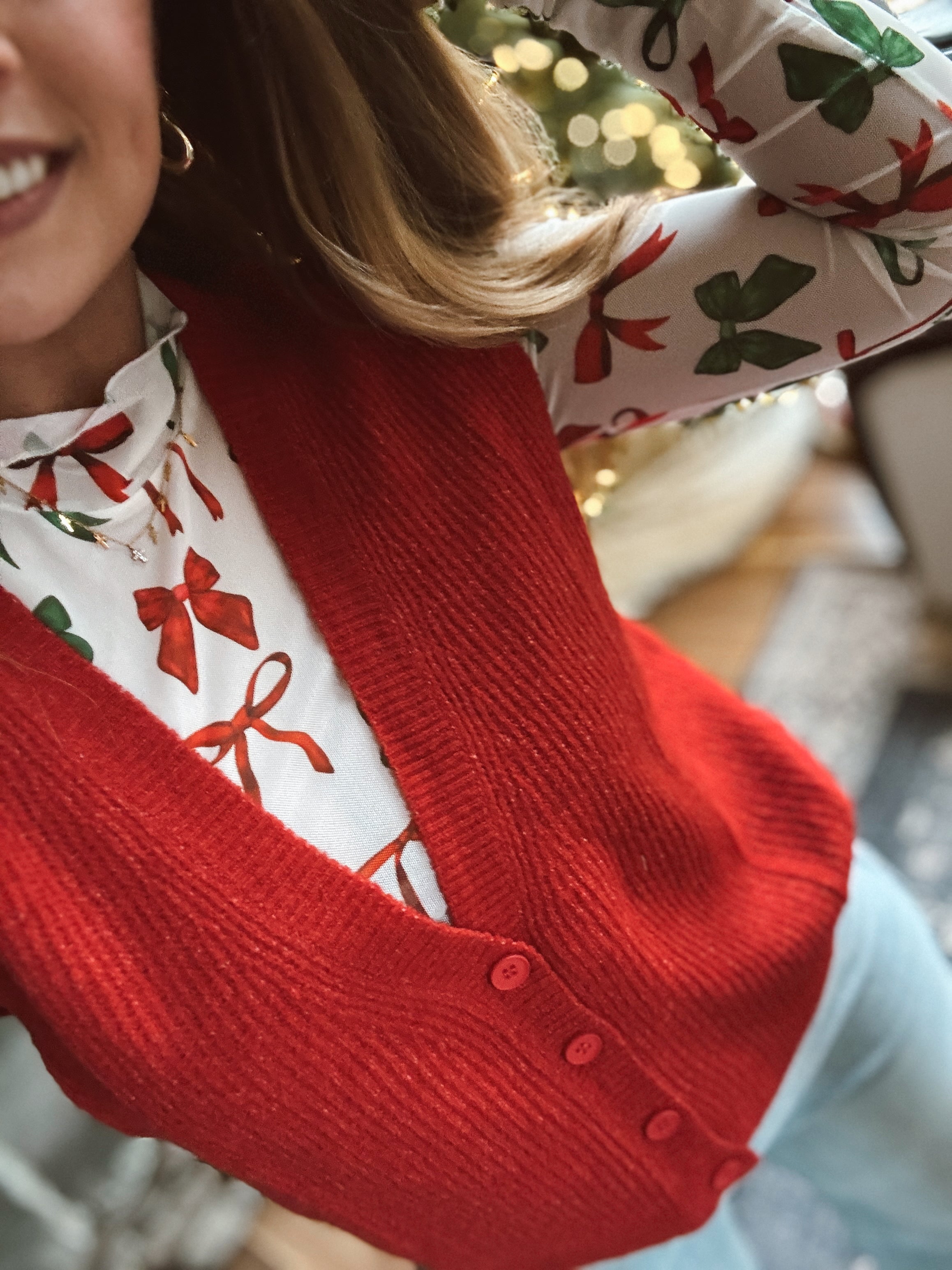 - Christmas bow print mesh