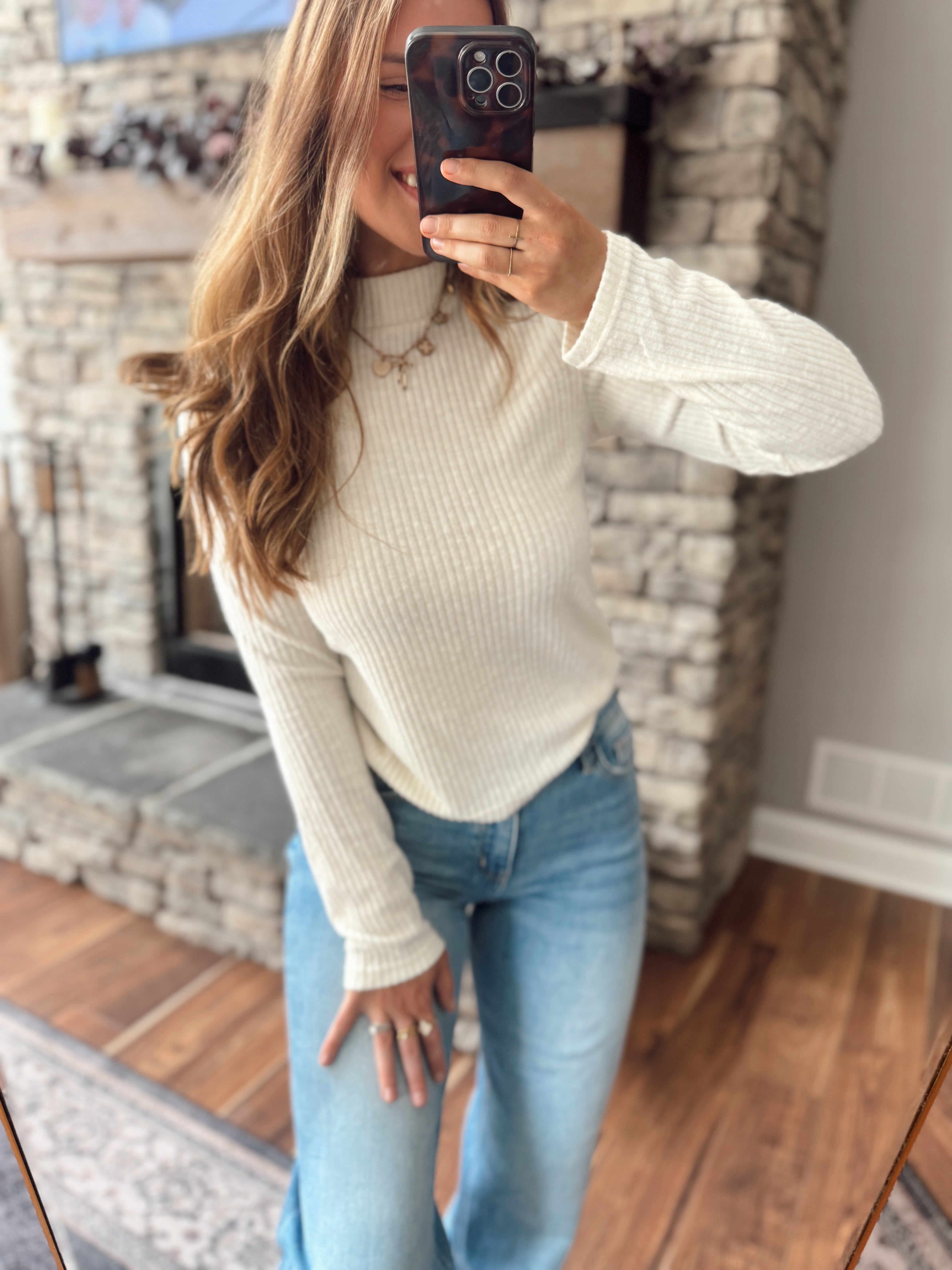 Cream Cloudline Ribbed Mock Neck Long Sleeve