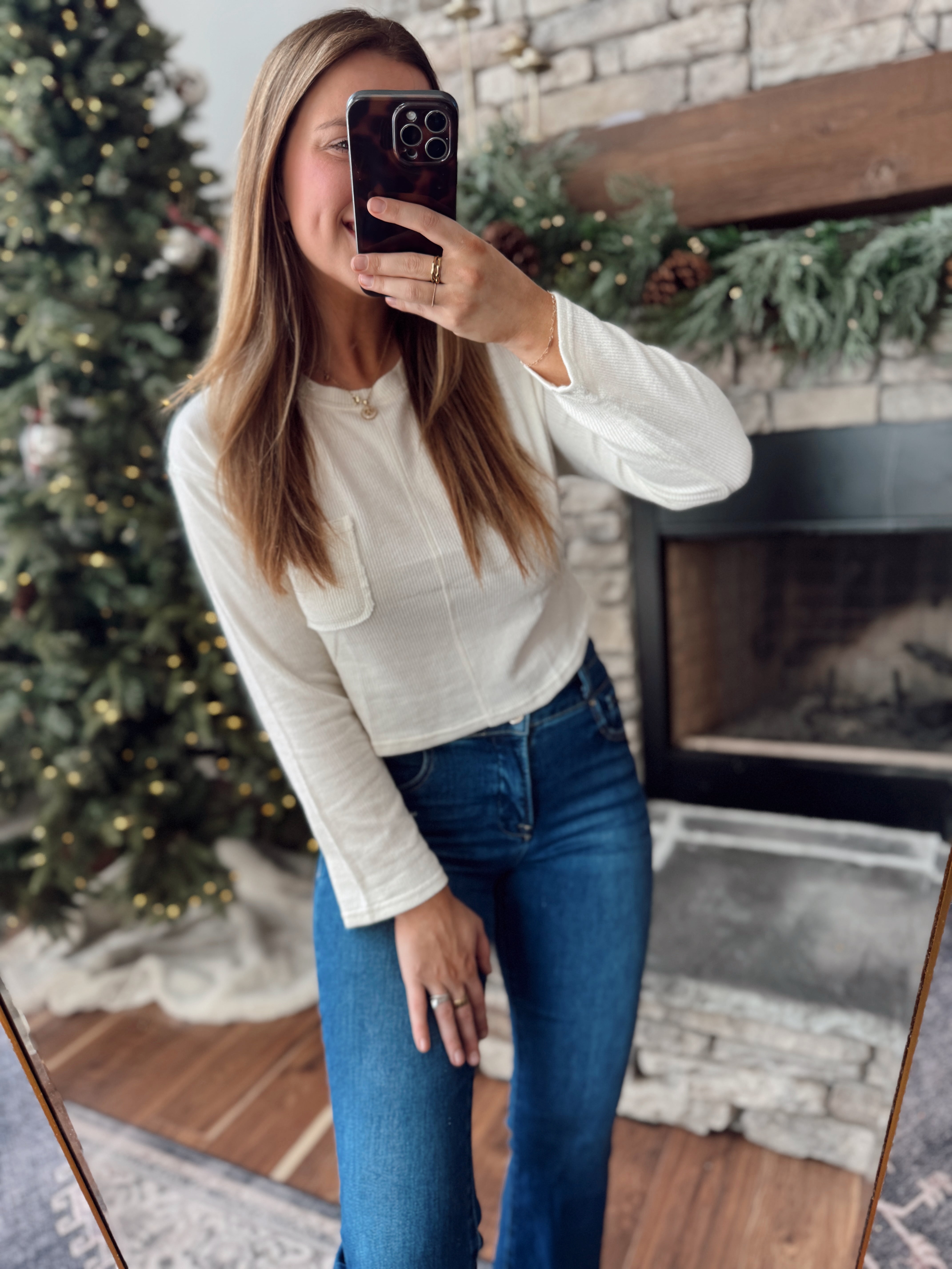 Your new everyday favorite — this soft waffle knit top is the perfect mix of casual and cute! Features a front pocket detail, relaxed fit, and lightweight fabric that’s great for layering or lounging. Comes in multiple neutral colors you’ll want in rotation all season long!