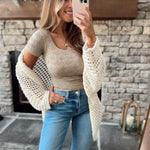 Taupe Seamless Jacquard Scoop Neck Tee IN STORE