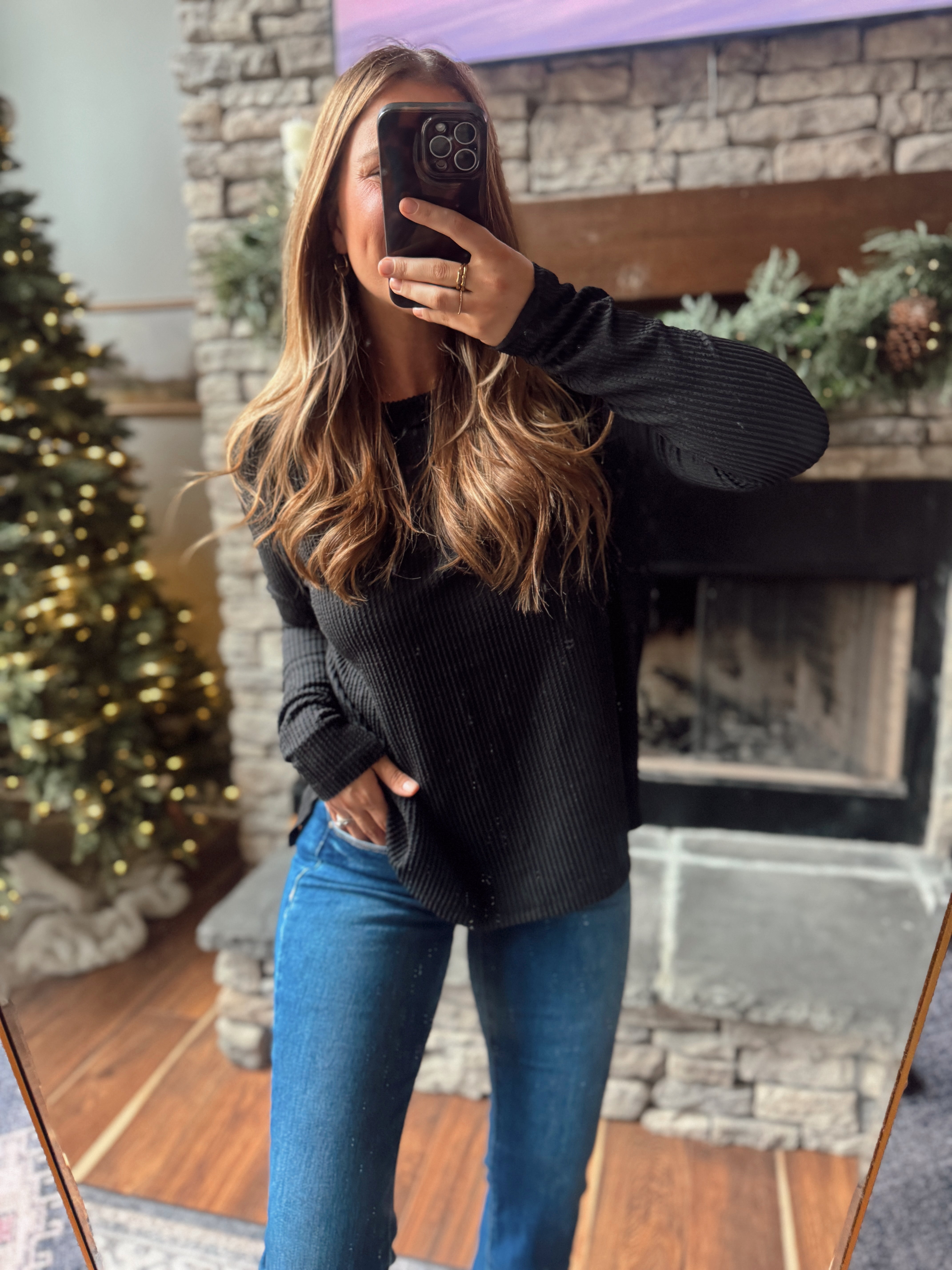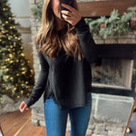 Simple, soft, and totally effortless — this waffle knit long sleeve is your new layering essential. The relaxed silhouette and textured fabric give it that cozy, laid-back feel while keeping it easy to style with denim or leggings.