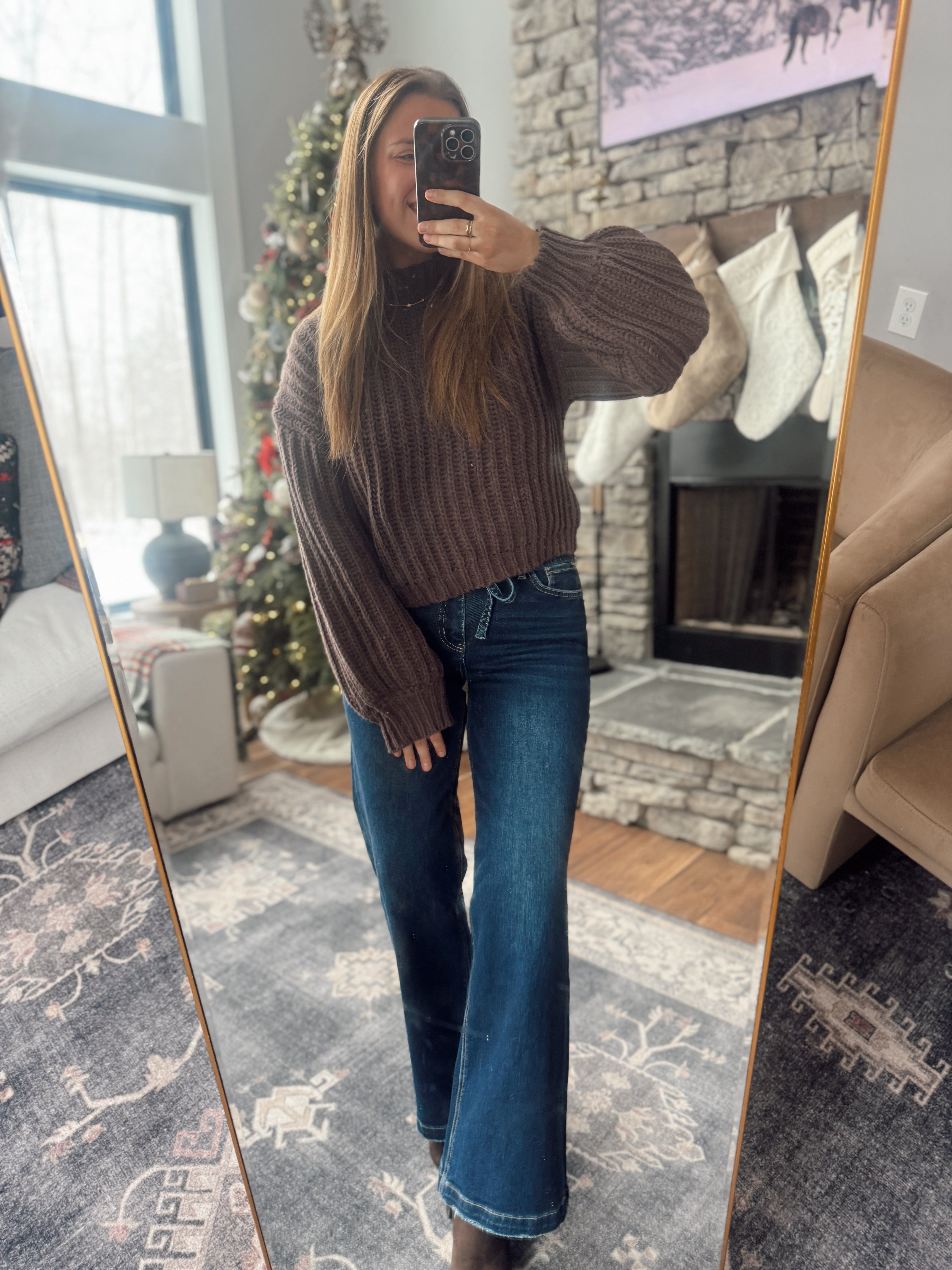 A super soft, cozy staple with elevated texture. This chunky knit sweater features a relaxed fit and statement balloon sleeves for an effortlessly flattering, wear-everywhere look.