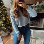 Dusty Blue Drop Shoulder Crop Top