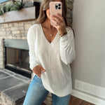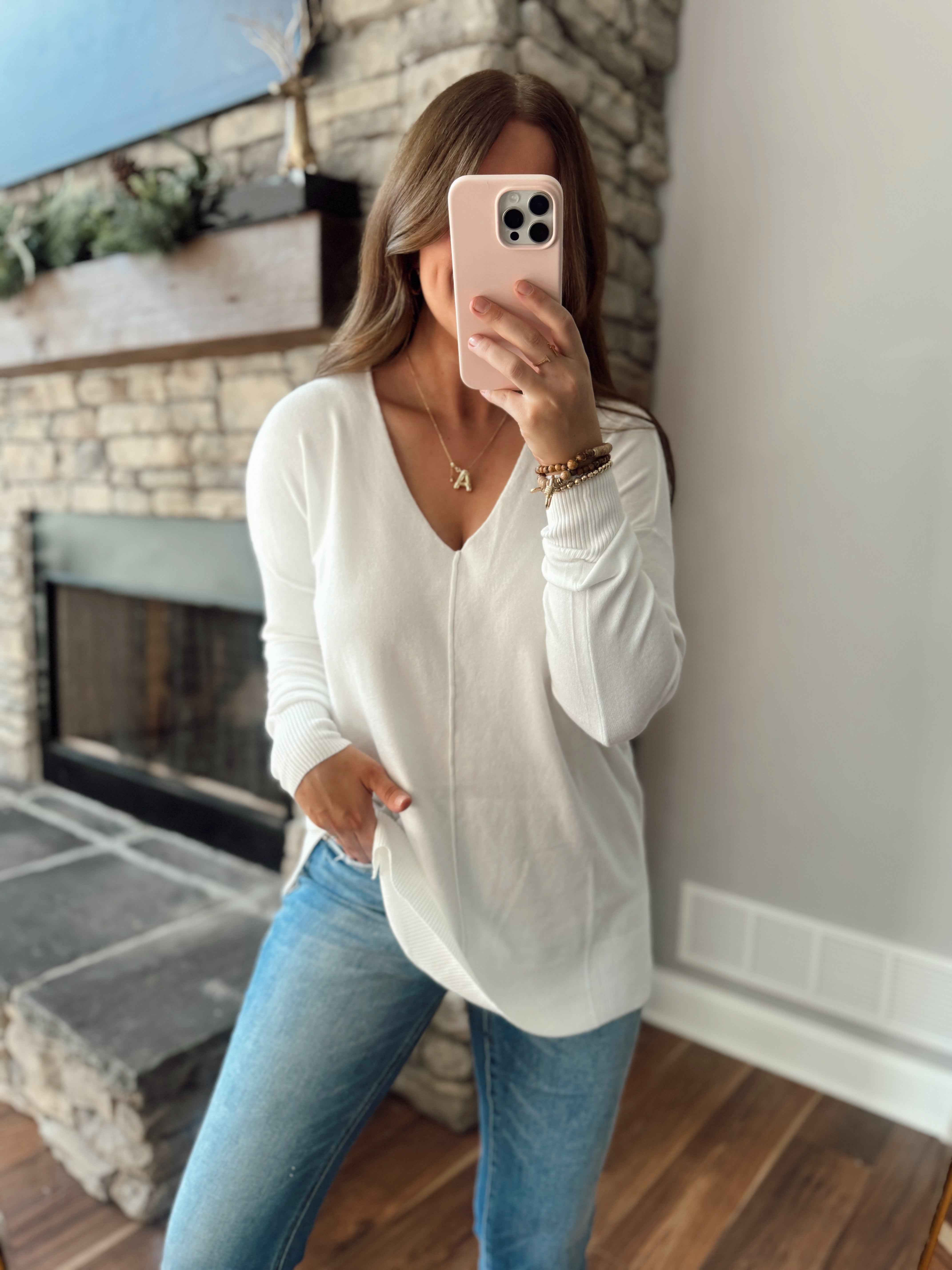 Ivory Carly Exposed Front Seam V-Neck Sweater