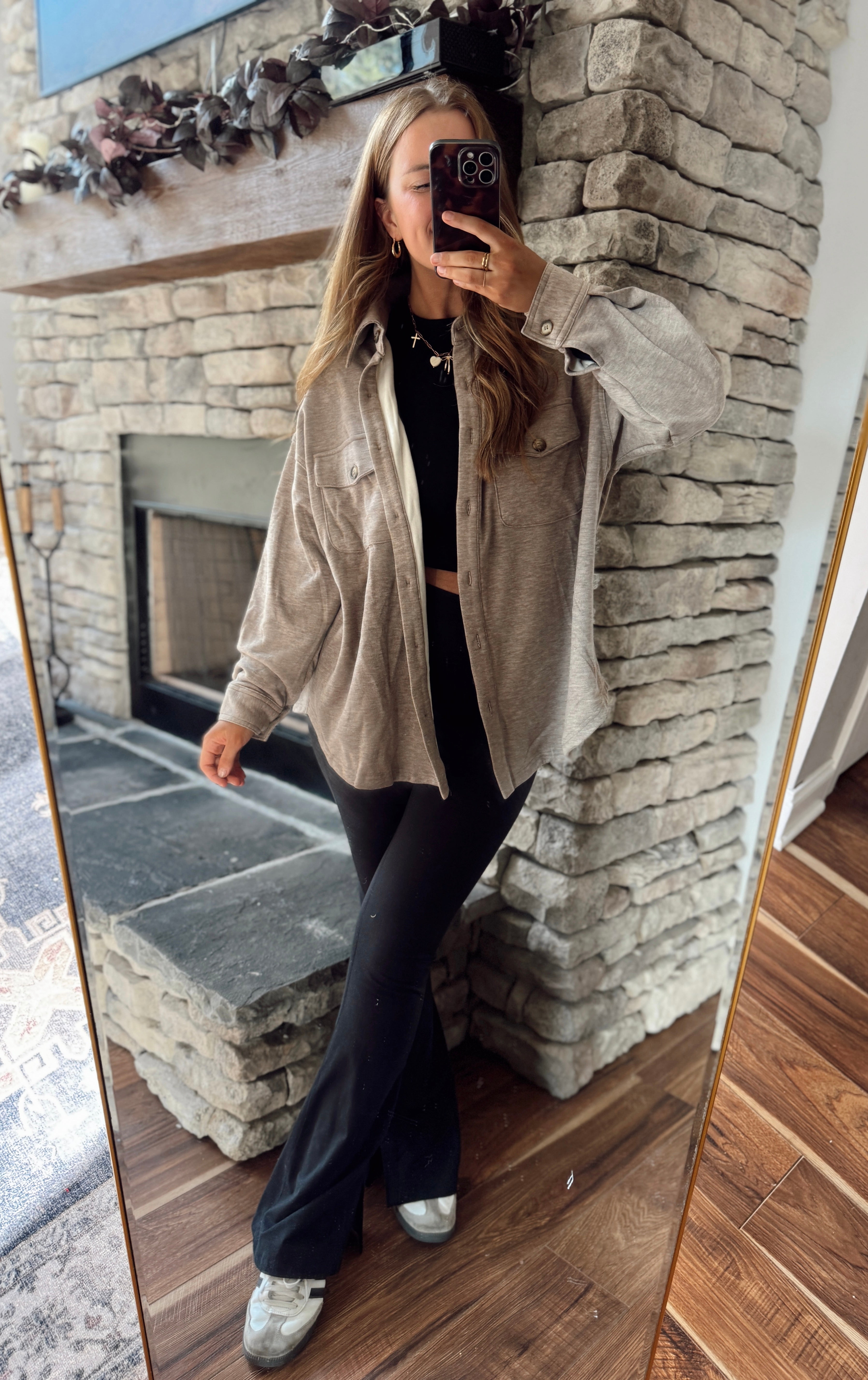 The layering piece dreams are made of ✨ This shacket feels buttery soft to the touch, with that cozy brushed texture you’ll never want to take off. Designed in an easy, oversized fit with button closures and front pockets—perfect for tossing over a tee or lightweight sweater.