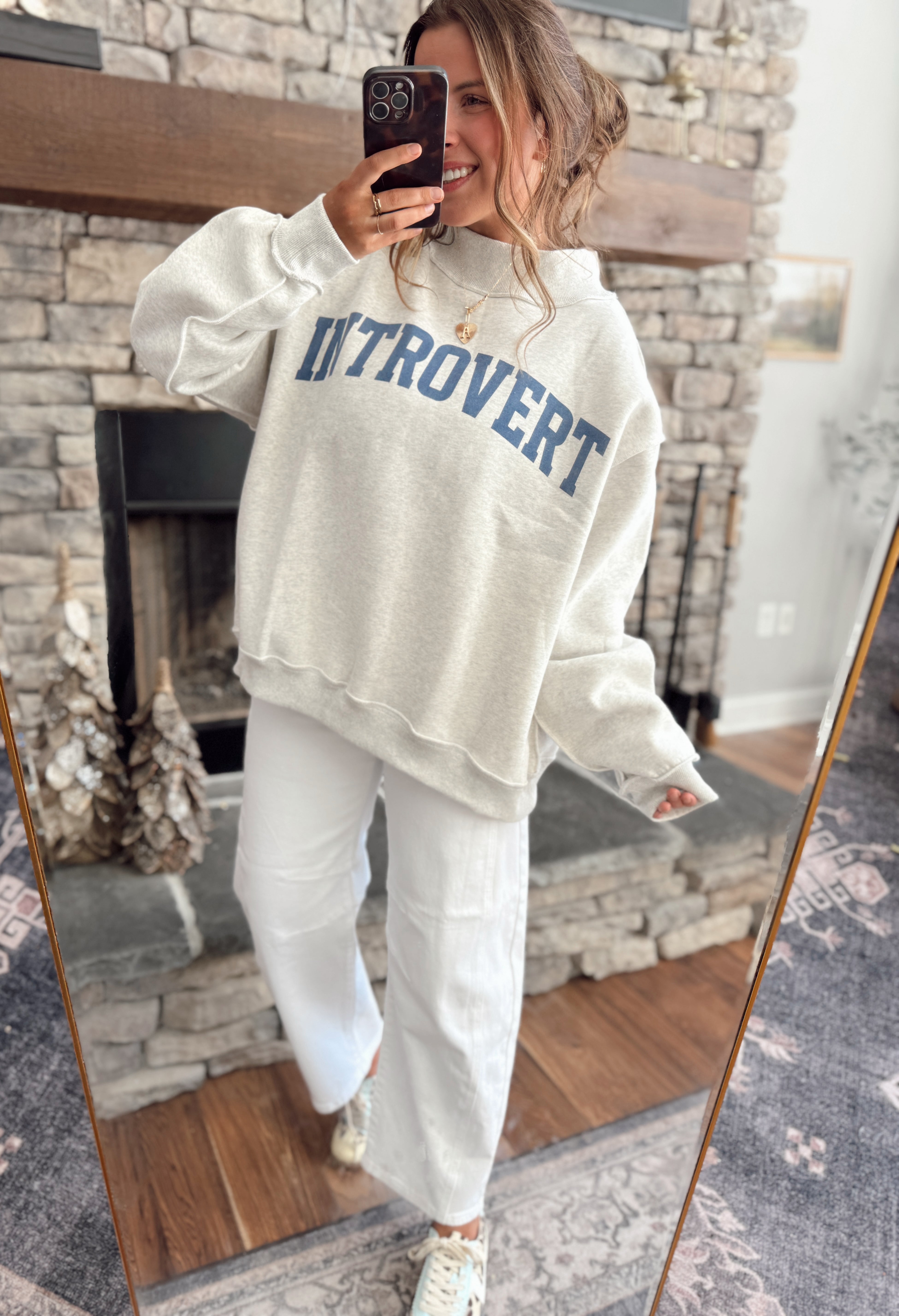 Ash Gray Introvert & Extrovert Mock Neck Sweatshirt