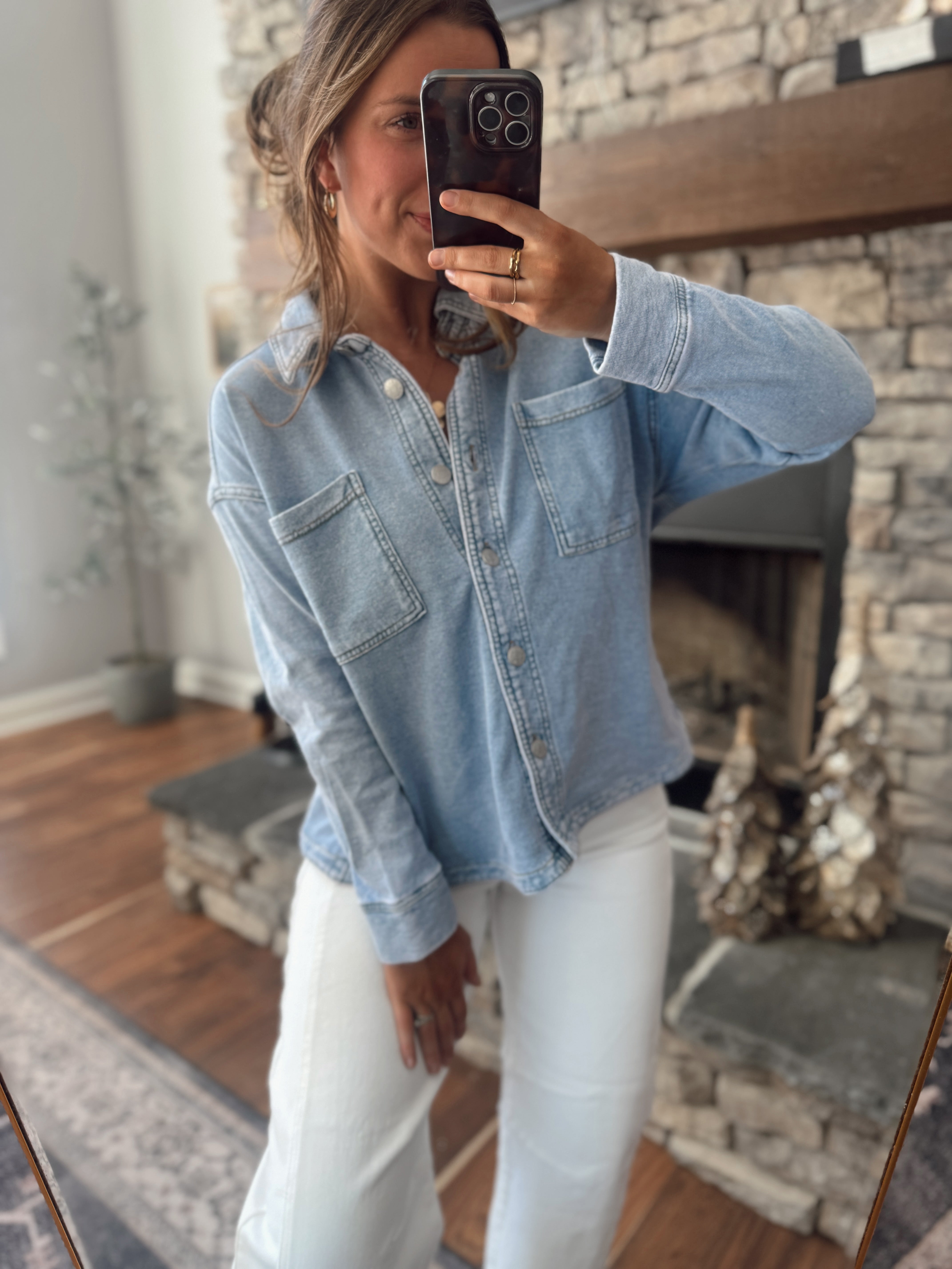 Light Denim Cropped Shacket